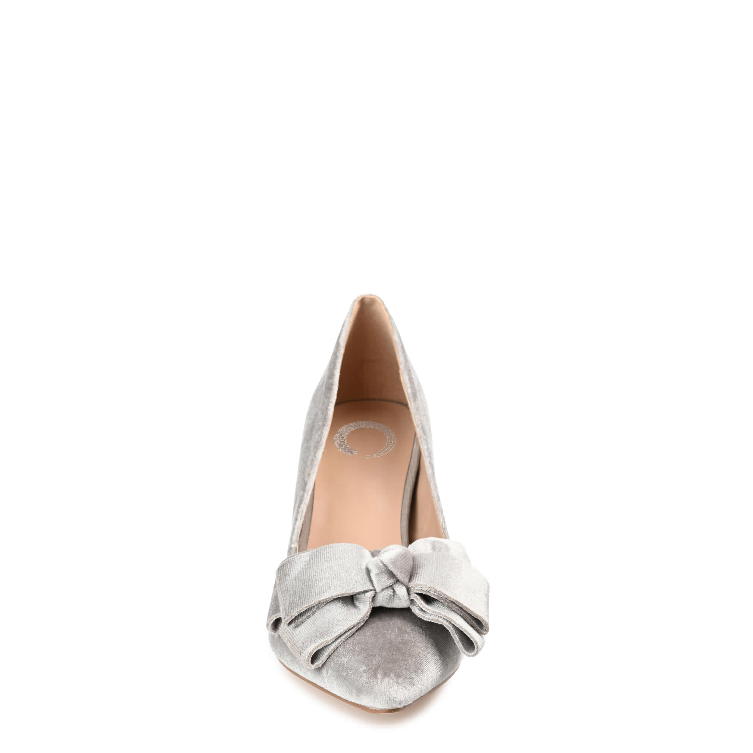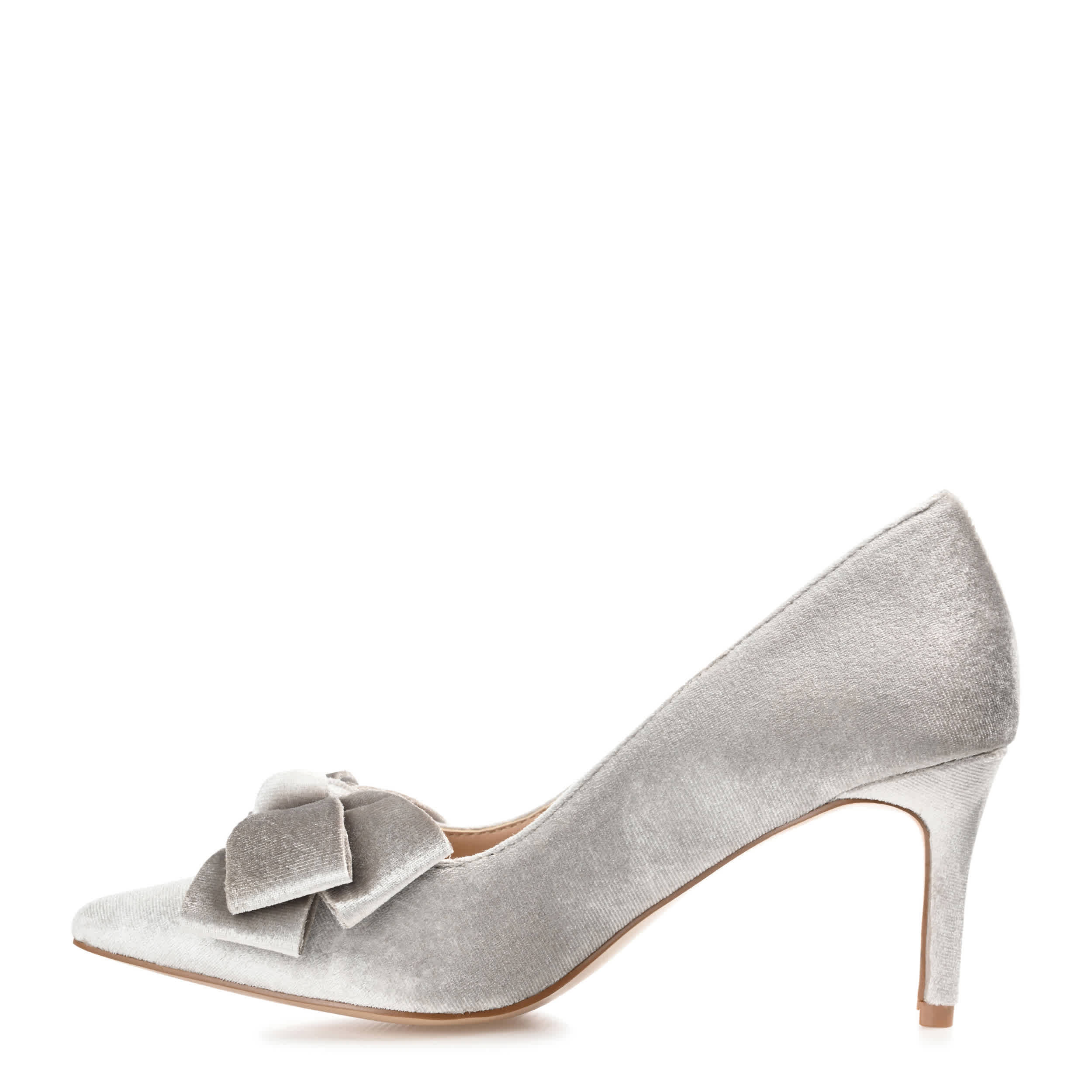 Highlight an elegant look with the Crystol women's pump from the Journee Collection. With a bold velvet fabric upper featuring a decorative bow accent for a touch of feminine flair, this pointy-toe pump is guaranteed to turn heads at holiday parties. A lightly padded footbed soothes your foot, while the 2¾" heel creates a flattering lift.