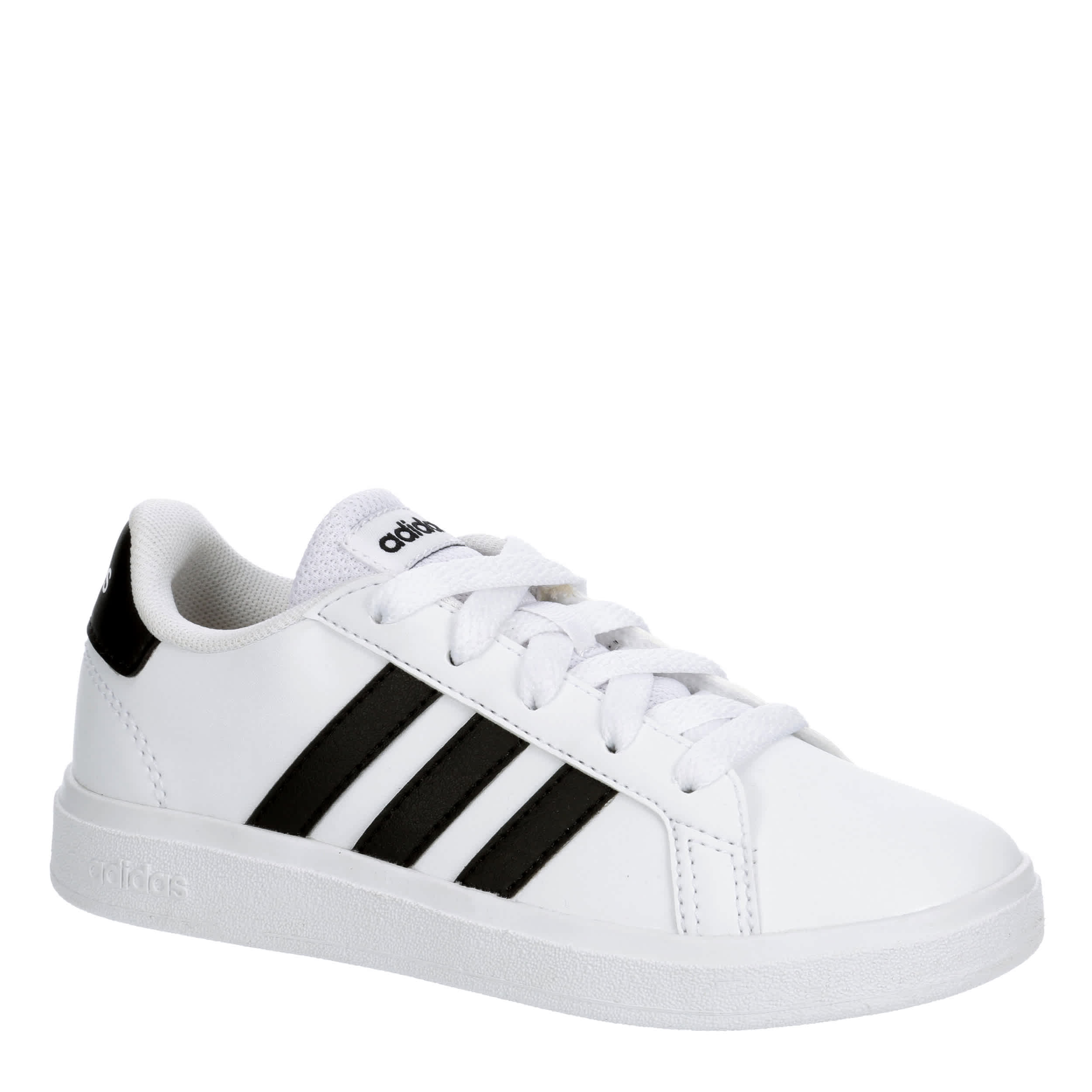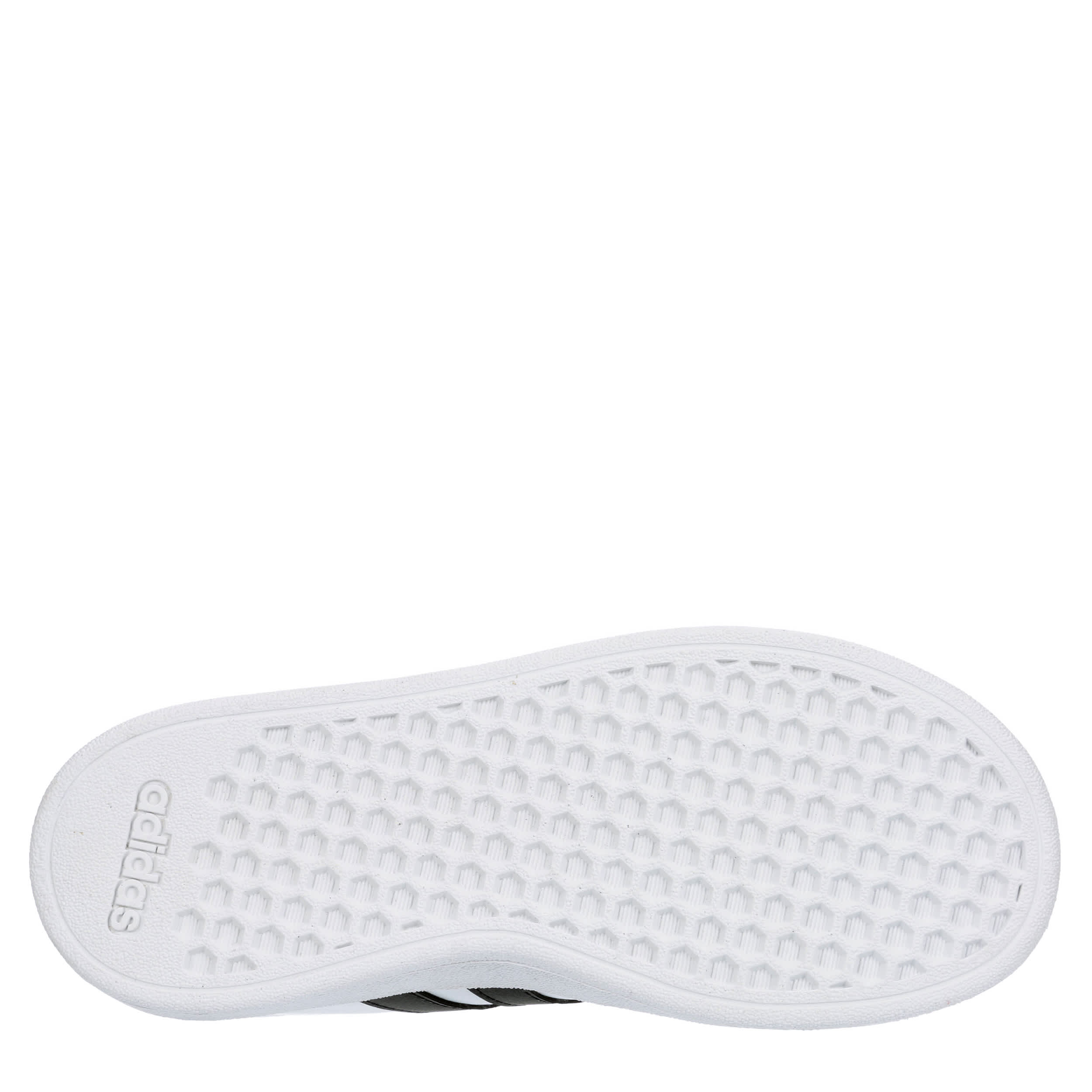Keep his sneaker game sharp and clean with the Grand Court 2.0 K boys' sneaker, inspired by the adidas Superstar. Featuring a recycled upper with bold 3-Stripes logo for extra style, this lace-up shoe is fresh for fall. The Cloudfoam Comfort sockliner cushions every step, while the outsole is durable on the court or the sidewalk.