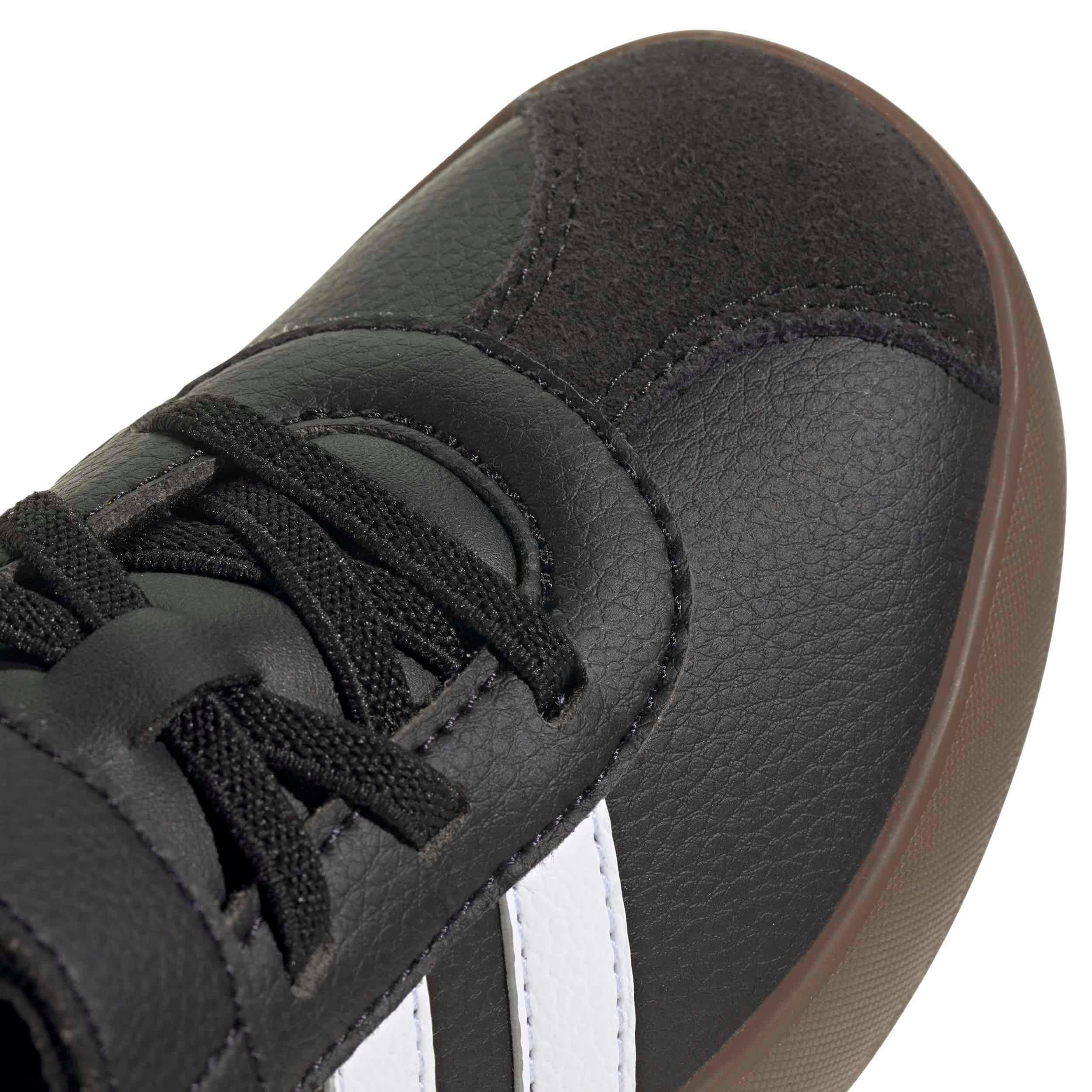 Kick up his style in the VL Court 3.0 boys' sneaker. With a faux leather & suede upper featuring a padded collar & tongue for comfort, this easy-on shoe has contrasting 3-Stripes for that classic adidas look. The OrthoLite® sockliner cushions the bumps while the dark gum cupsole supports every step with bouncy traction.