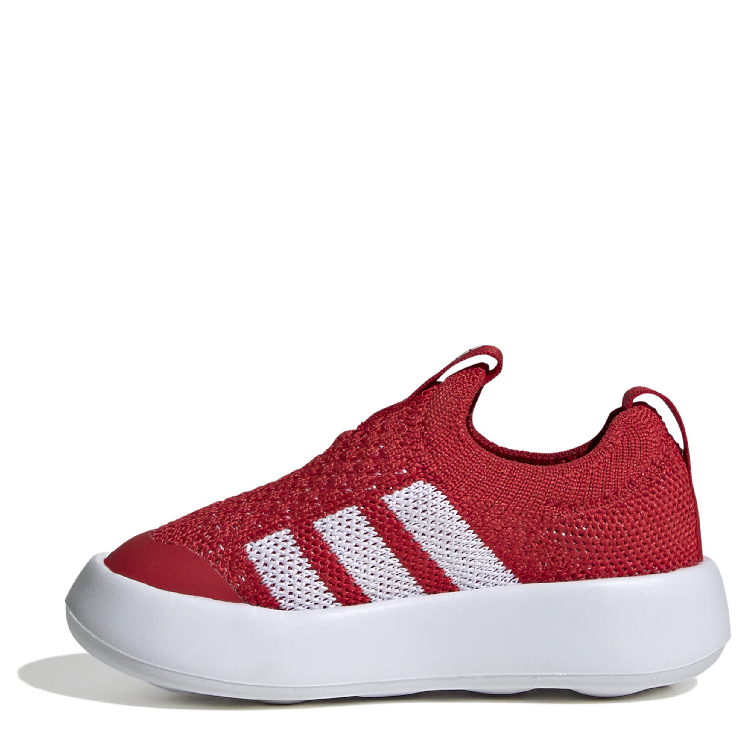 Your little ball of sunshine will love the Bubblecomfy infant boys' sneaker. With a breathable knit upper featuring a dual pull tabs and classic 3-Stripes logo, this flexible, ultralight sneaker has a wide fit for comfort. The sock-like construction cradles his little foot, while the one-piece outsole provides extra cushioning and grip.