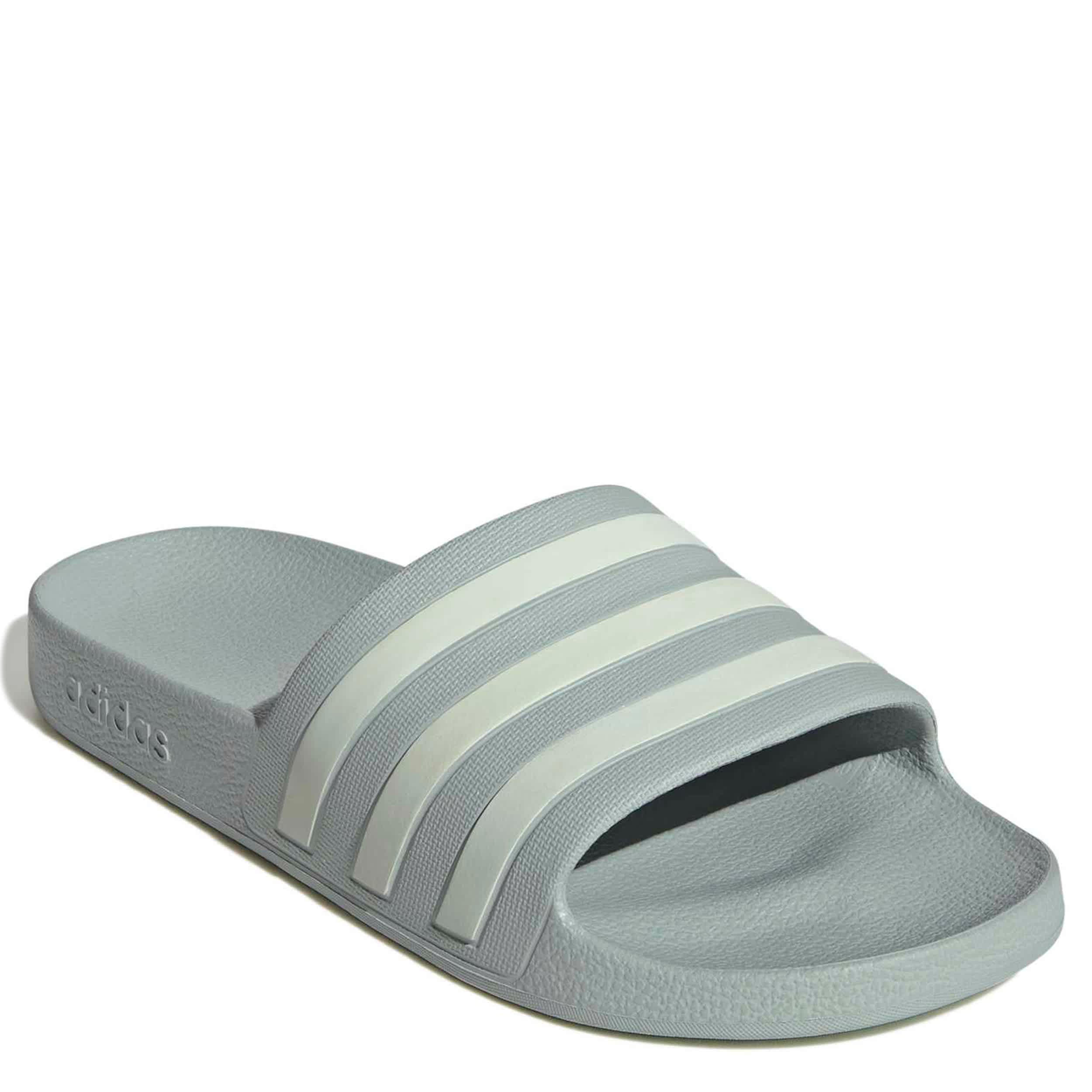Slip into comfort with the adidas Adilette Aqua infant boys' sandal. With a quick-drying synthetic upper featuring the iconic adidas 3-Stripes for extra style, this slide works for the bath or pool. A Cloudfoam footbed contours to his little foot, offering comfort with each step he takes.
