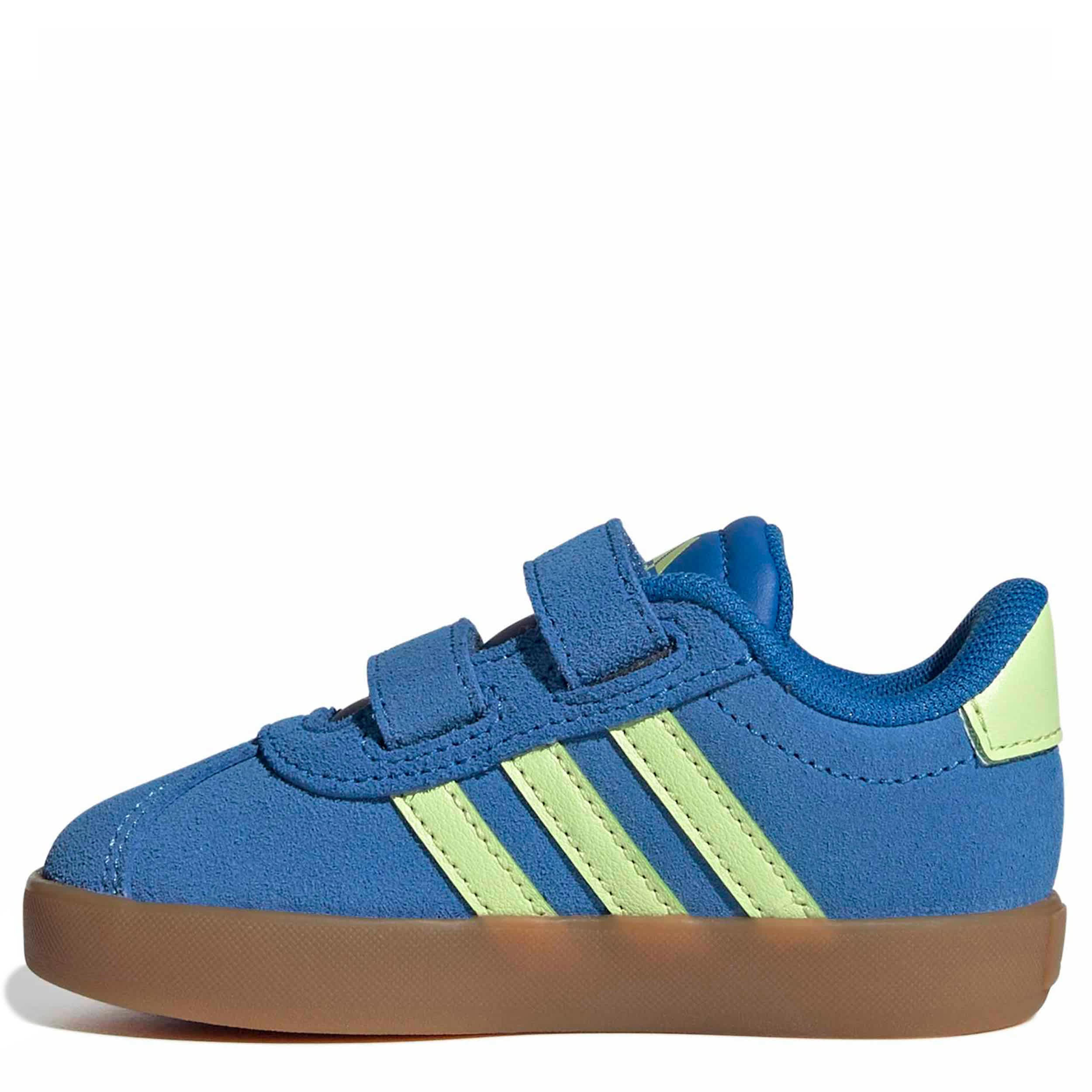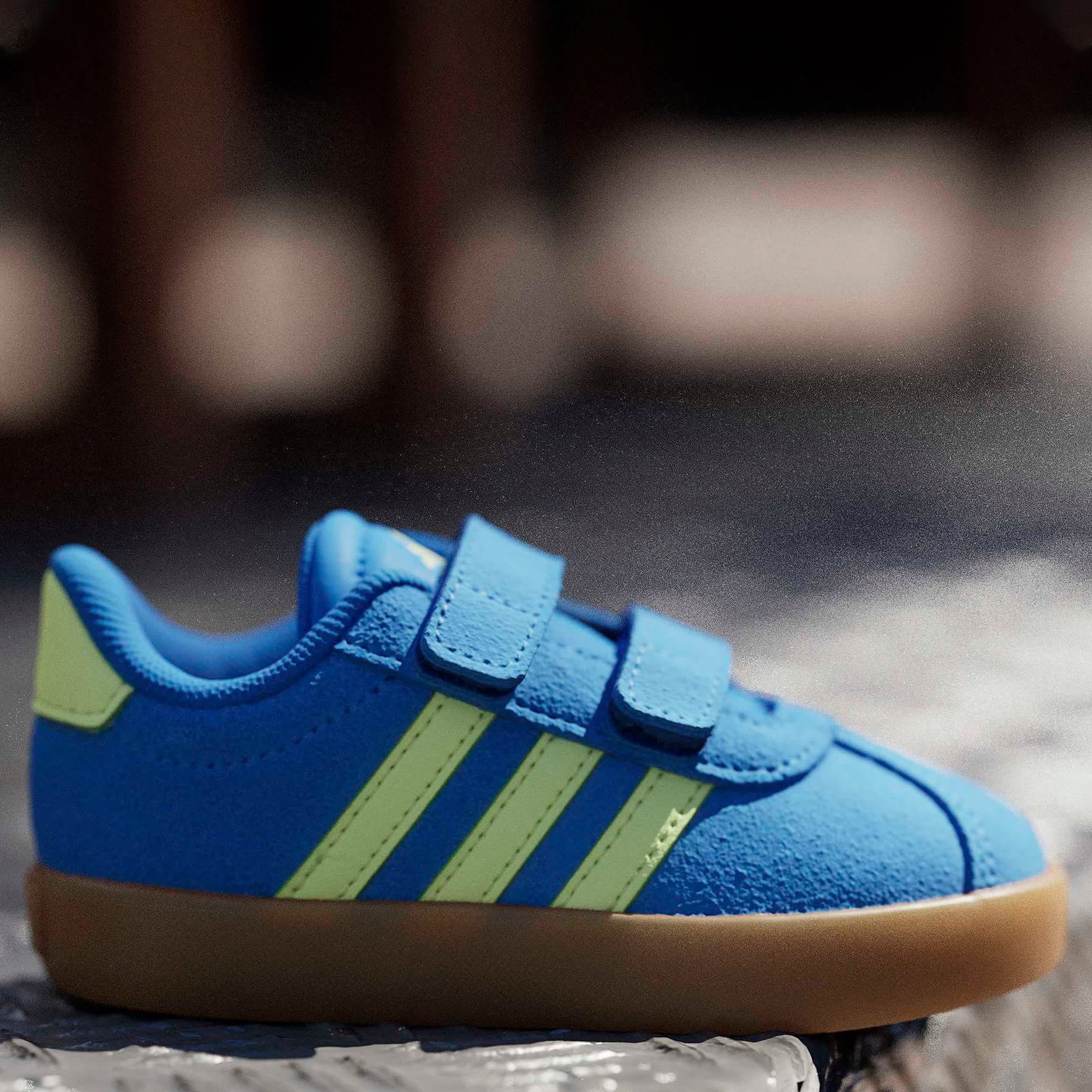 Kick up his style in the VL Court 3.0 infant boys' sneaker. With a suede & faux leather upper featuring a padded collar & tongue for comfort, this hook & loop shoe has contrasting 3-Stripes for that classic adidas look. The OrthoLite® sockliner cushions the bumps while the cupsole supports every step with bouncy traction.