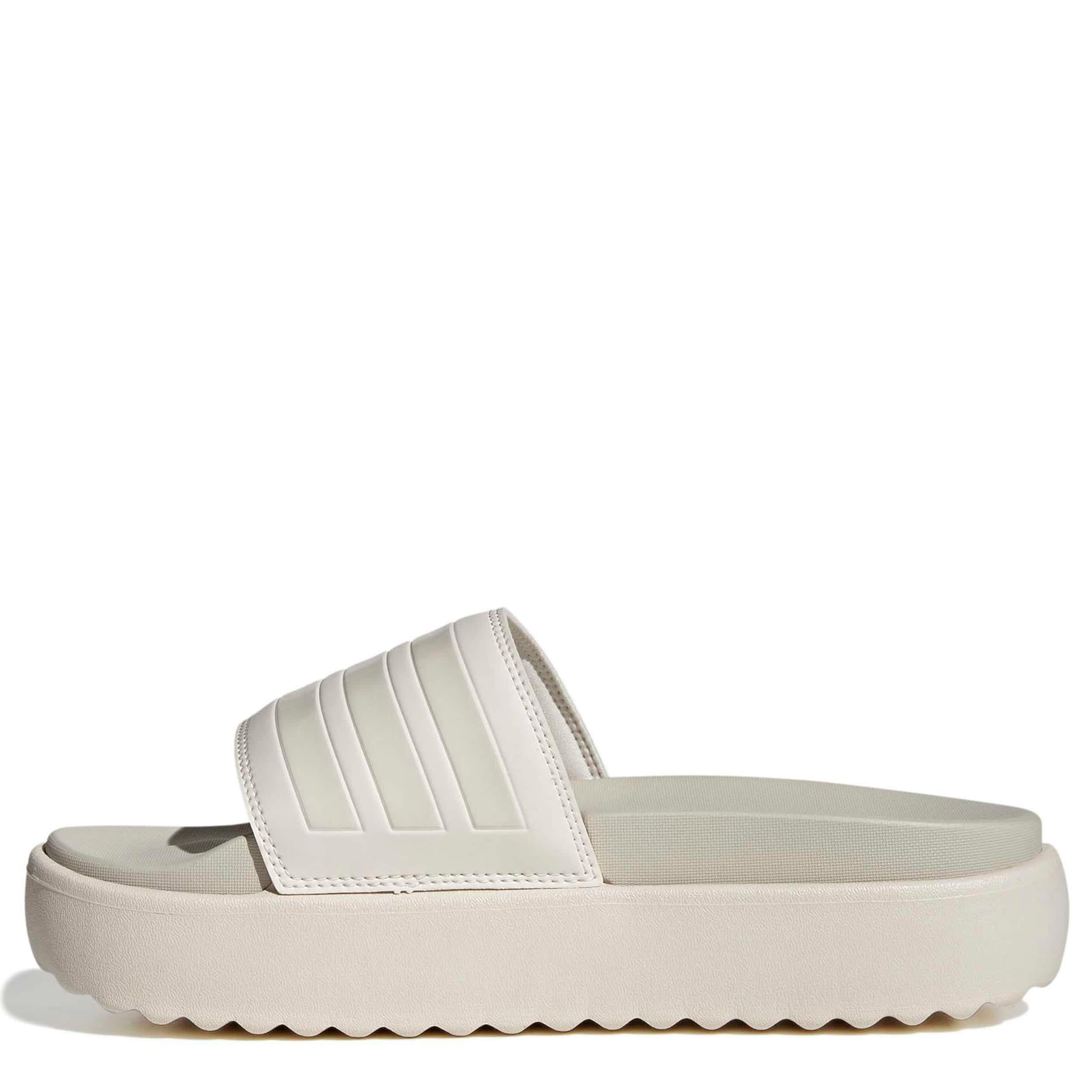 <p>Step up her slide look in the adidas Adilette Platform girls' slide. With a faux leather upper featuring the 3-Stripes for extra style, these all white slides are cool and comfy. The contoured footbed cradles and cushions her foot, while the platform keeps her lifted.</p>