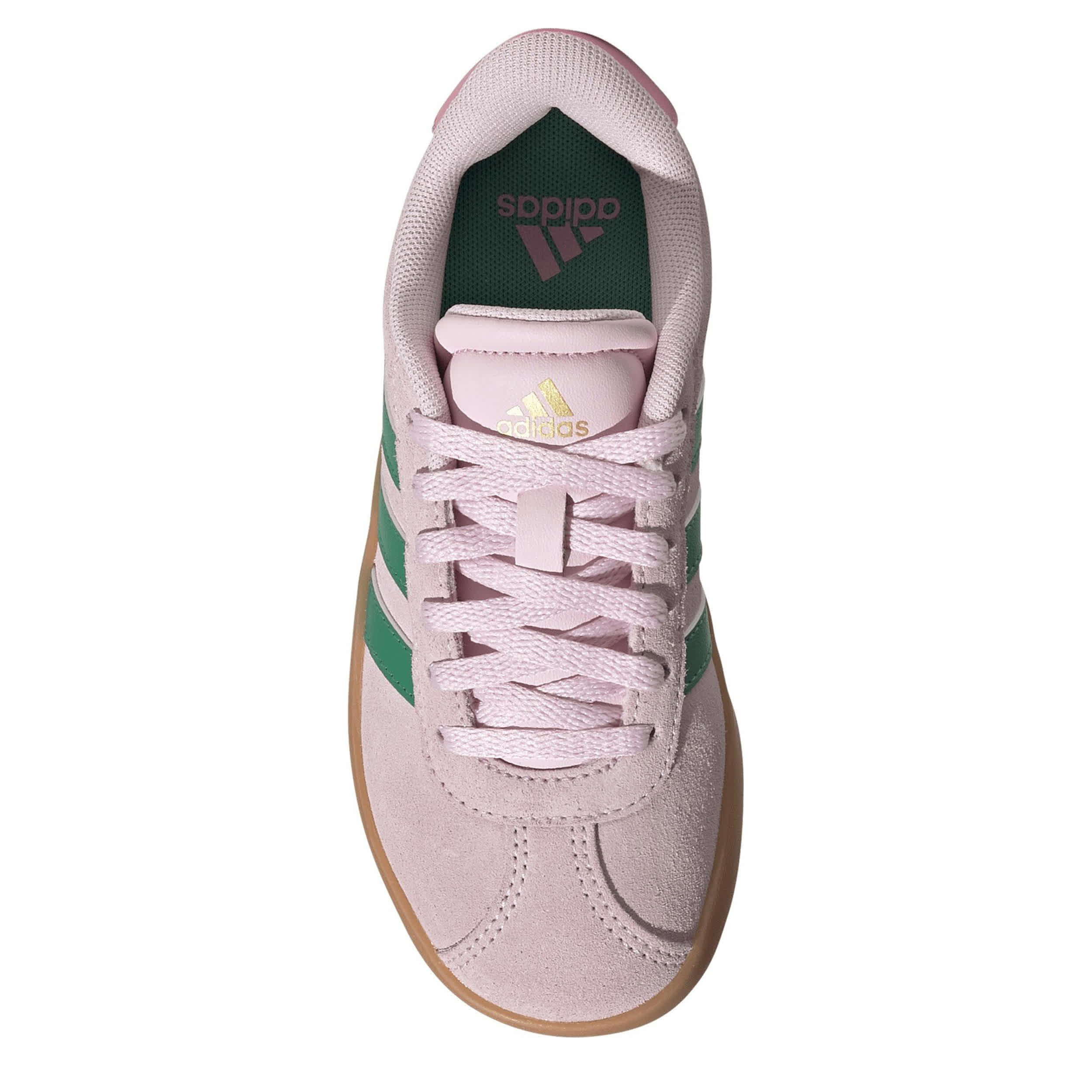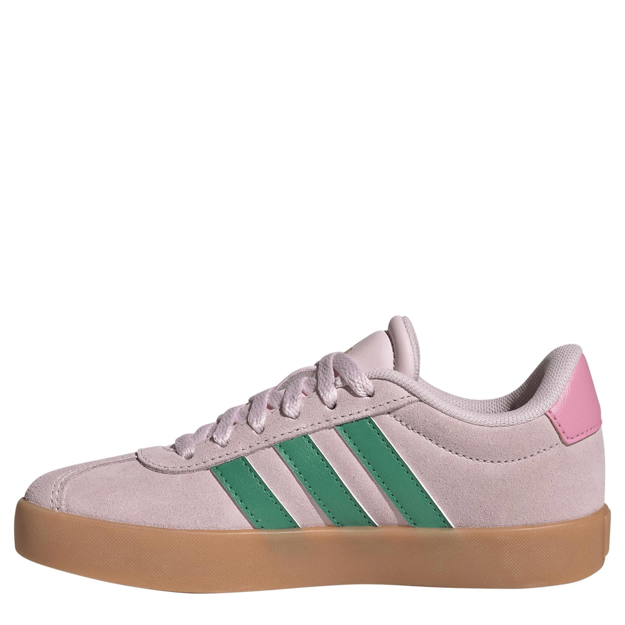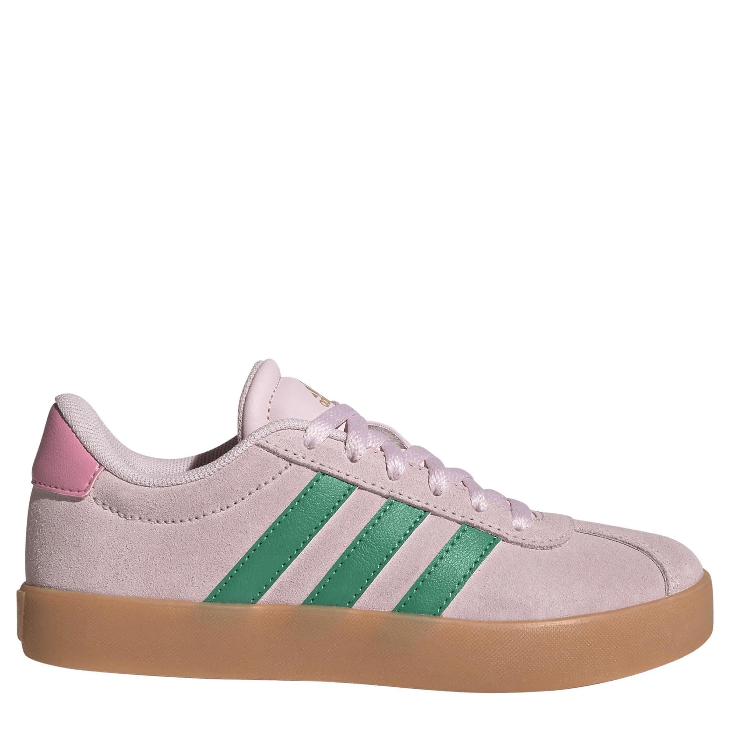 Kick up her style in the VL Court 3.0 boys' sneaker. With a suede & faux leather upper featuring a padded collar & tongue for comfort, this lace-up shoe has contrasting 3-Stripes for that classic adidas look. The OrthoLite® sockliner cushions the bumps while the cupsole supports every step with bouncy traction.