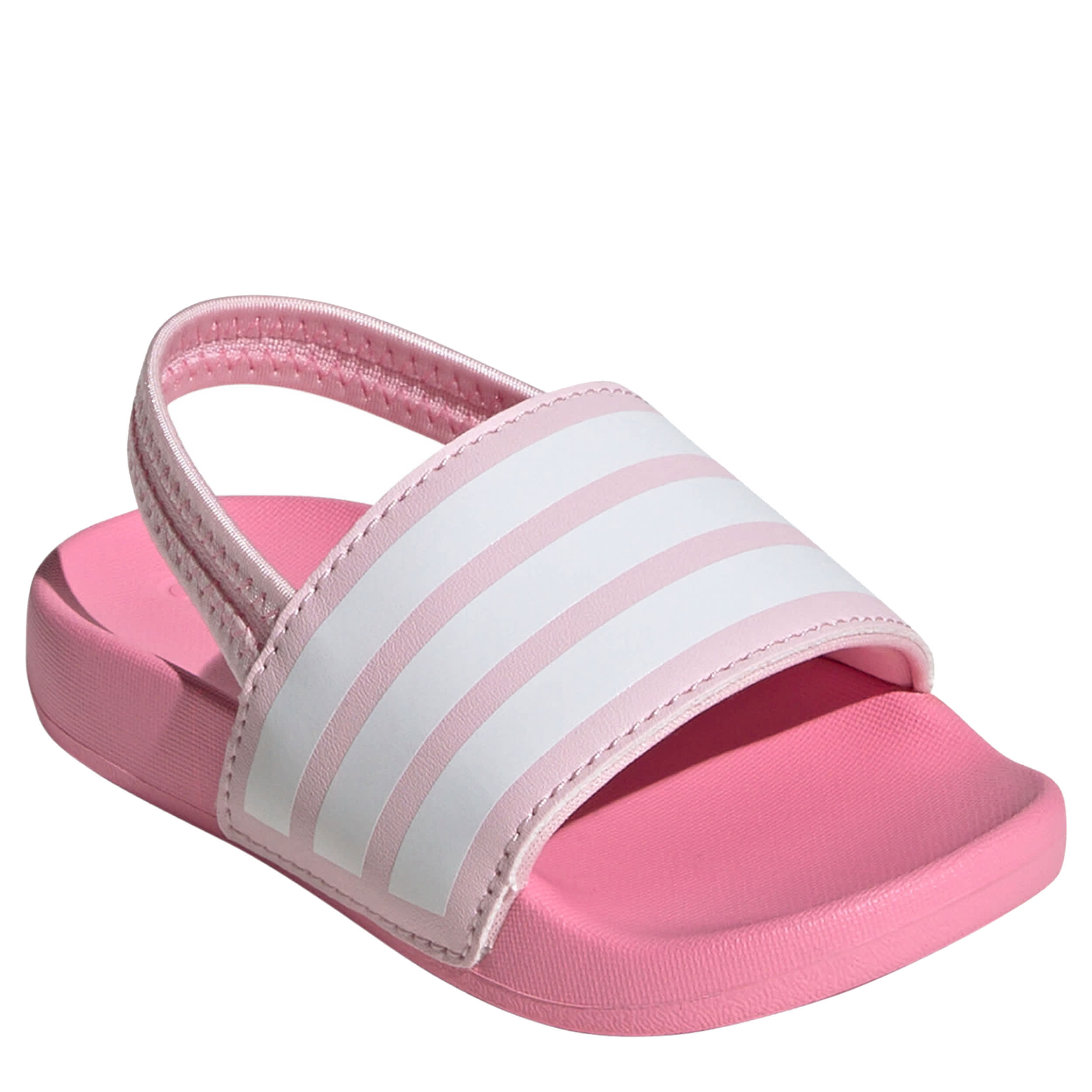When it's time for vacation, make sure the baby's covered with the Adilette Estrap infant girls' sandal by adidas. Featuring an easy-on slingback strap and a smooth bandage design, this quick-drying sandal is great for the hotel pool or the beach. The cushy footbed cradles her little foot while providing some traction.