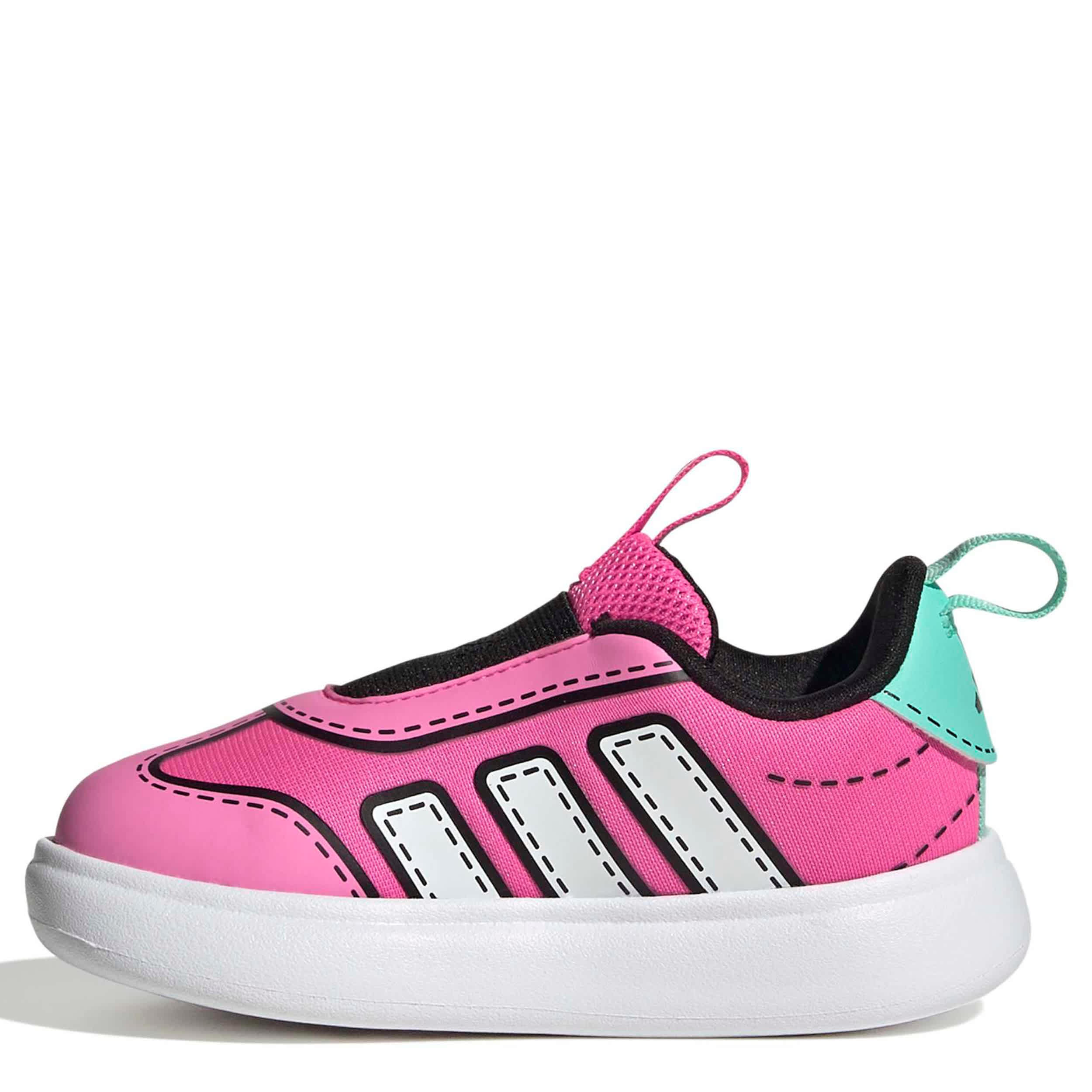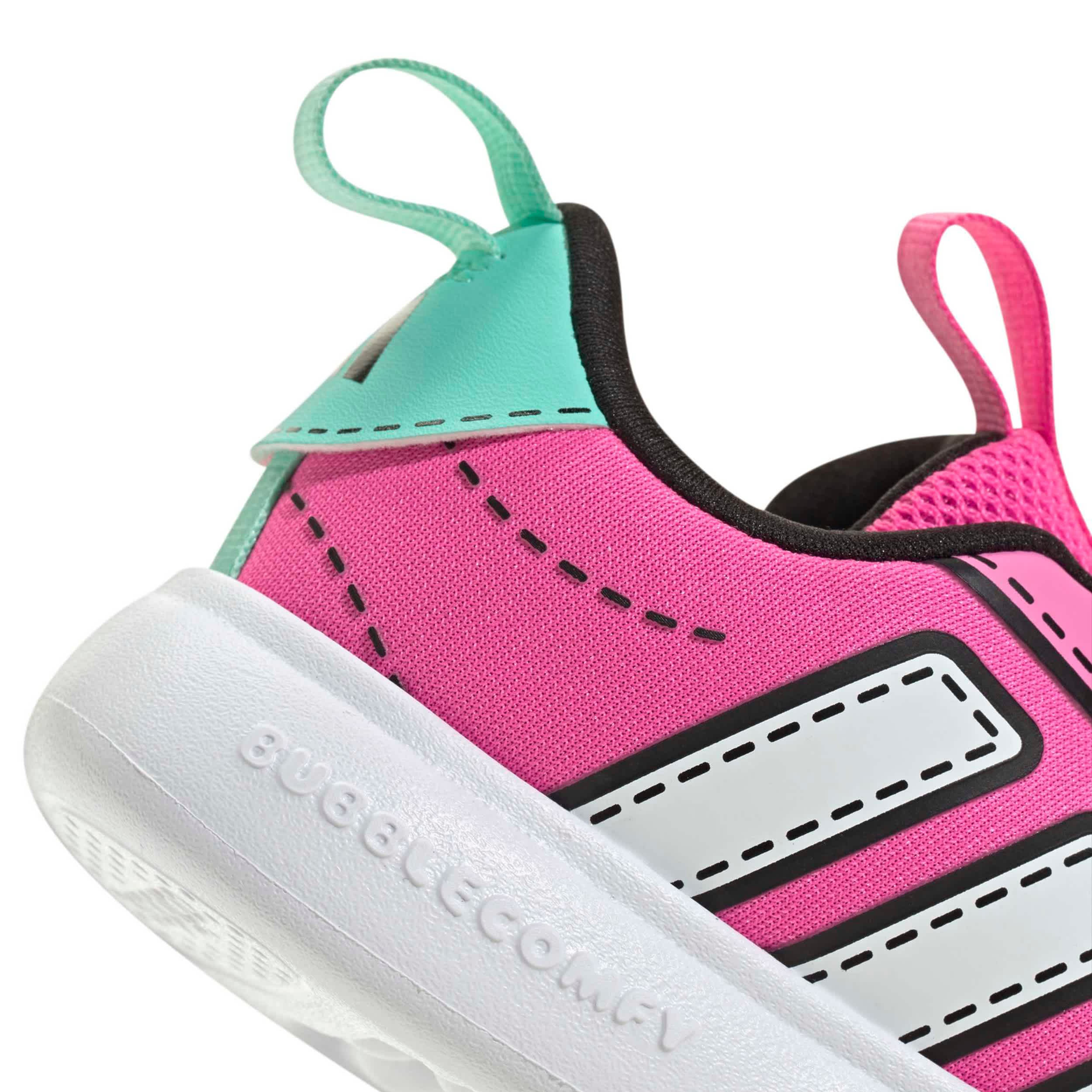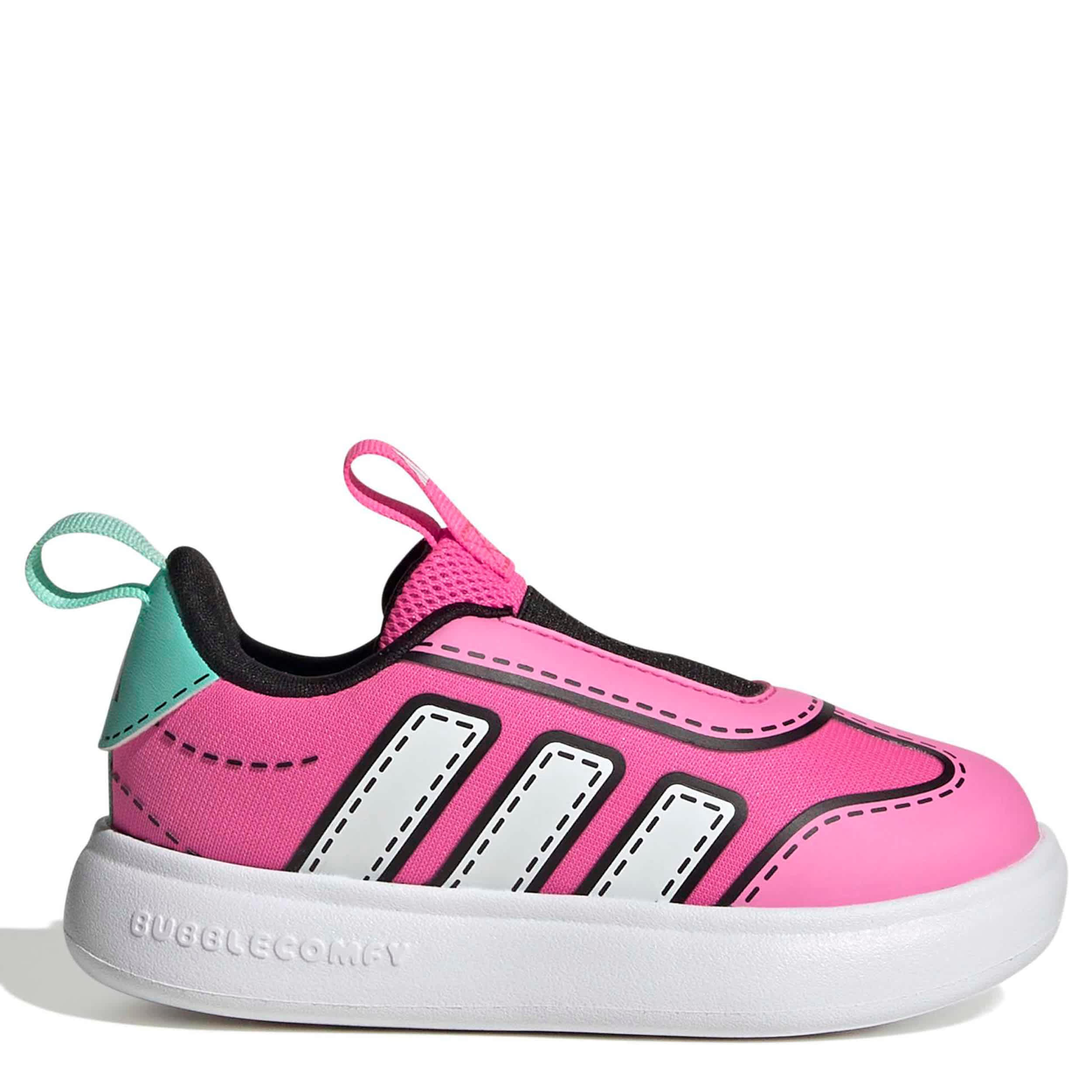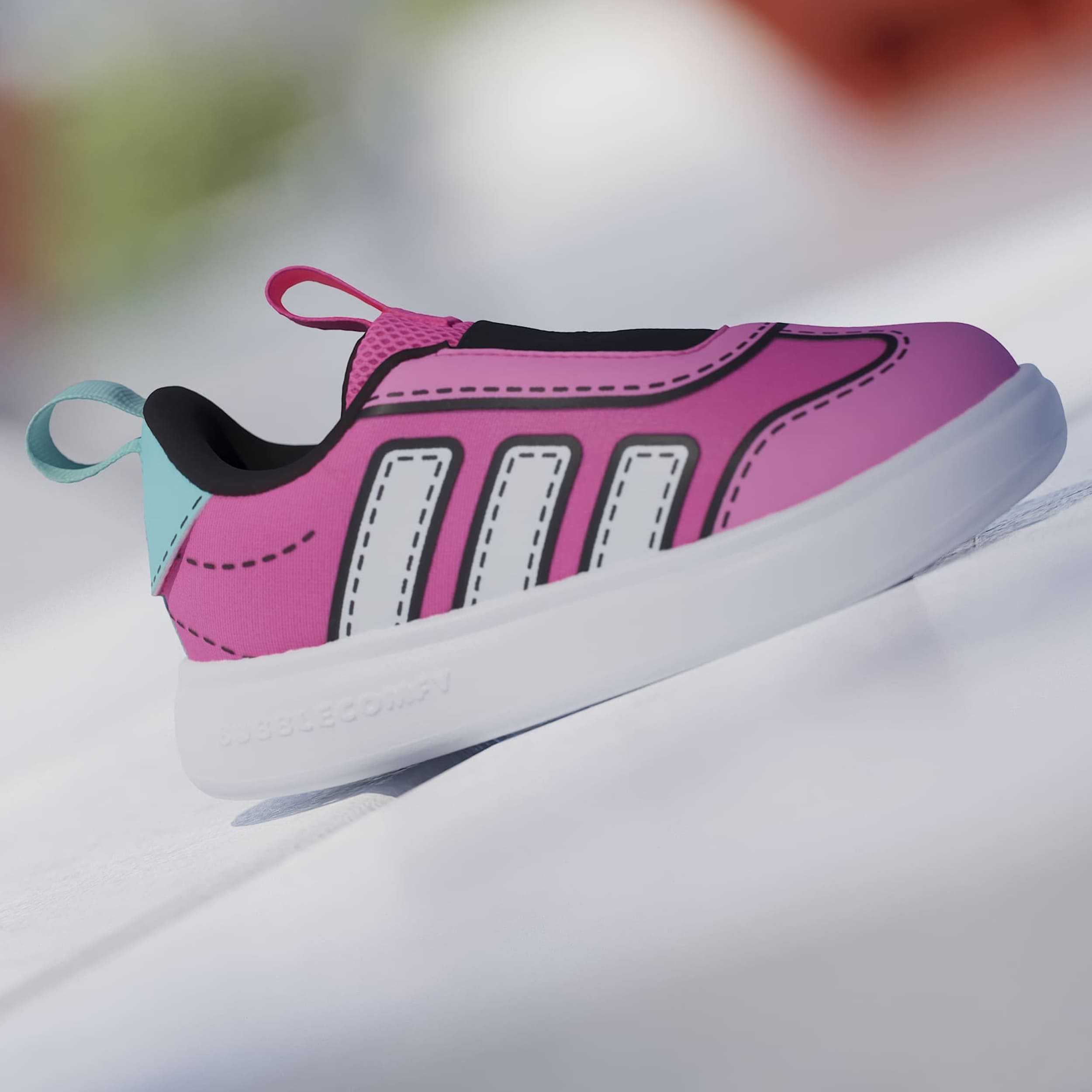 Color her little world with the Bubblecomfy infant girls' sneaker. With a printed textile & syntheic upper featuring dual pull tabs and graphic 3-Stripes logo, this comic-styled sneaker are fun. Padding around the ankle cradles her little foot, while the one-piece outsole provides extra cushioning and grip.