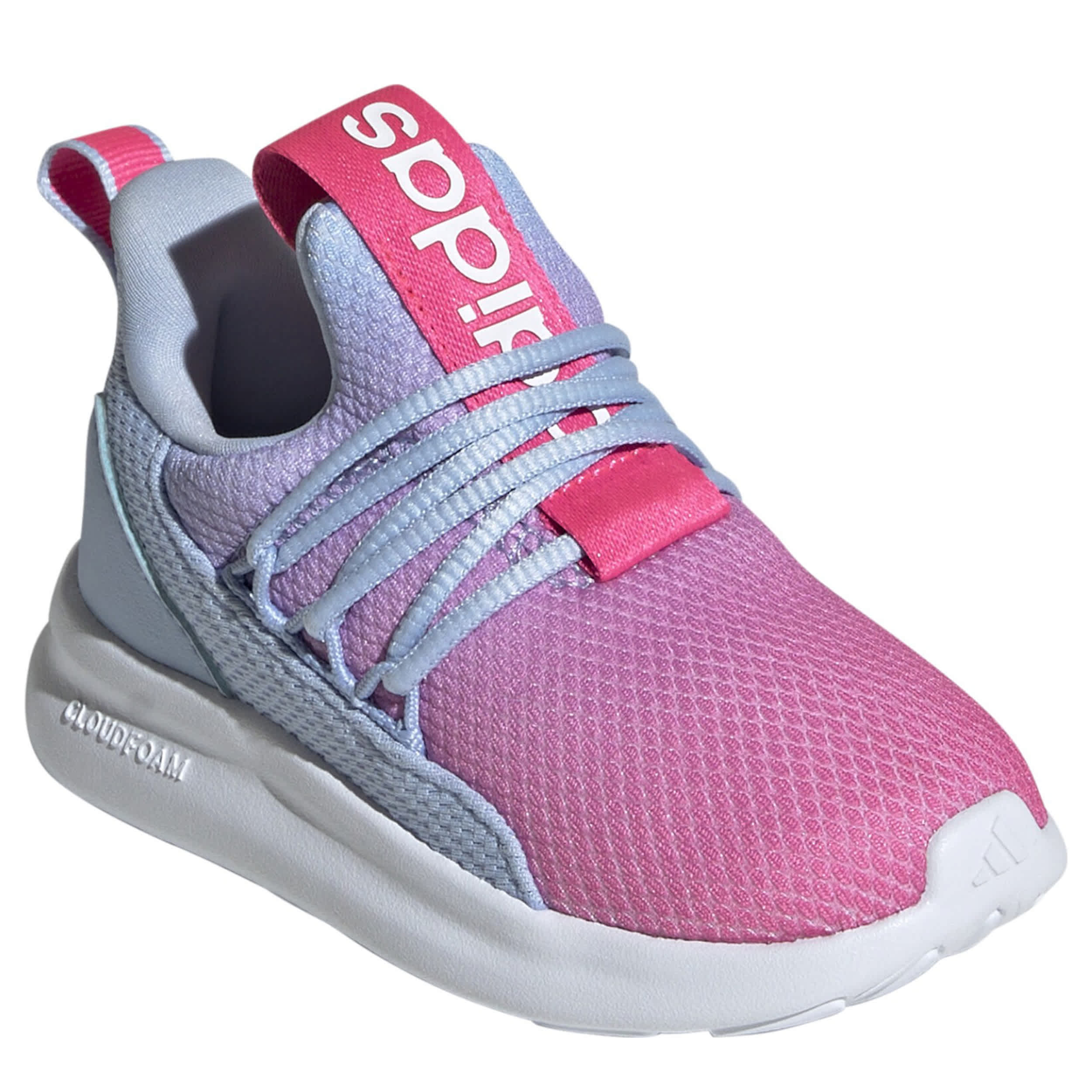 Let her move freely in the Lite Racer Adapt 7 infant girls' slip-on sneaker from adidas. With a sustainable textile upper made from recycled content, this slip-on sneaker has dual pull tabs and stretch laces for an easy fit. The Cloudfoam easily cushions her foot, while the contrasting sole provides flexible traction.