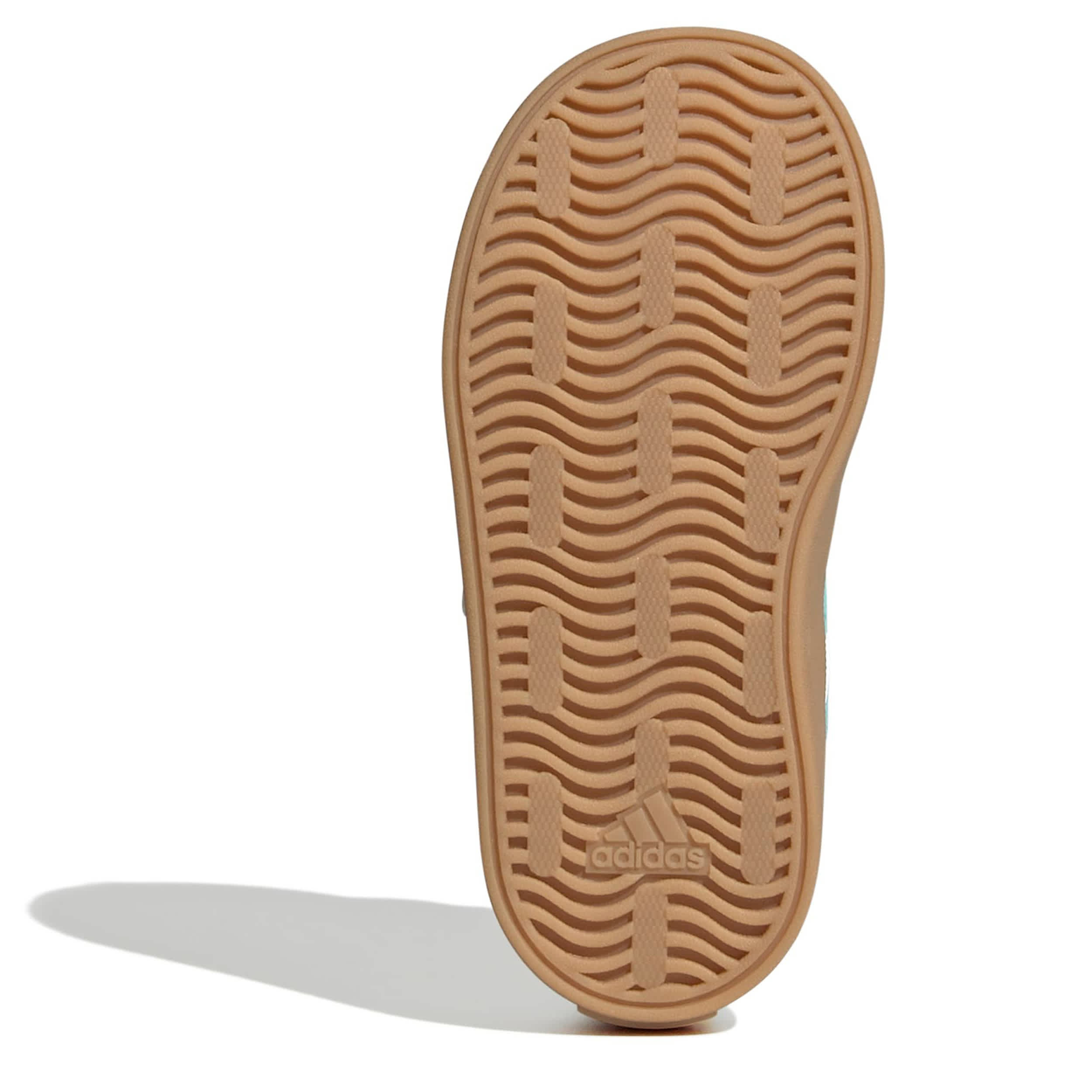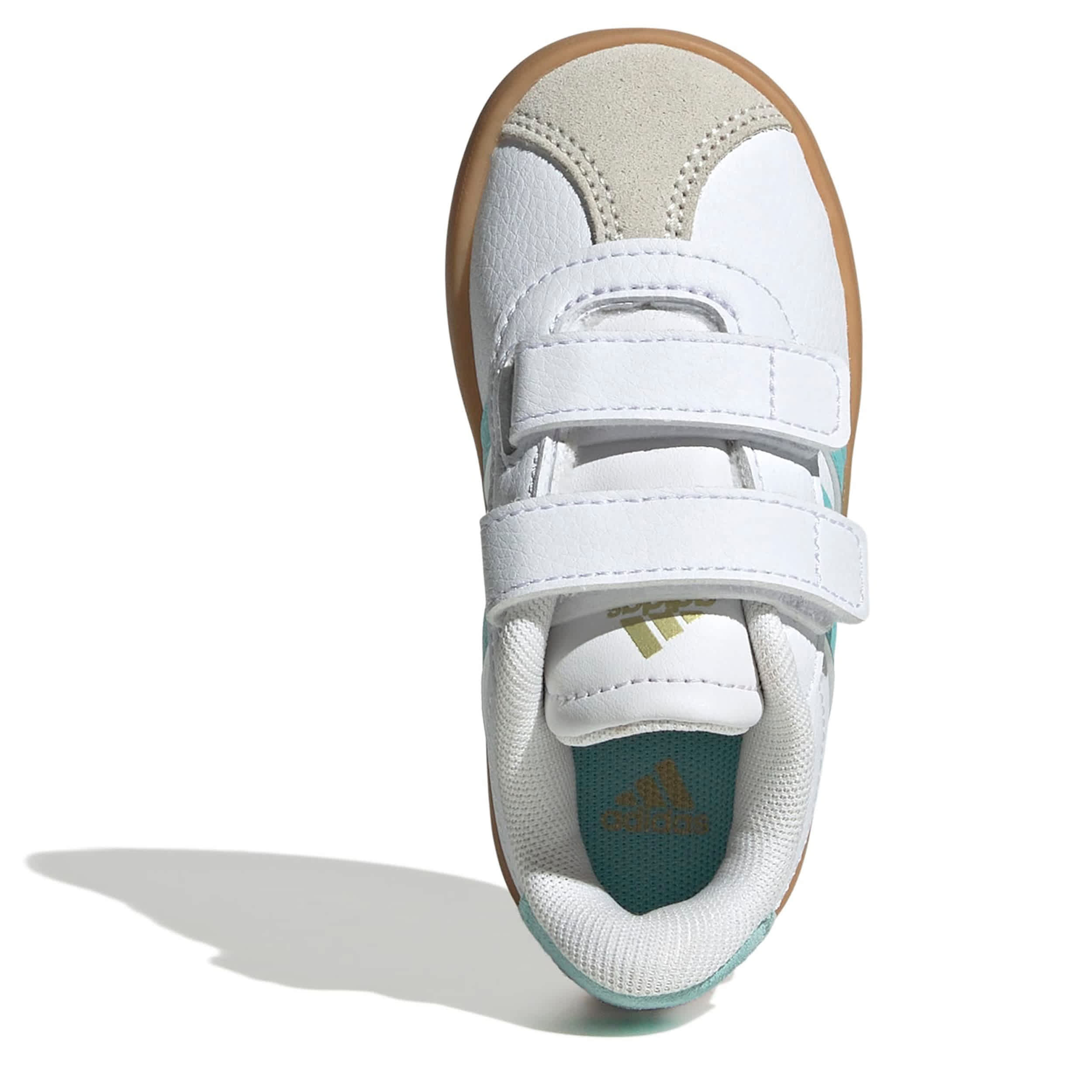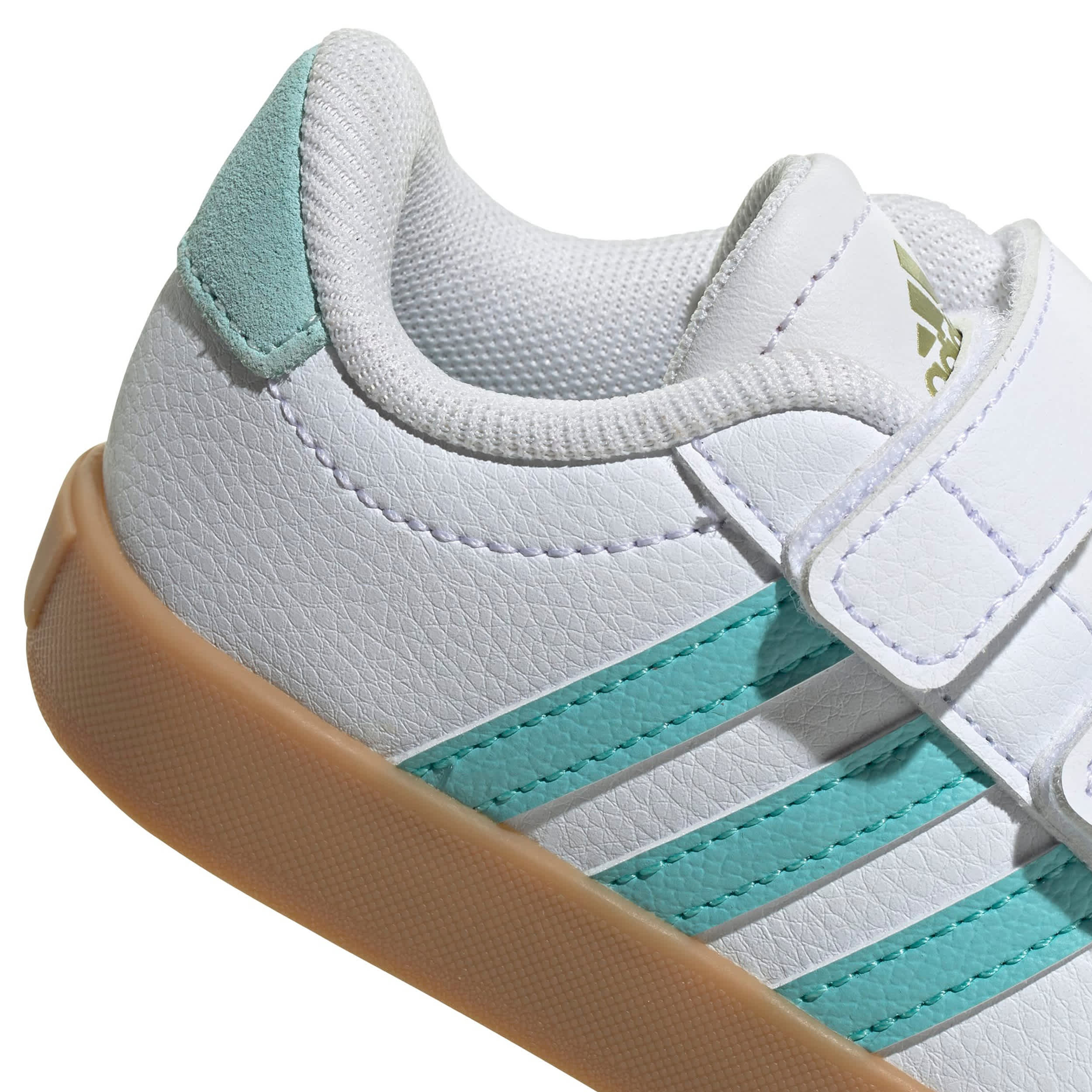 Kick up her style in the VL Court 3.0 infant girls' sneaker. With a faux leather & suede upper featuring a padded collar & tongue for extra comfort, this hook & loop shoe has contrasting 3-Stripes for that classic adidas look. The OrthoLite® sockliner cushions the bumps while the gum cupsole supports every step with bouncy traction.