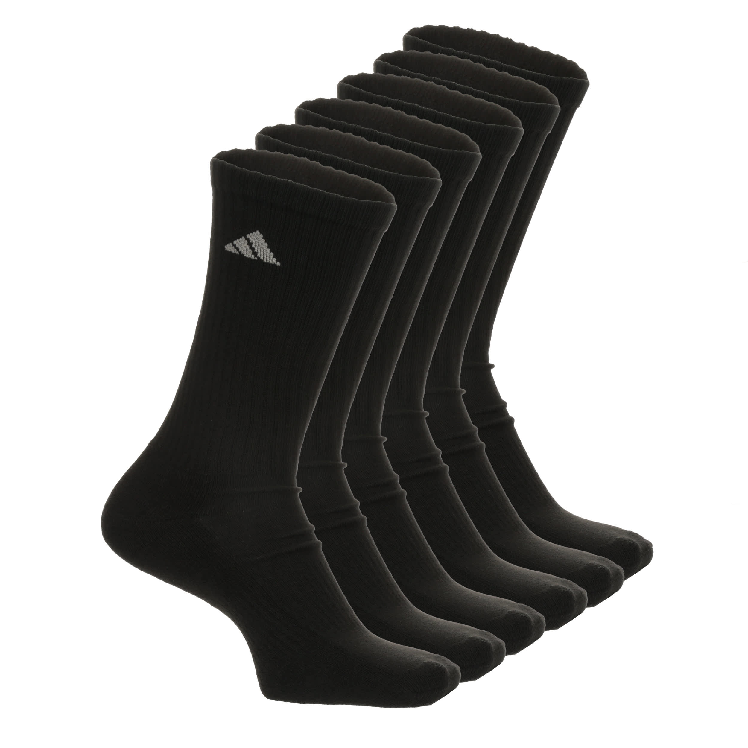 Get in the game with the adidas Cushioned Crew mens's socks 6 Pack. Created with moisture-wicking fiber to keep feet dry, this sock is cushioned to handle the gym, work or your favorite pick-up sport. And the ribbed cuff helps them stay put while you're moving.