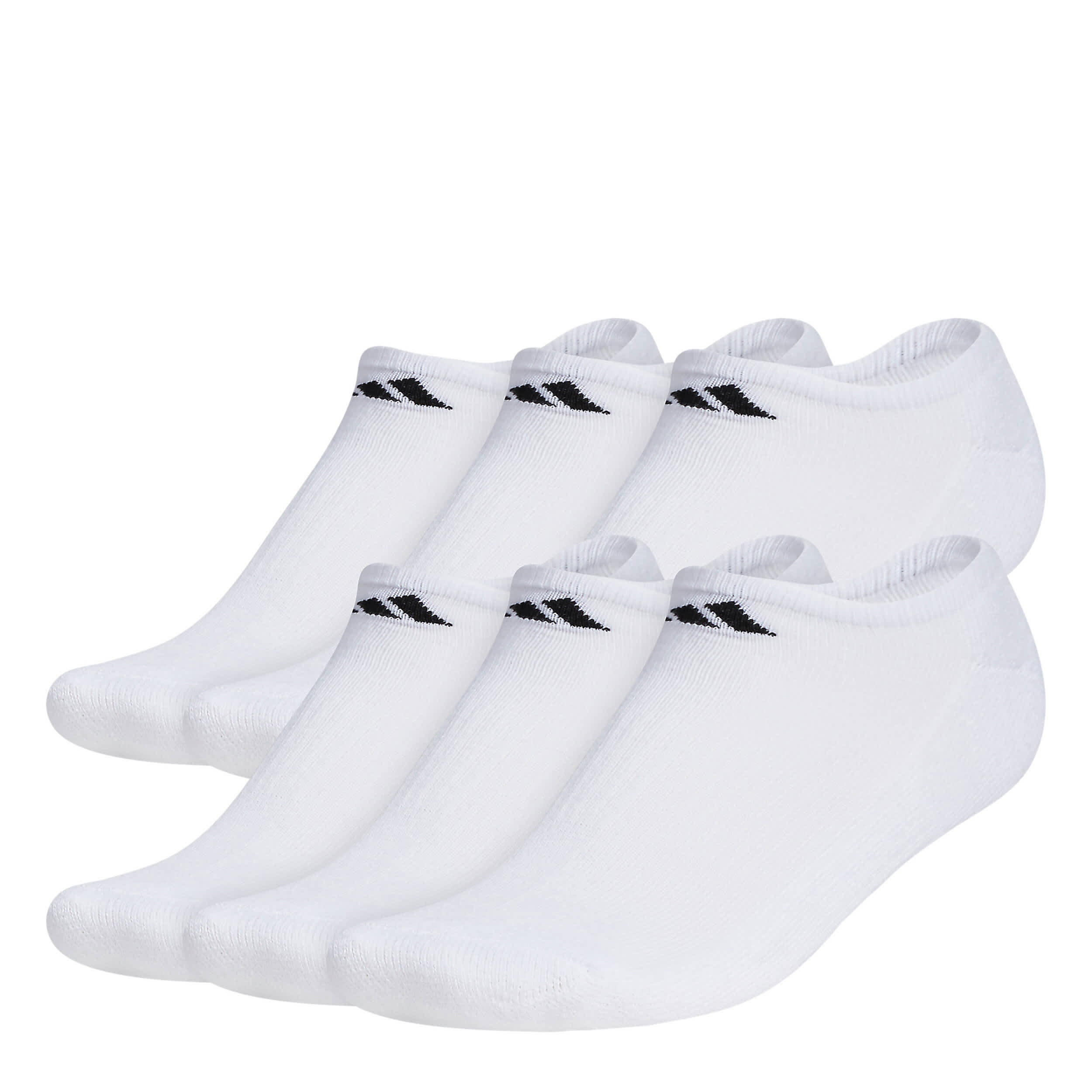 Get in the game with the adidas Athletic Cushioned No Show mens's socks 6 Pack. Created with moisture-wicking fiber to keep feet dry, this sock is cushioned to handle the gym, work or your favorite pick-up sport. And since the no-show design keeps a low-profile, you only have to worry about keeping score.