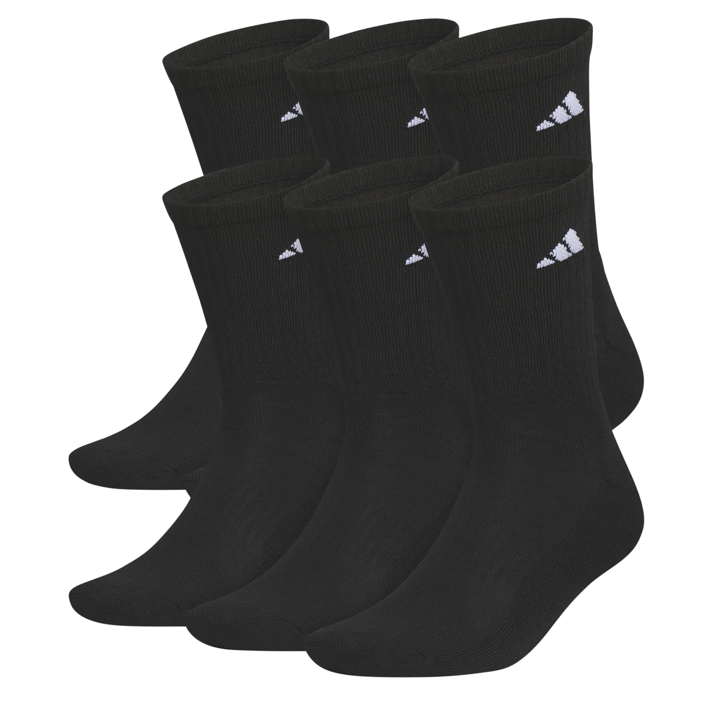 Get in the game with the adidas Medium Classic Cushioned Crew mens's socks 6 Pack. Created with moisture-wicking fiber to keep feet dry, this sock is cushioned to handle the gym, work or your favorite pick-up sport. And the ribbed cuff helps them stay put while you're moving.