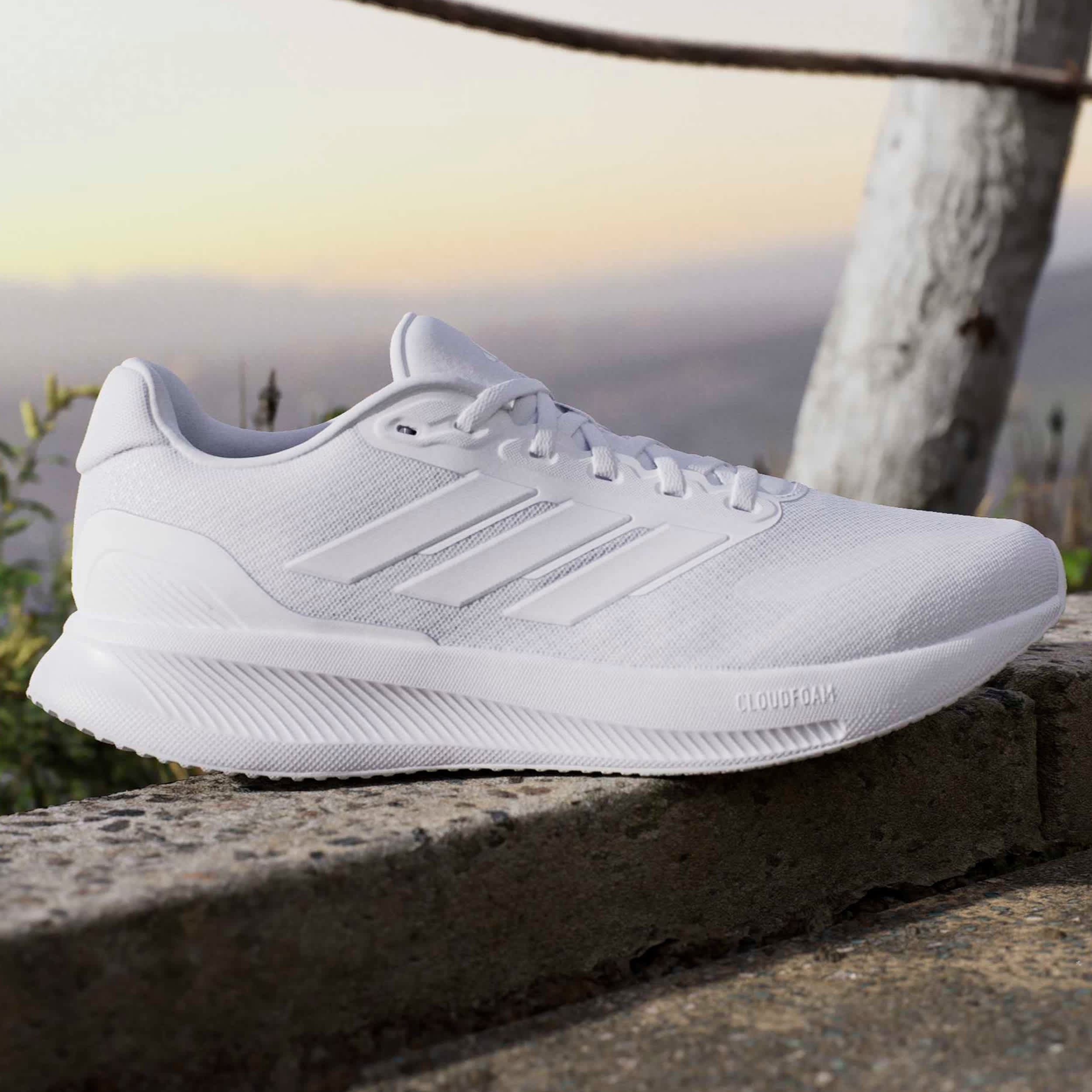 Run free in these adidas Runfalcon 5 men's sneakers. With a breathable mesh & synthetic upper and cushy OrthoLite® sockliner, these running shoes are great for athletic endeavors, or just chilling over the weekend. The Cloudfoam midsole and durable outsole provide plenty of support while comforting every move.