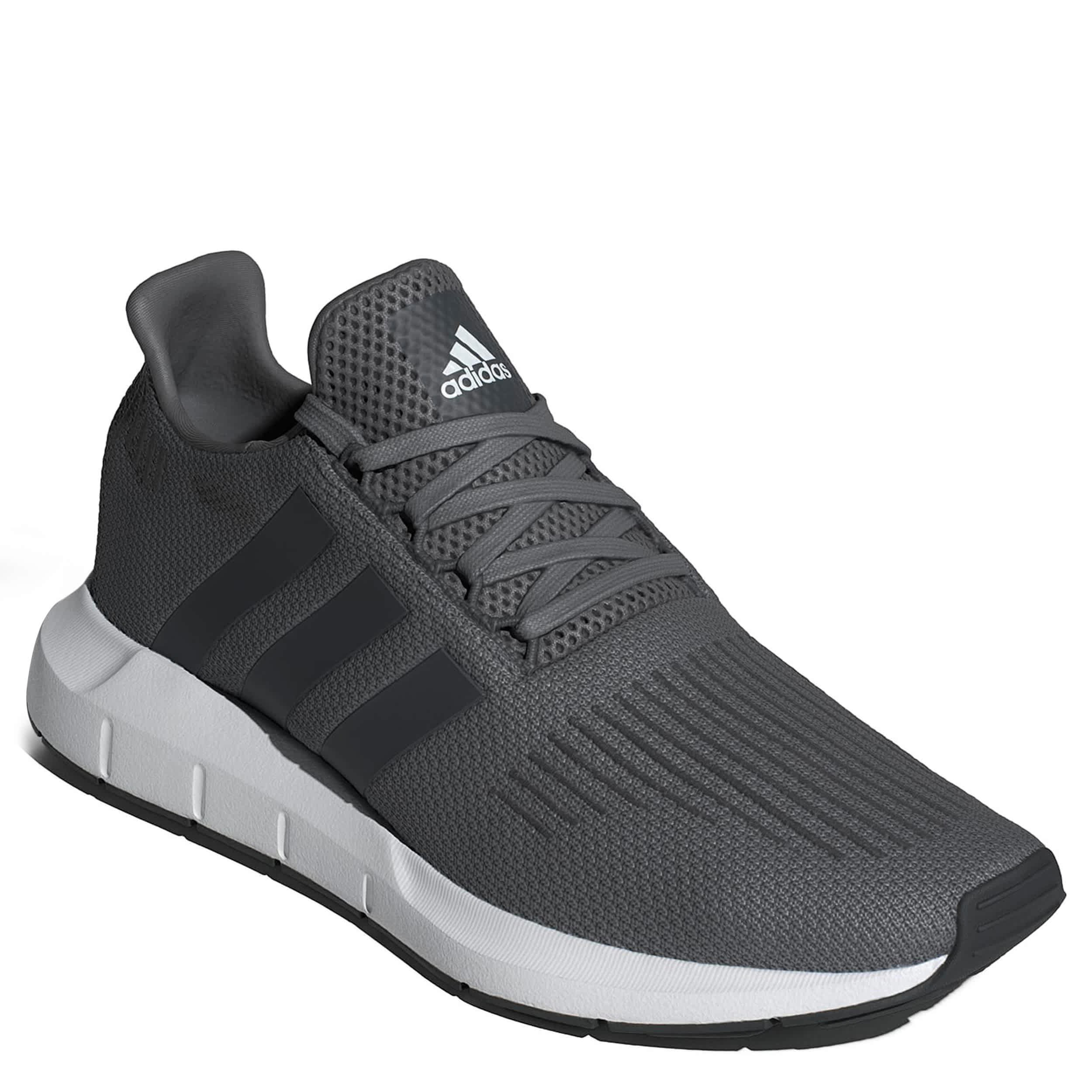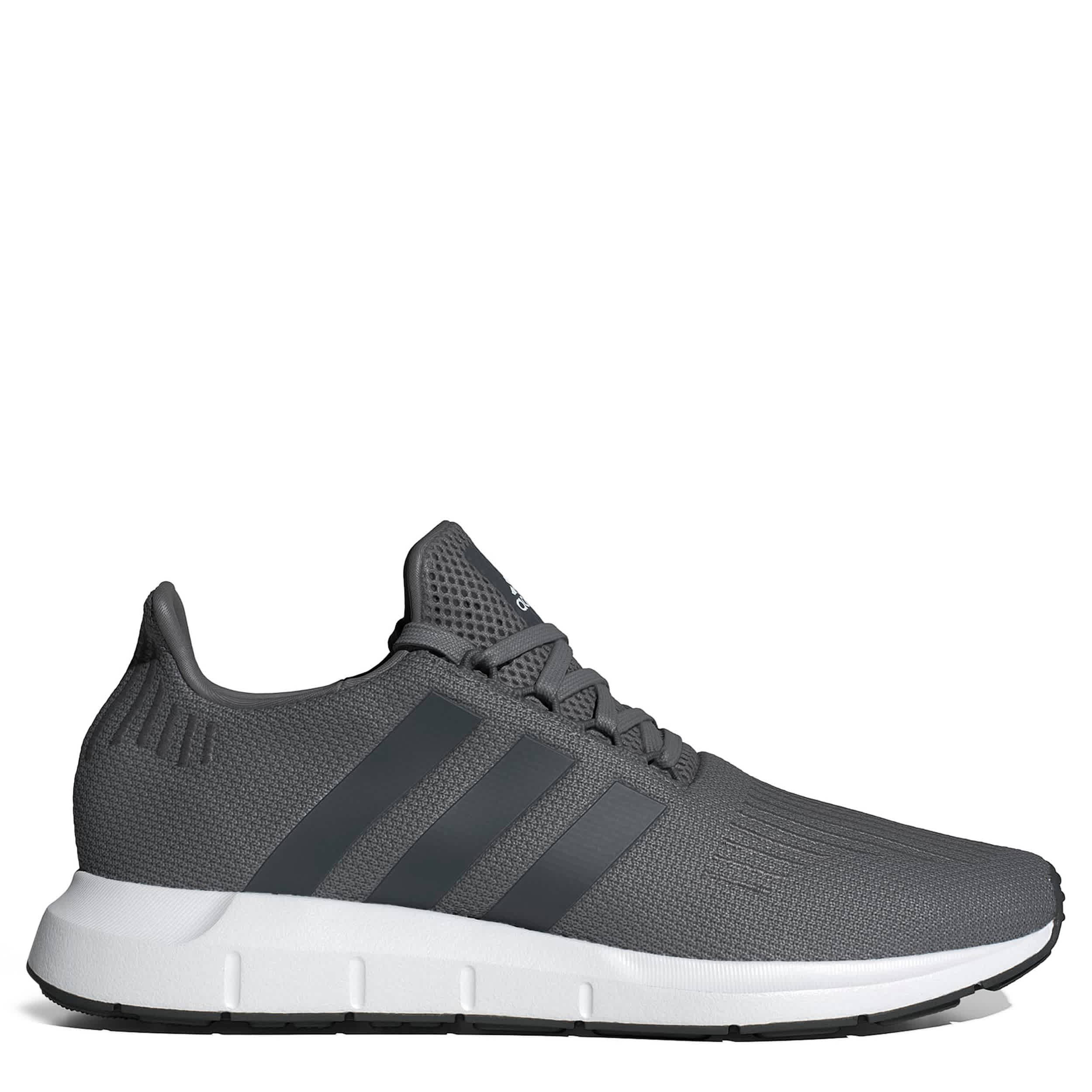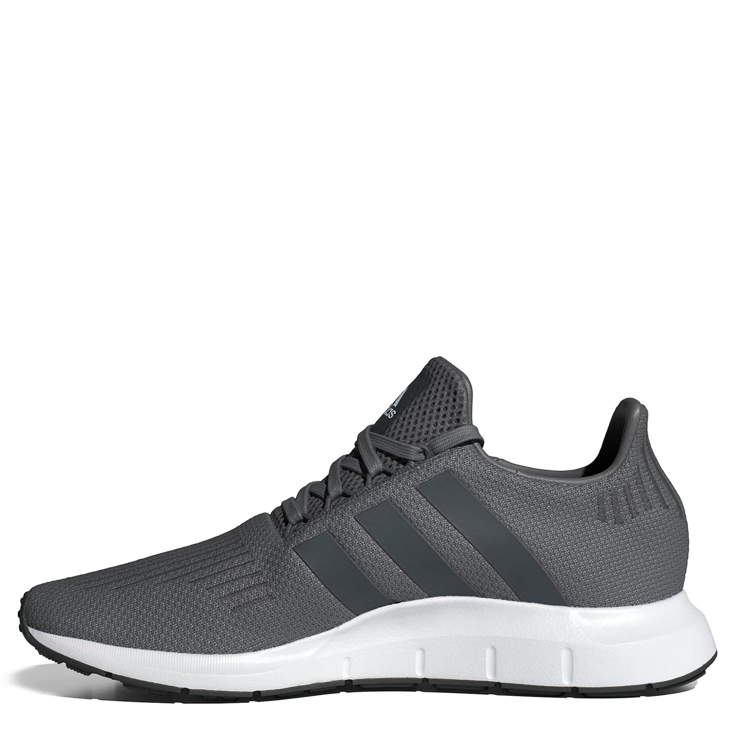 Live happily in the adidas Swift Run 1.0 sneaker. With a lightweight knit upper featuring a smooth lining and the signature 3-Stripes, this sneaker has an extended heel collar for comfy support. The EVA midsole cushions every step while the outsole offers durability to handle your daily moves.