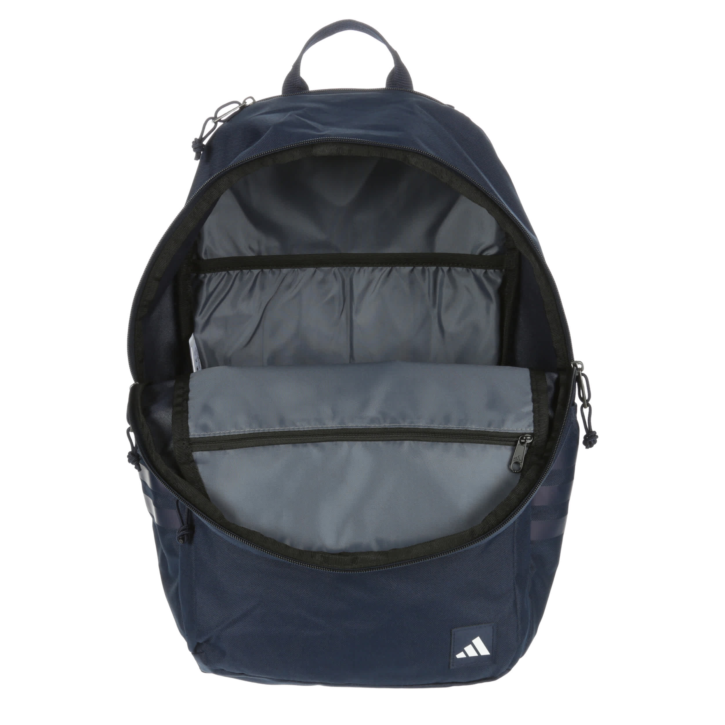 Fit everything you need in the adidas Classic 3-Stripes 5 backpack. Made from 100% polyester, this adidas-branded backpack features padded shoulder straps and back panel for a comfortable fit. Main compartment includes a sleeve large enough to fit a 16" laptop, while the front pocket offers easy access to smaller items like your phone, wallet, and keys.