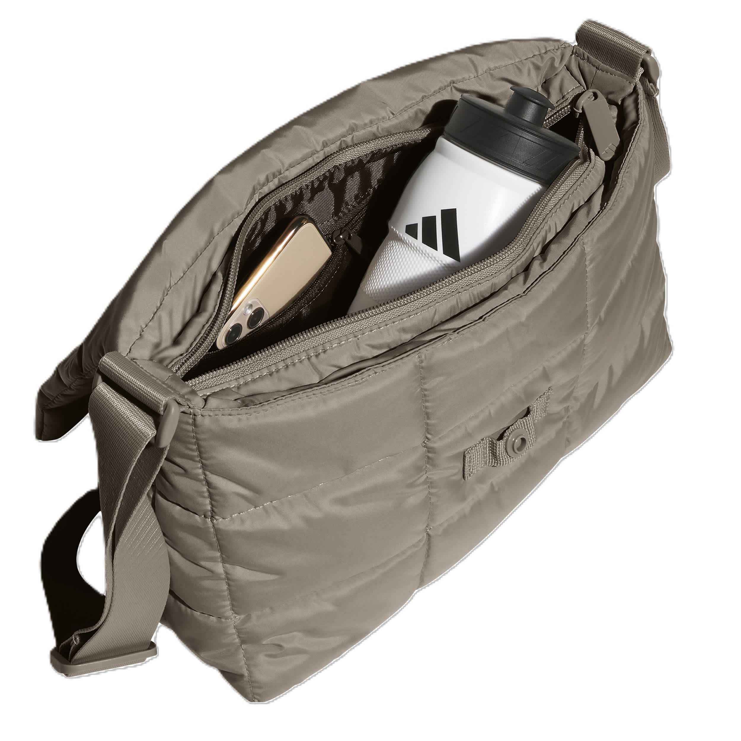 Tote your stuff in a cuter bag with the adidas Quilted Crossbosy bag. There's space for small essentials like your phone, a water bottle, books and a light jacket. The snap close foldover flap keeps things safe in the front slip pocket. Just grab and go.
