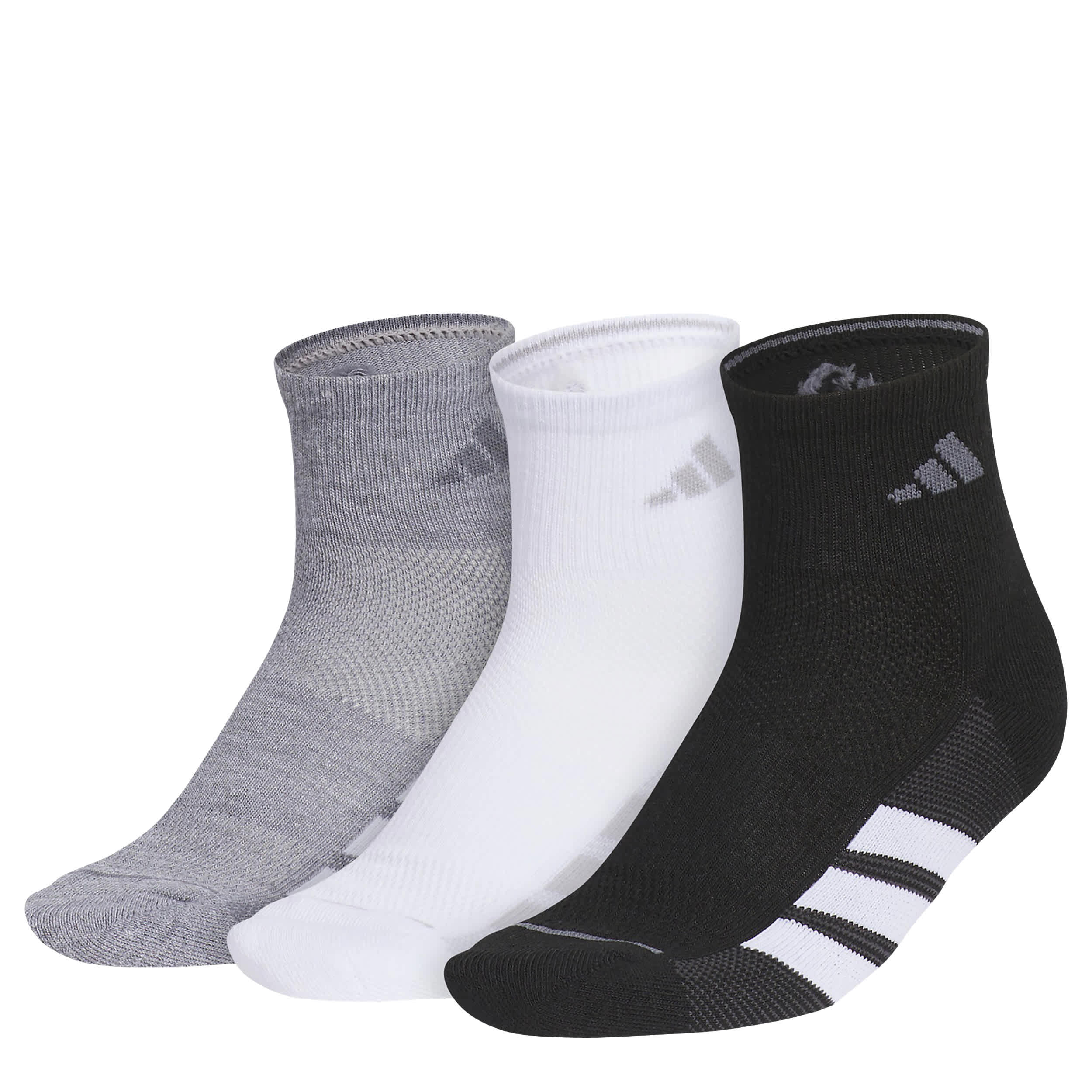 Reach your highest potential with the adidas All Day Training women's quarter socks 3 pack. Made with moisture-wicking technology, this sock is ready to keep you comfortable during any of your daily activities. The cushioned toe and heel give extra support.