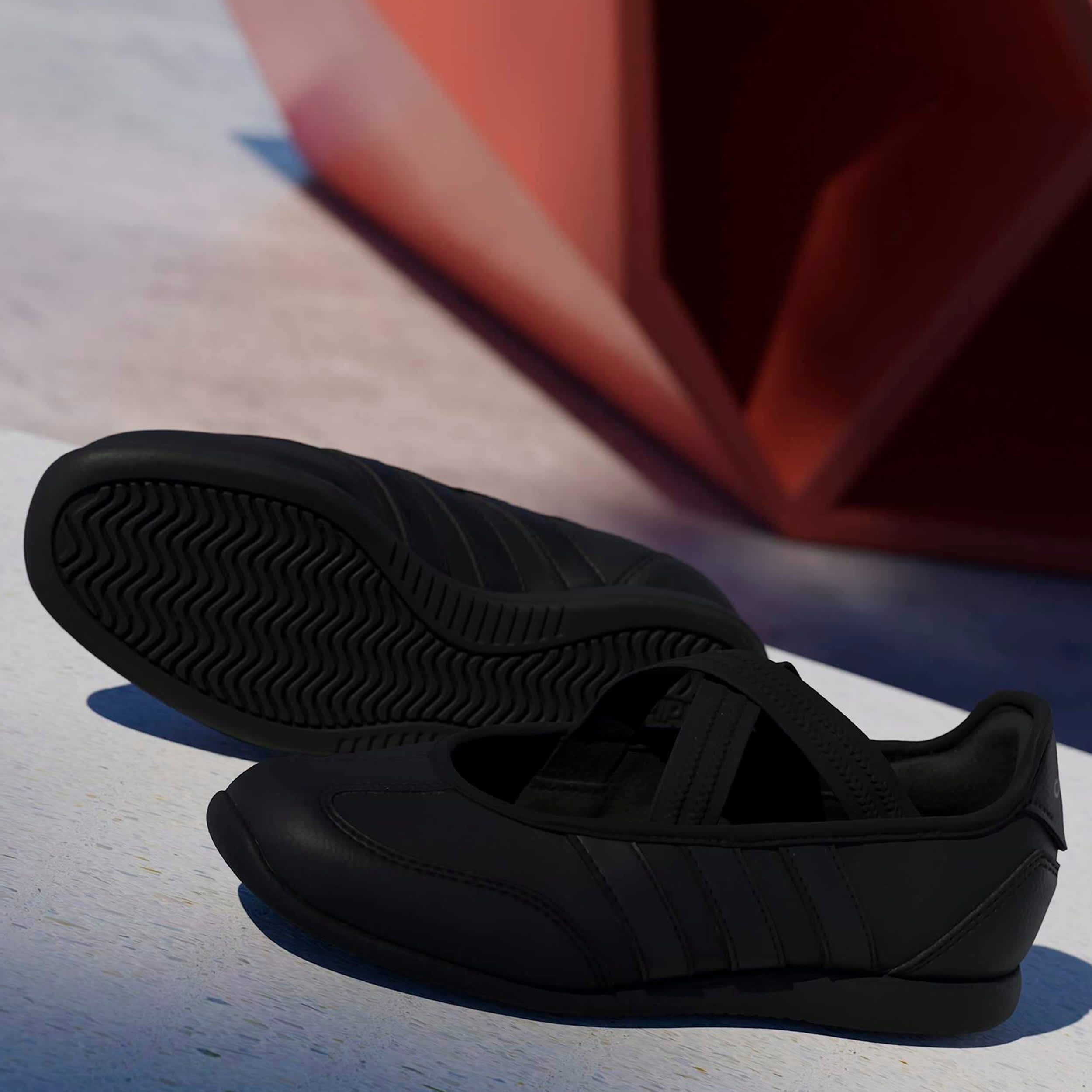 Low-profile and ballerina-styled, the adidas Barreda Mary Jane sneaker is edgy and distinctive. Featuring a faux leather upper and classic T-toe good looks, this shoe's easy-on straps provide a secure fit. Go from day to night with classic comfort and a durable outsole.