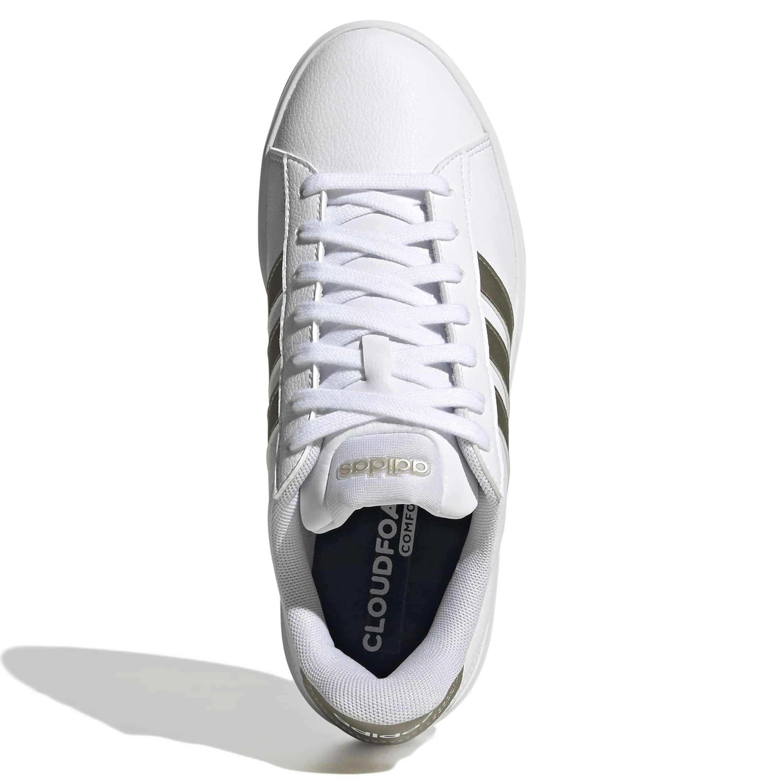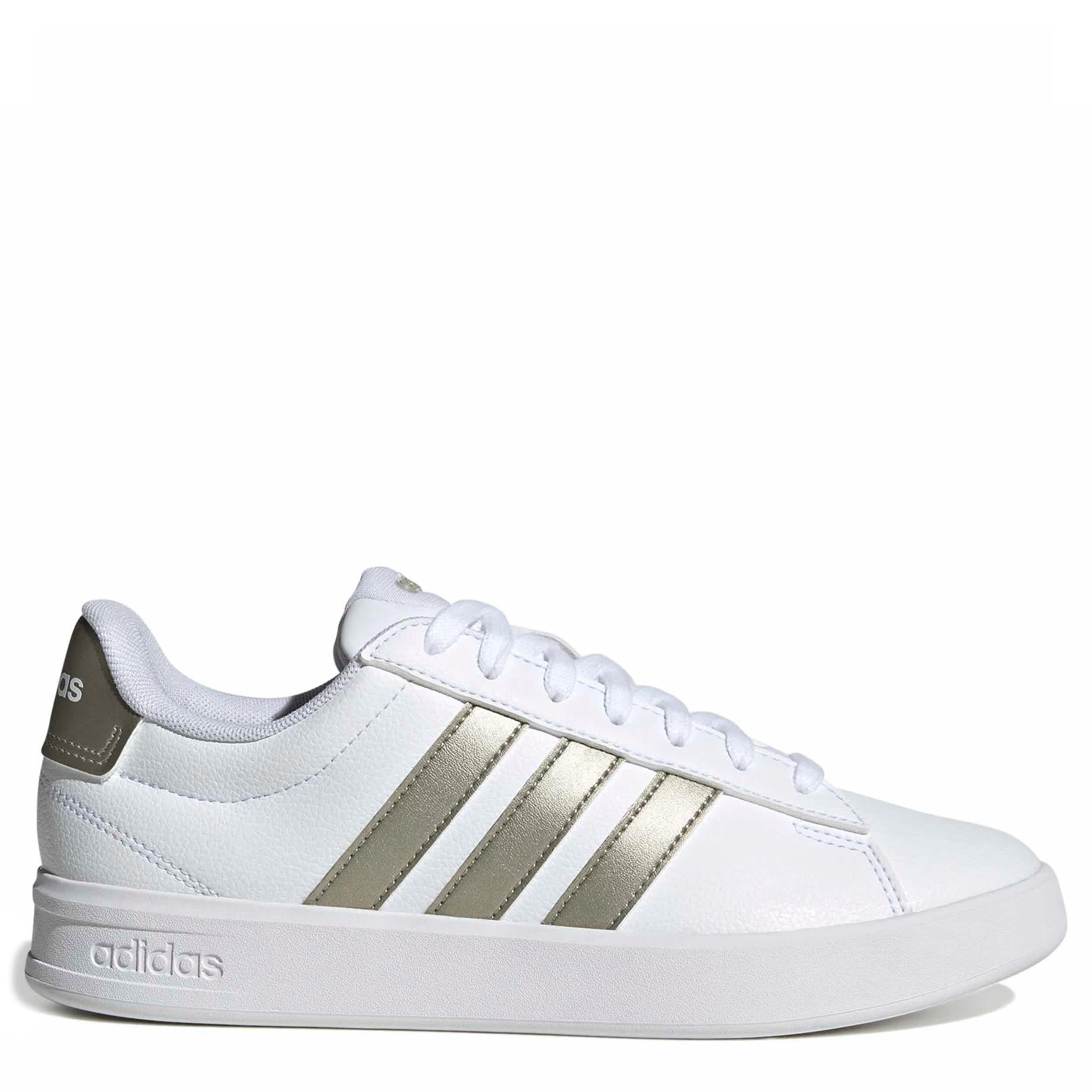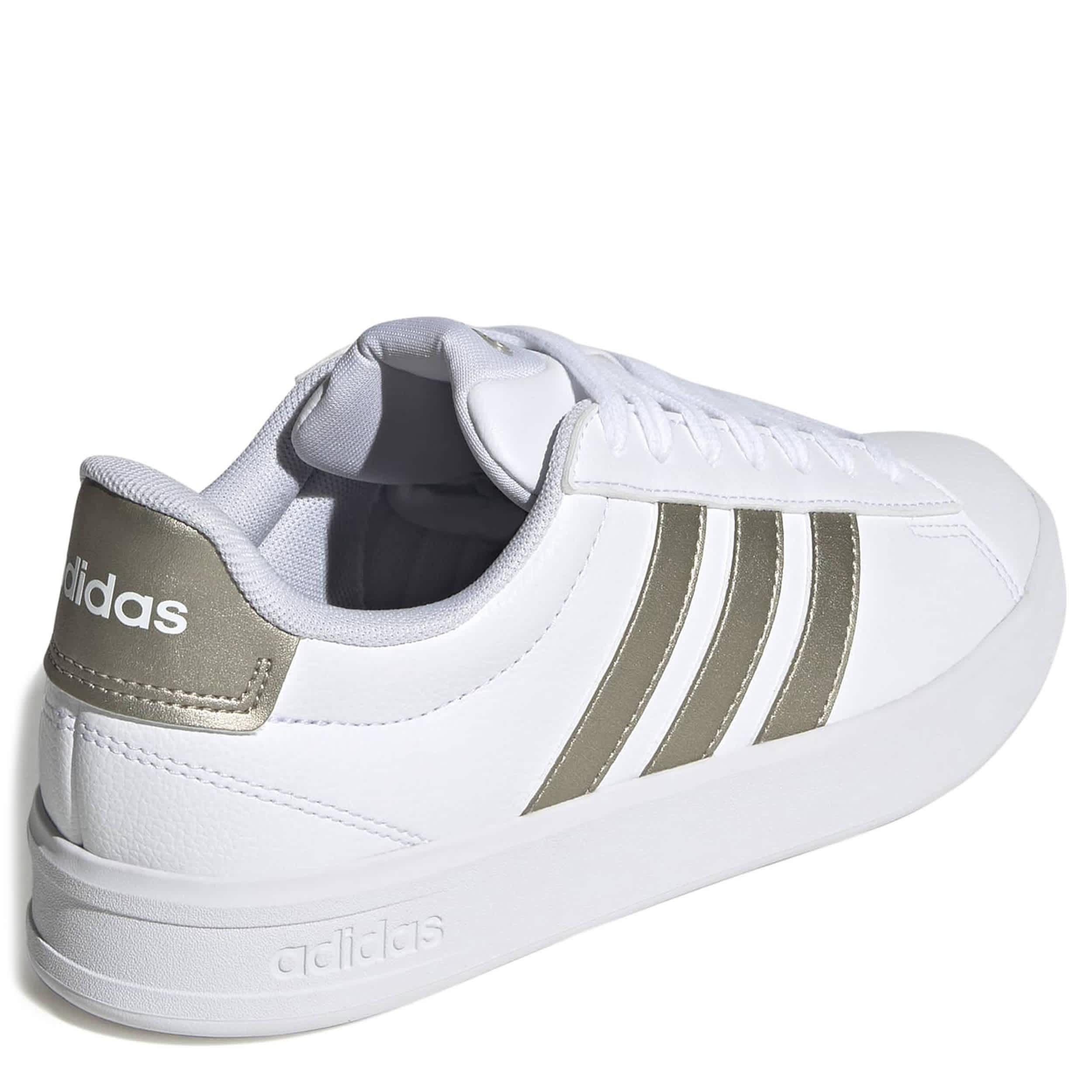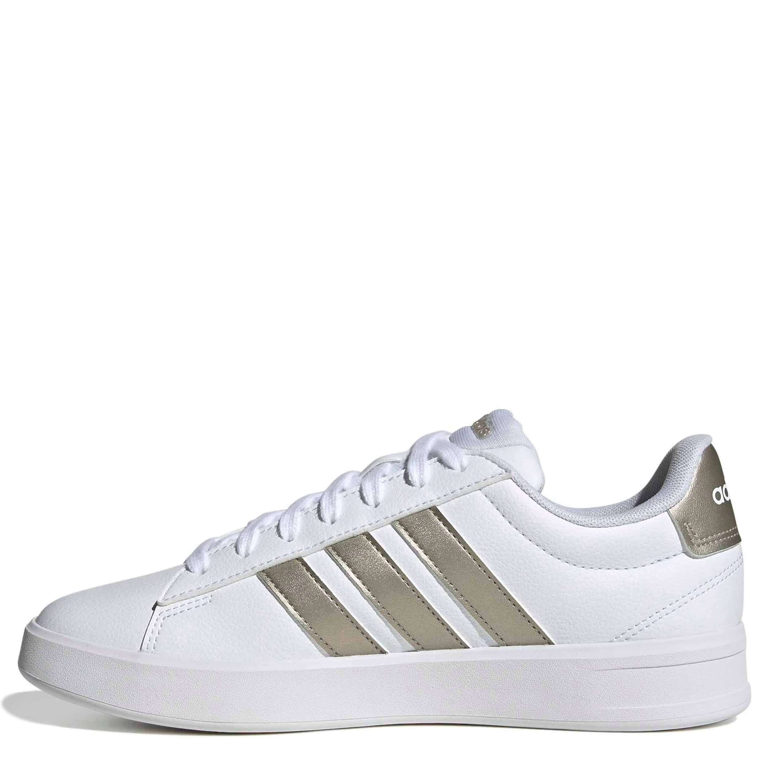 Style your sporty look with the Grand Court 3.0 sneaker. Featuring a faux leather upper and metallic 3-Stripes branding, this low-profile shoe is comfy with a padded collar and tongue. The Cloudfoam sockliner cushions every step, while the slimmed-down outsole keeps up with your stride.