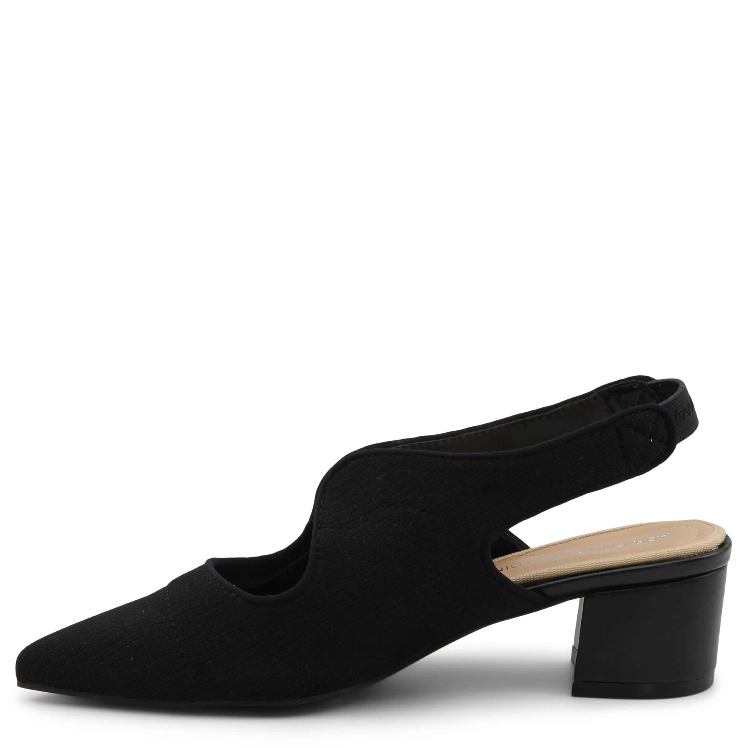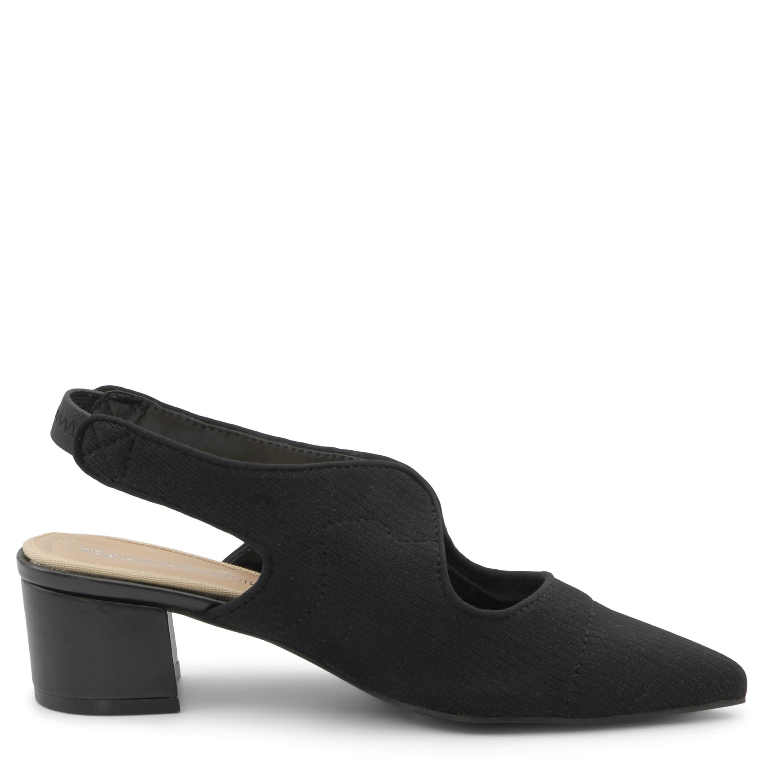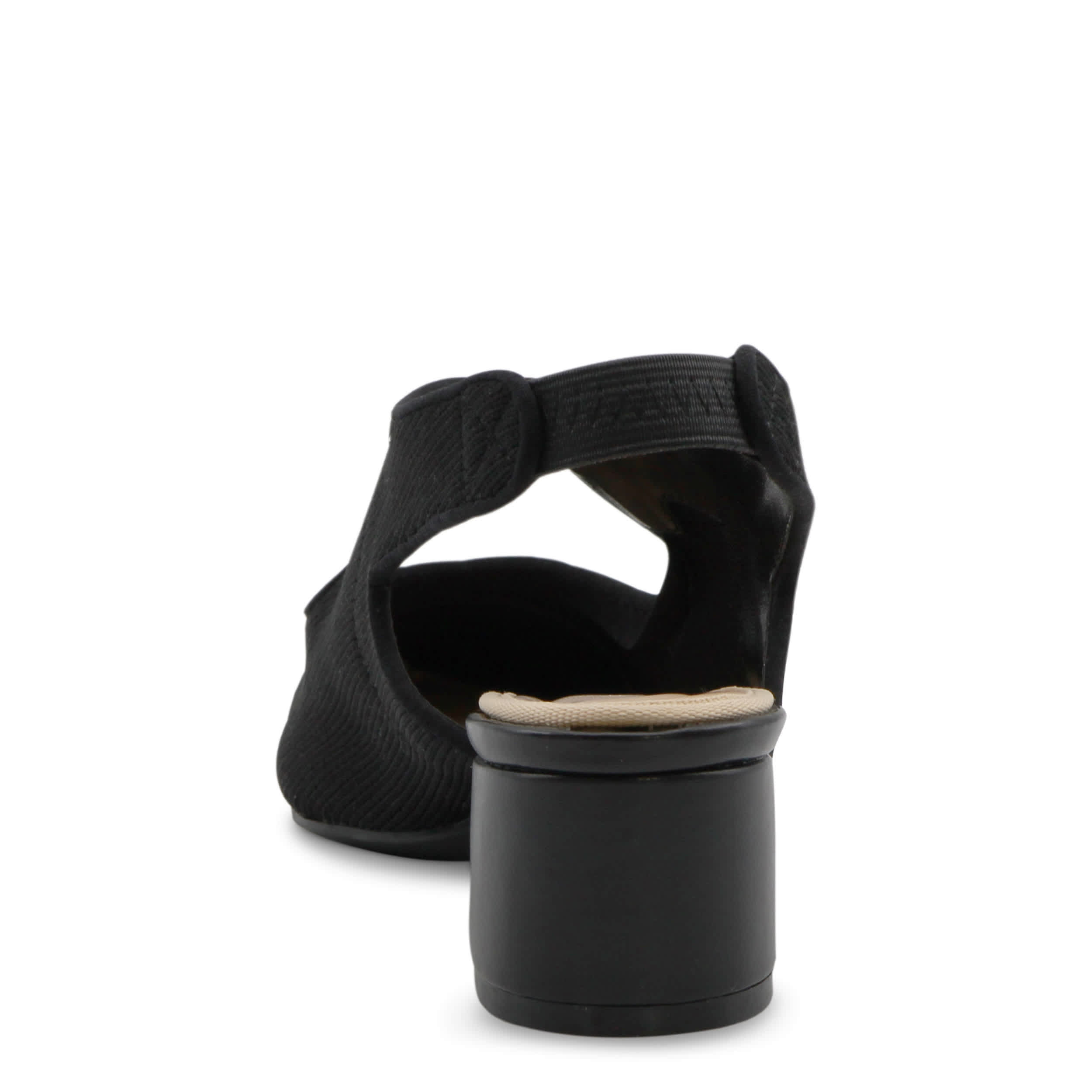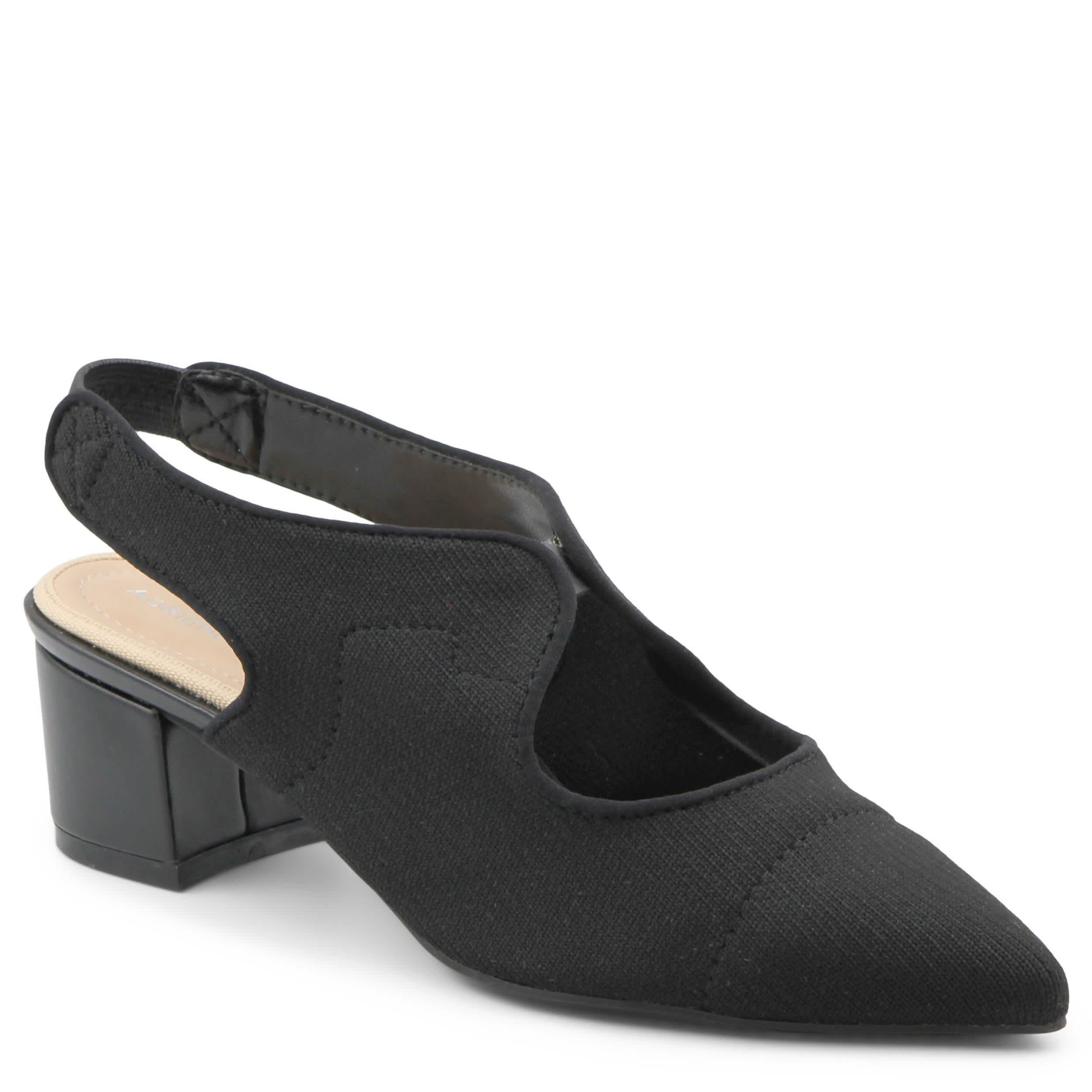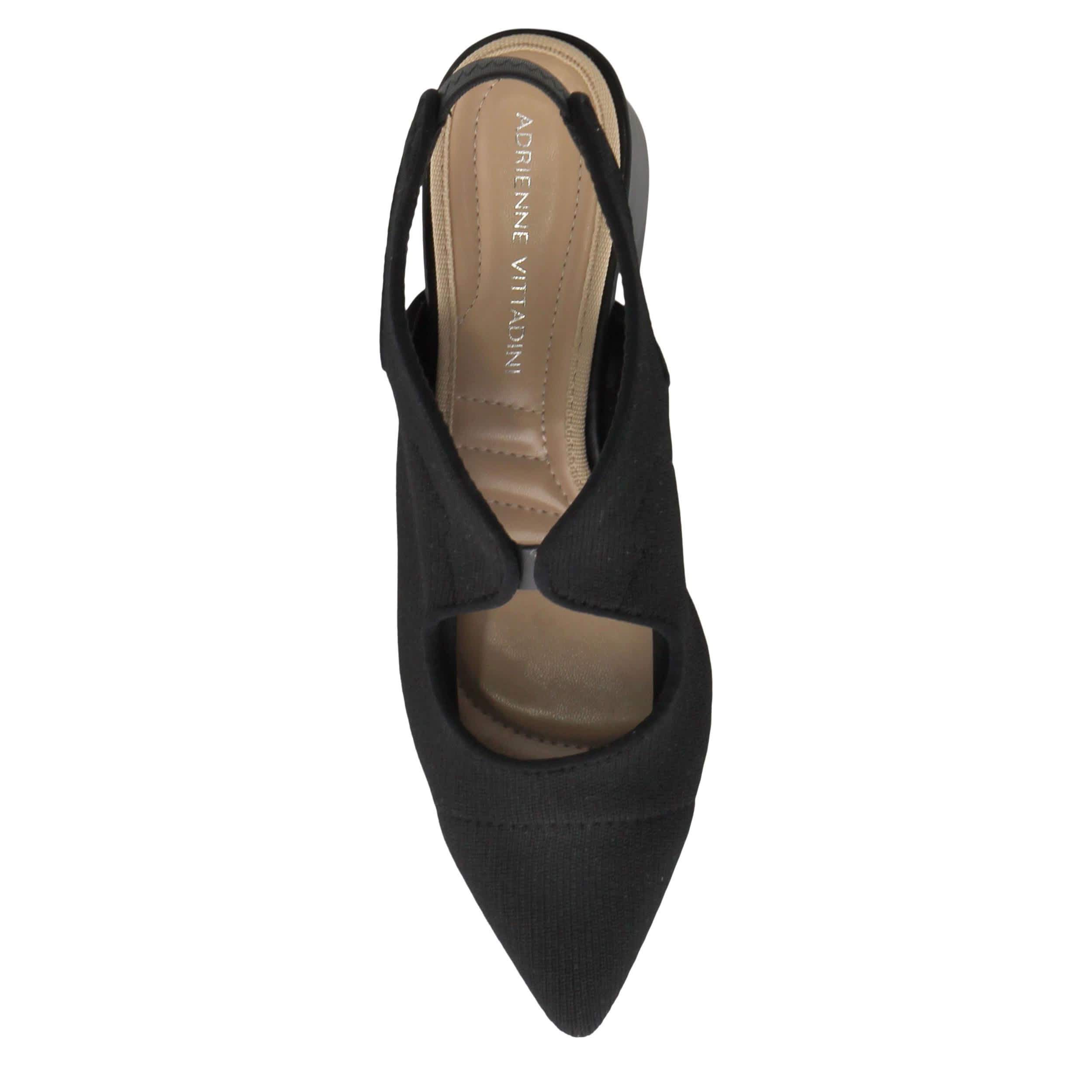 Cutout style in the Adrienne Vittadini Goldie pump. Featuring a stretch knit upper with a layered toe, this slingback exudes sensible sophistication. The insole soothes your foot, while the heel offers just enough lift.