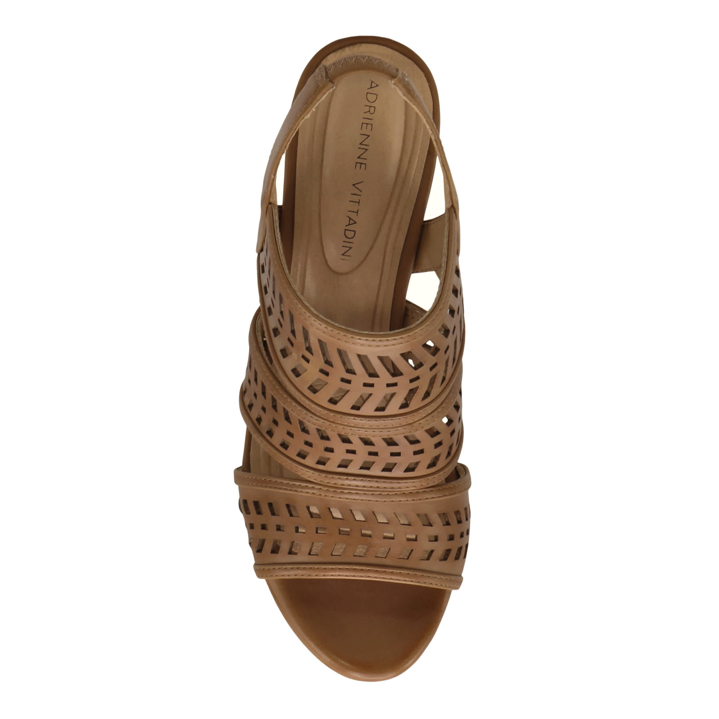 Step out in style this summer in the Adrienne Vittadini Persia pump. Featuring a faux leather upper with geometric cut outs, this peep toe shoe has a stretchy elastic slingback strap for a comfy, secure fit. The foam insole supports your foot, while the heel gives a substantial lift.