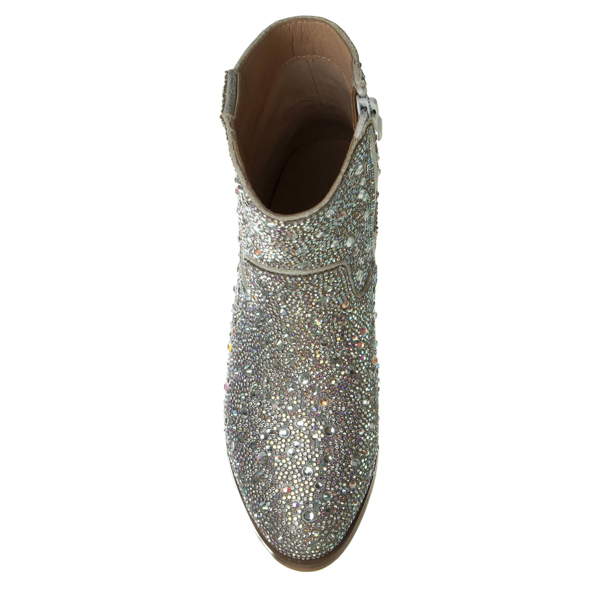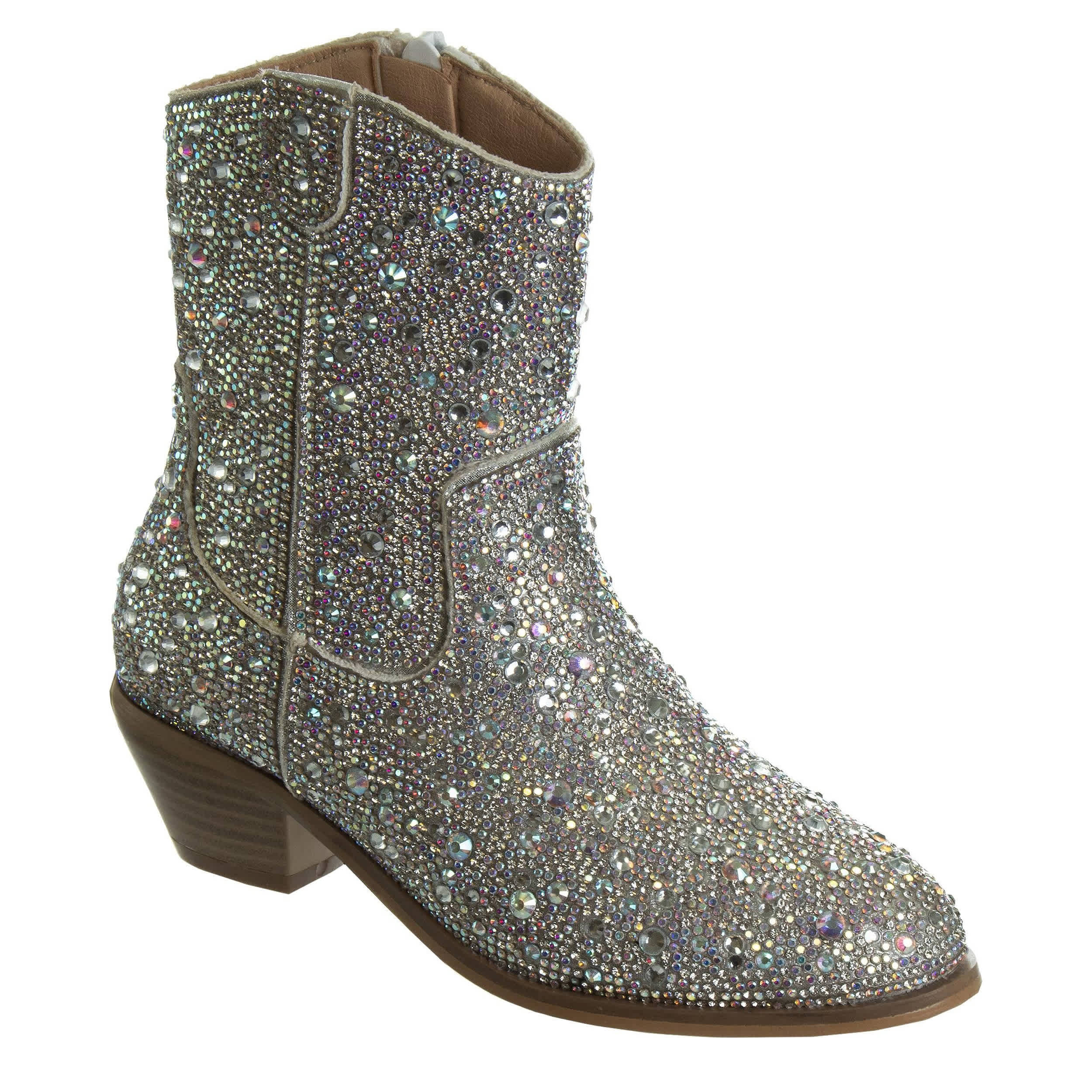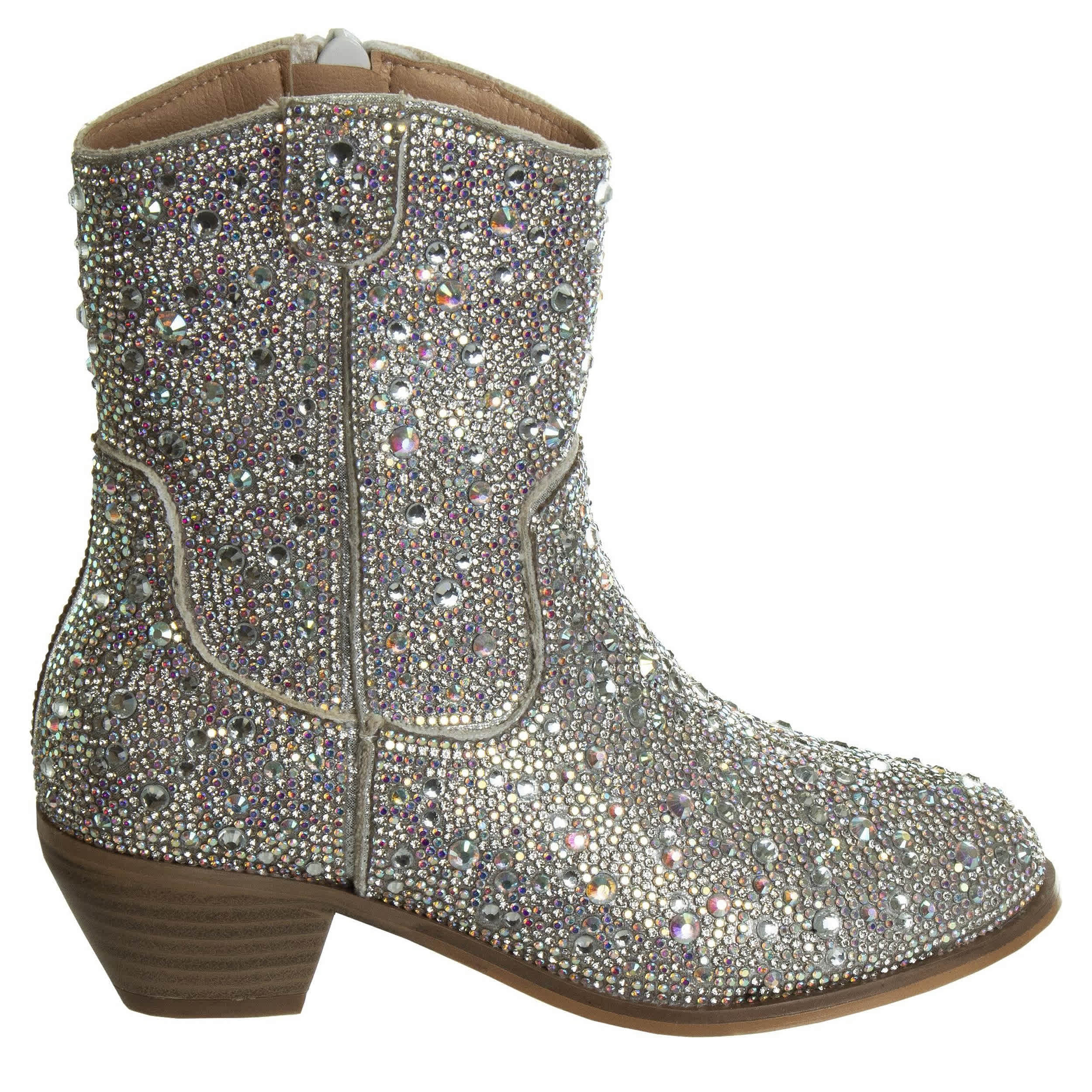 Build on her style with the American Glamour Badgley Mischka girls' Western dress boot. Featuring a rhinestone-covered upper with an allover sparkle effect, this boot will look amazing on your little cowgirl. The padding adds extra comfort, while the low heel offers stability.