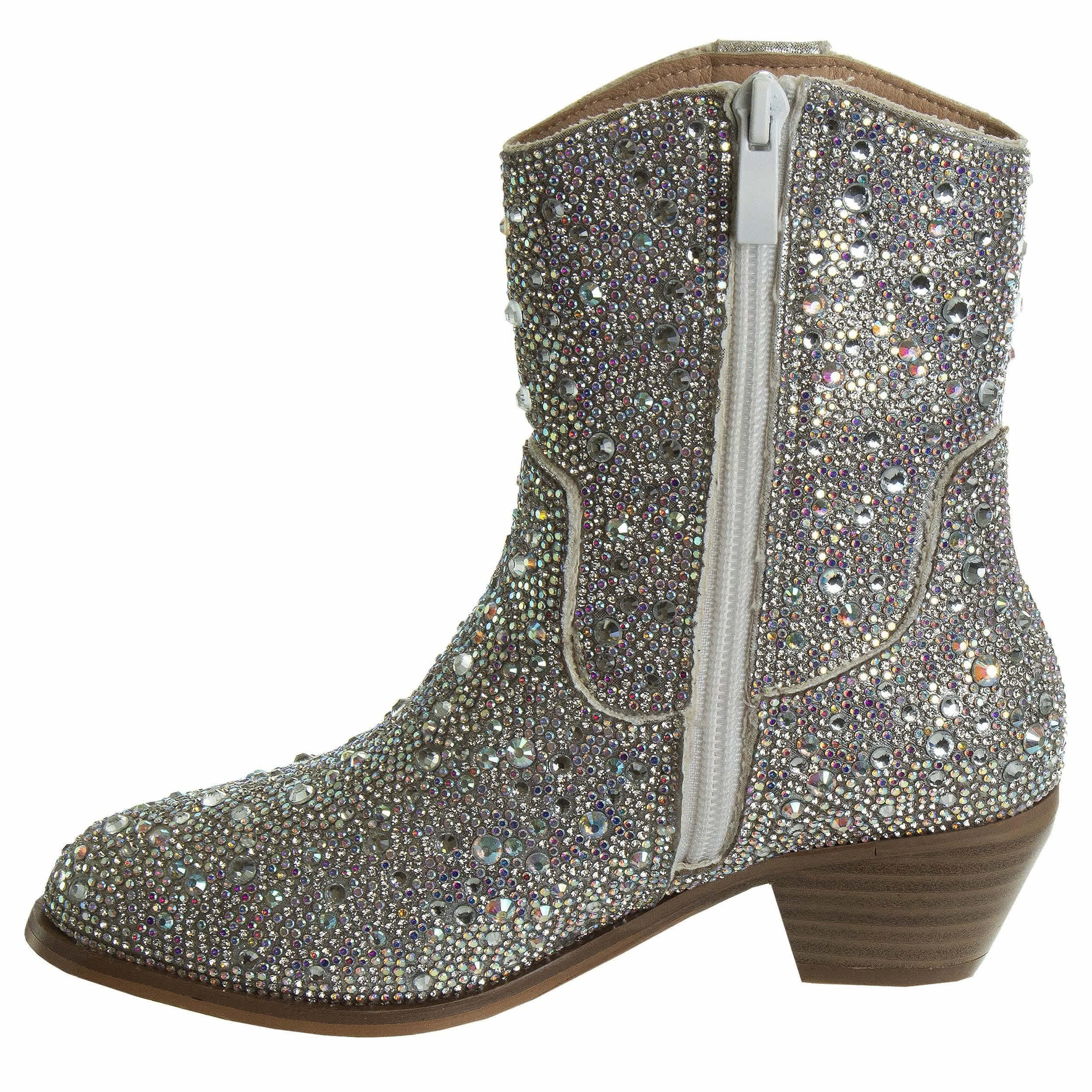 American Glamour Badgley Mischka Little/Big Kid Girls' Western Dress Boot – Silver