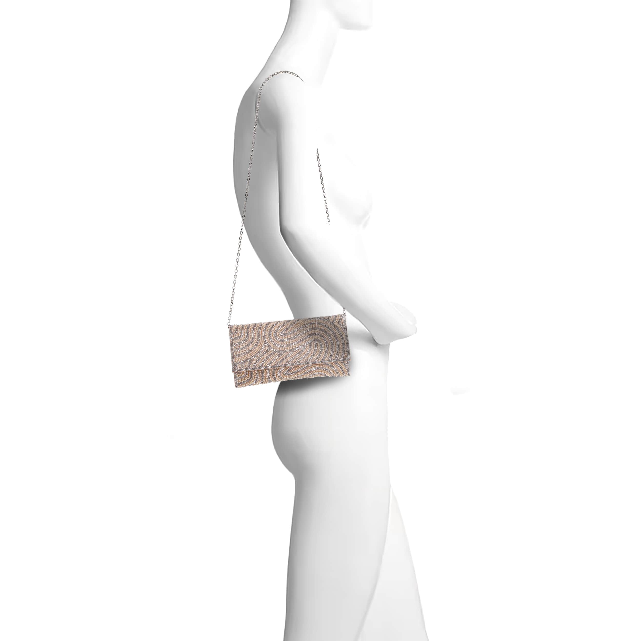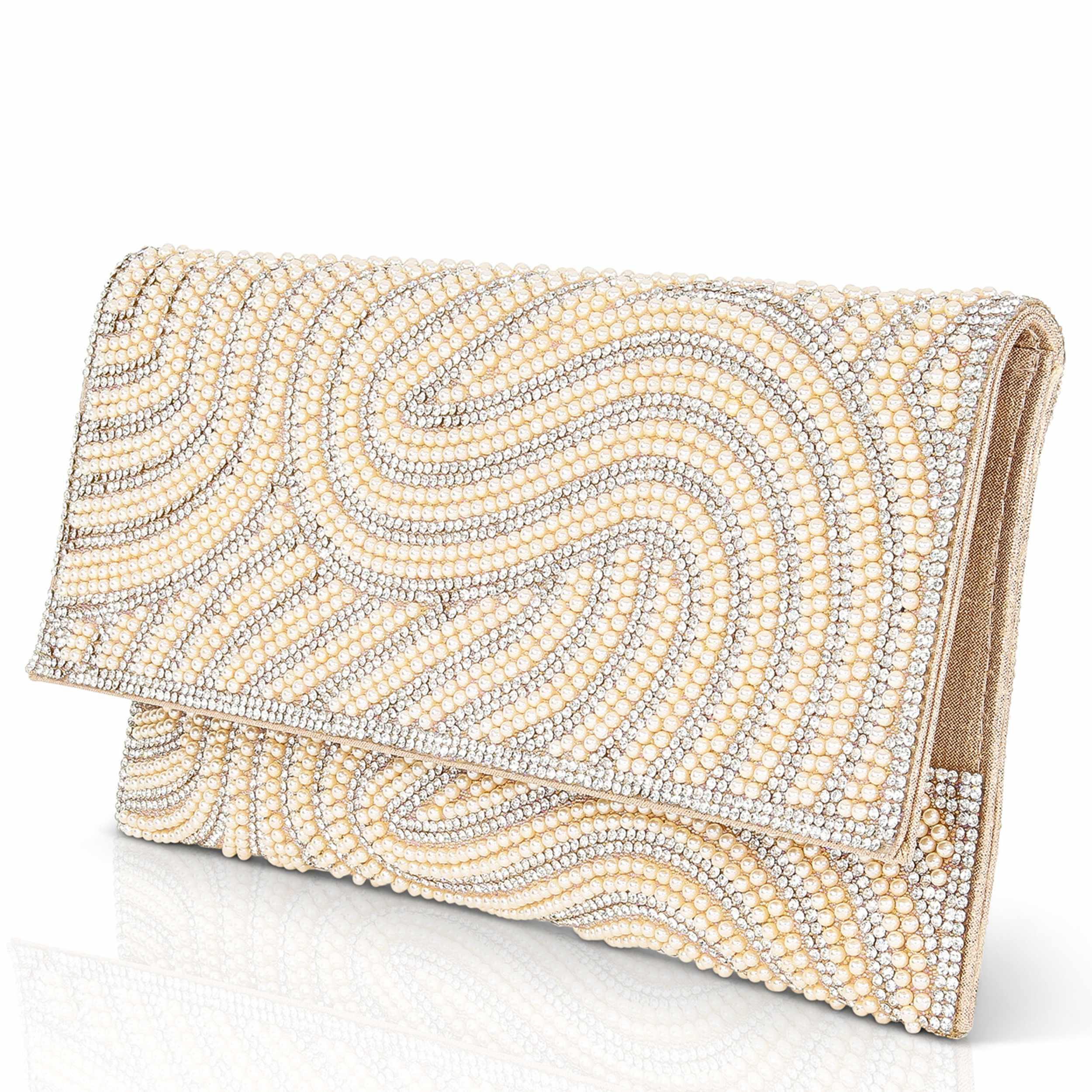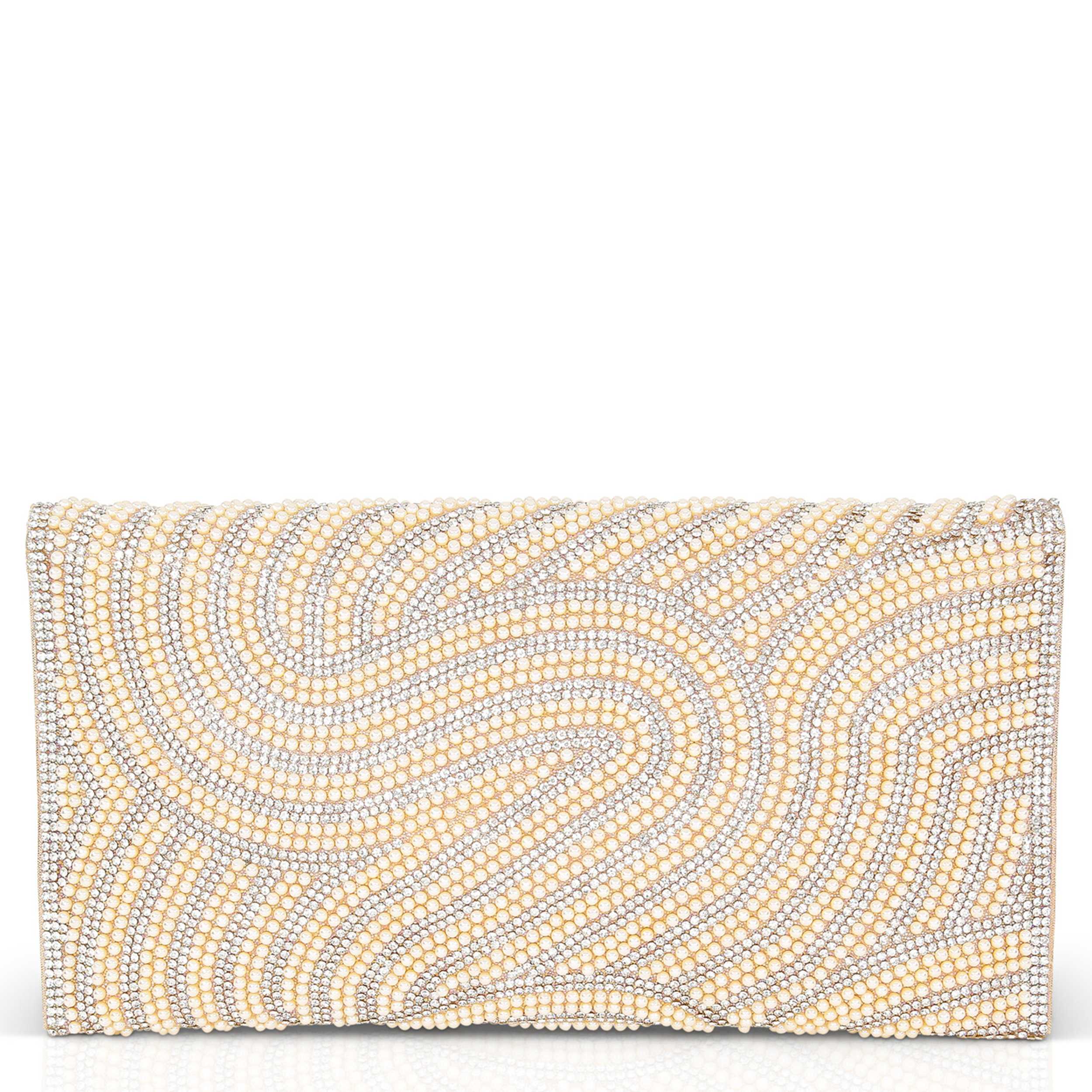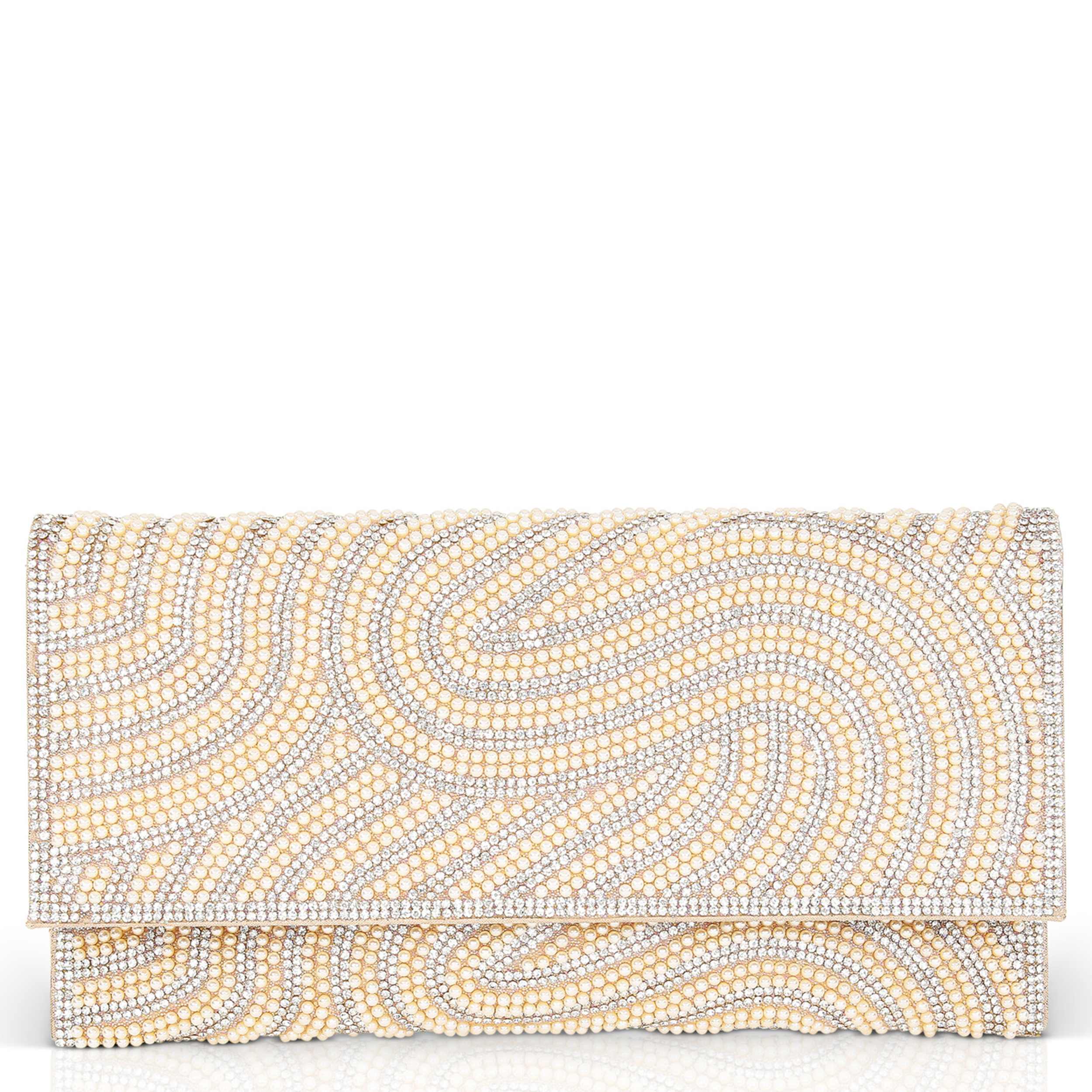 American Glamour Badgley Mischka Pearl and Crystal Swirl Women's Envelope Clutch - Champagne