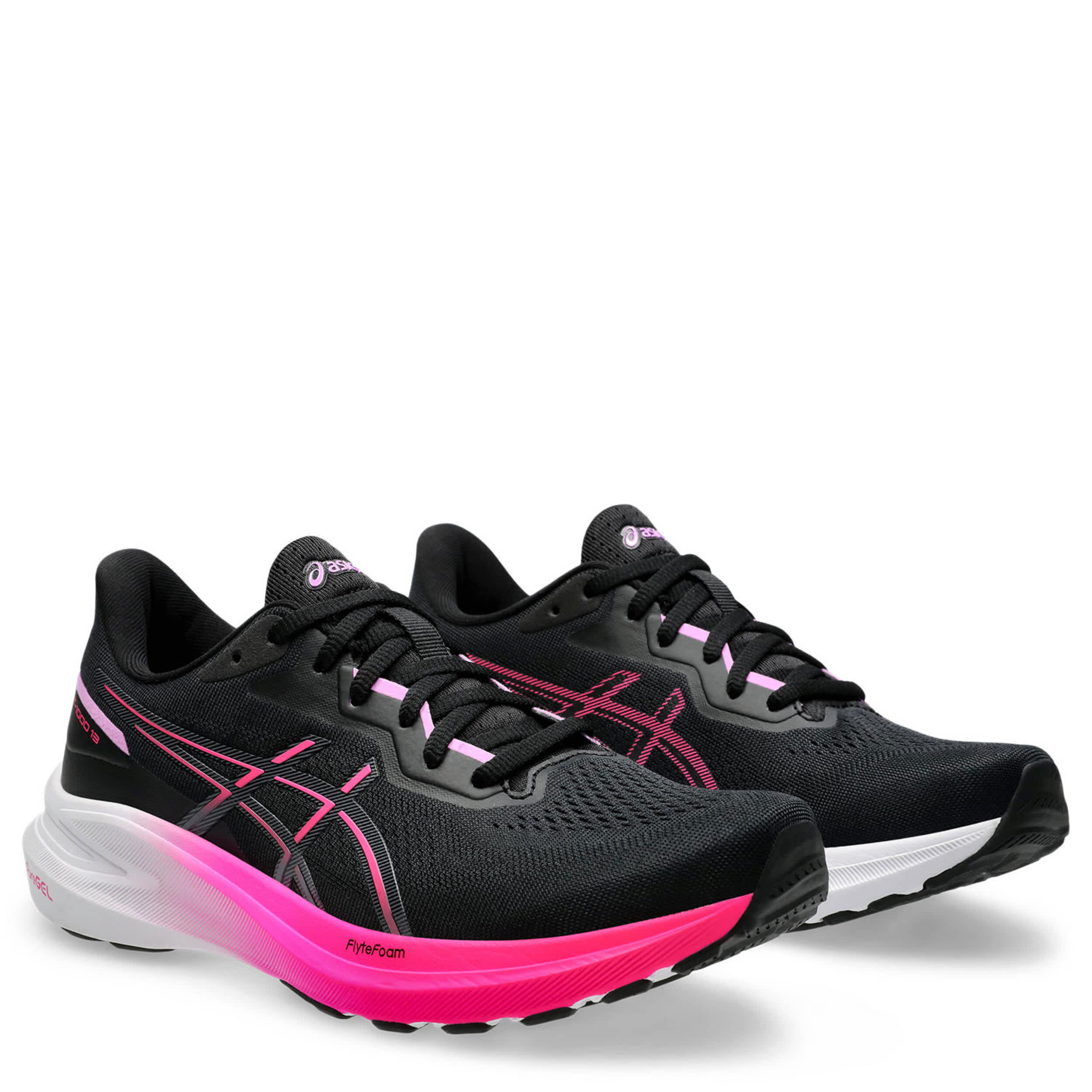 Energize your runs with the ASICS GT-1000 13 women's running shoe. Featuring an engineered mesh upper with a 3D GUIDANCE SYSTEMâ„¢ to increase stability, this sneaker also has an OrthoLiteâ„¢ Hybrid Max sockliner. The combined FLYTEFOAMâ„¢ cushioning with rearfoot PureGELâ„¢ technology supports softer landings, while the outsole provides outstanding traction.