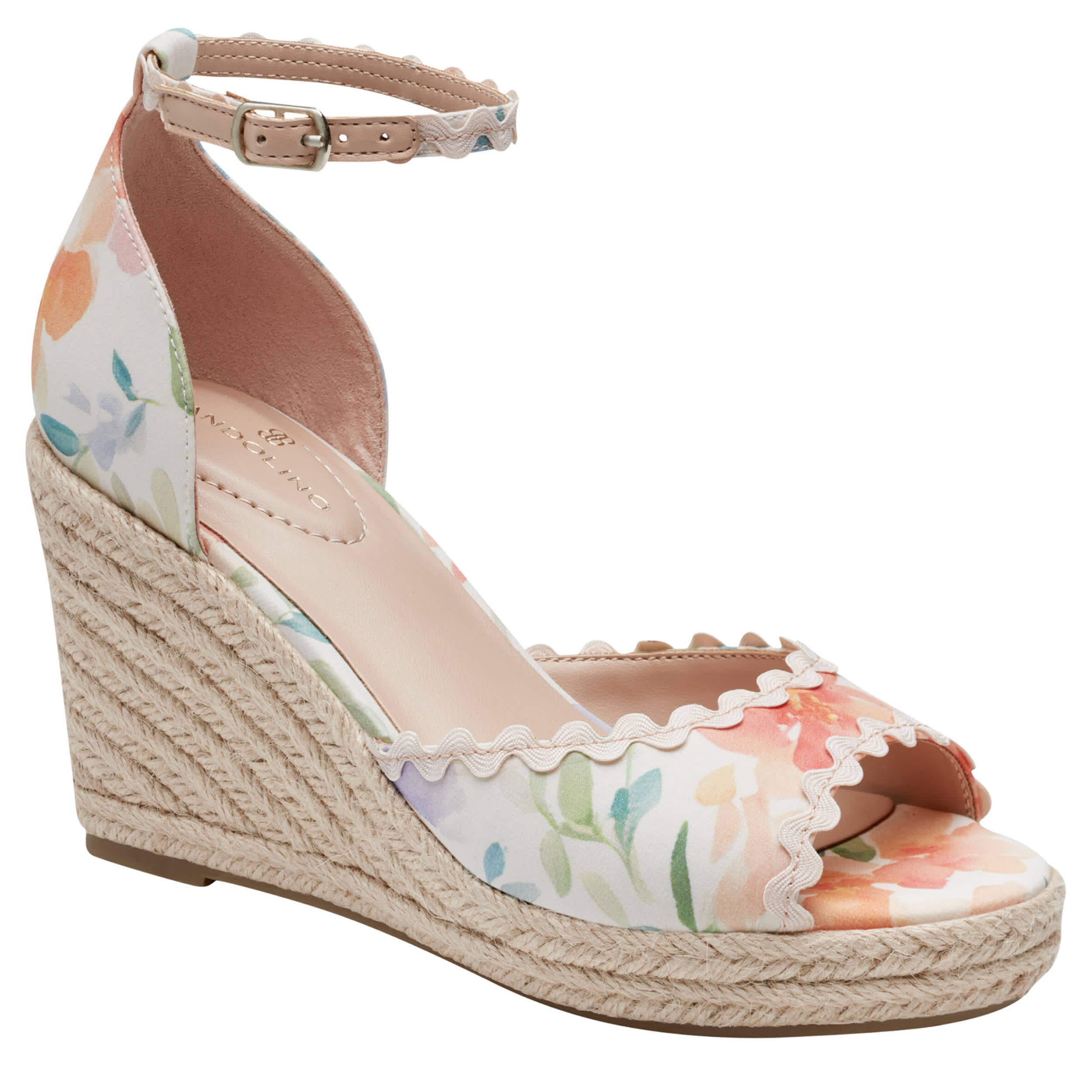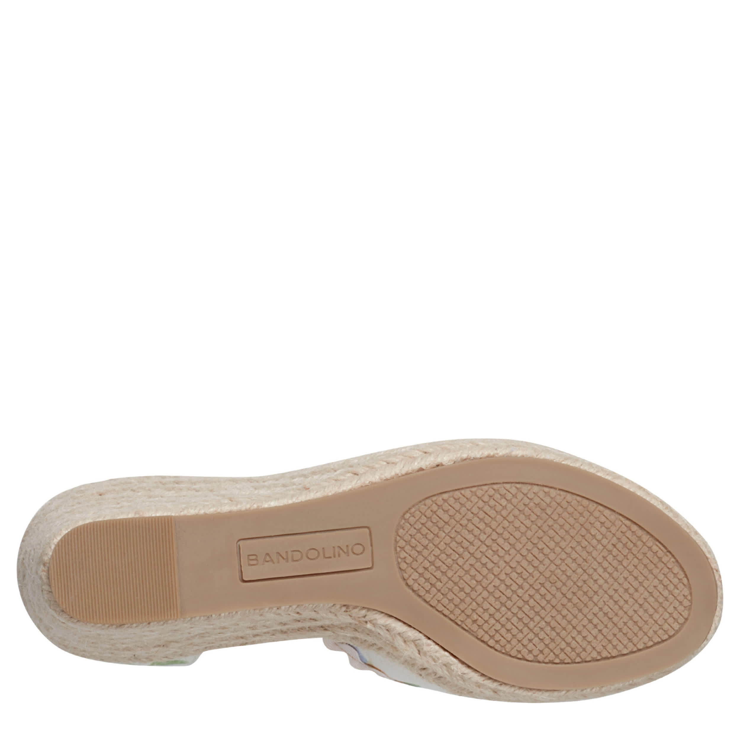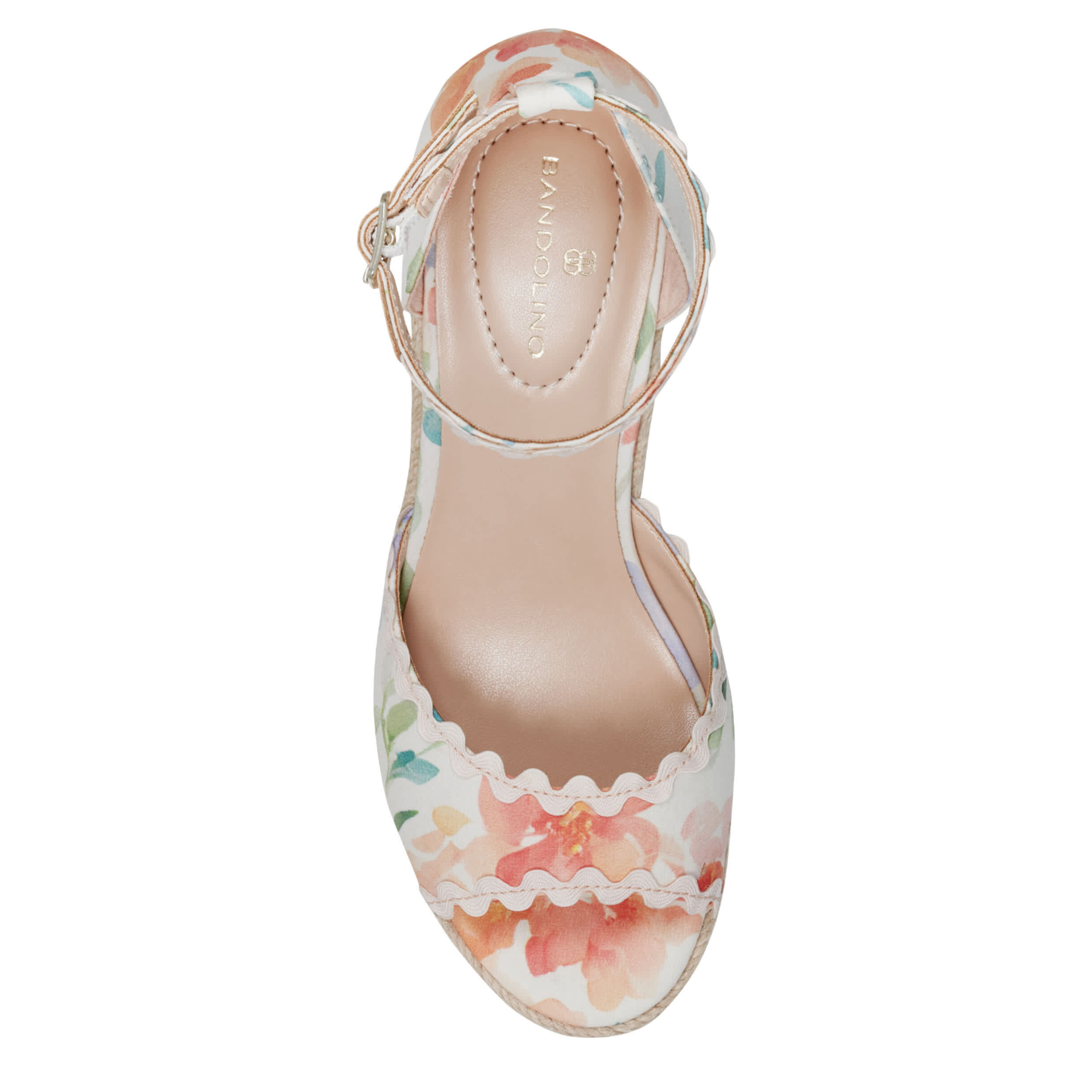 Elevate your summer outfits with the Bandolino Kendri7 wedge sandal. Featuring a beachy linen upper with a scalloped trim for added style, this shoe has an adjustable ankle strap for a secure fit. The foam insole soothes your foot, while the espadrille wedge heel lifts your look with a boho touch.