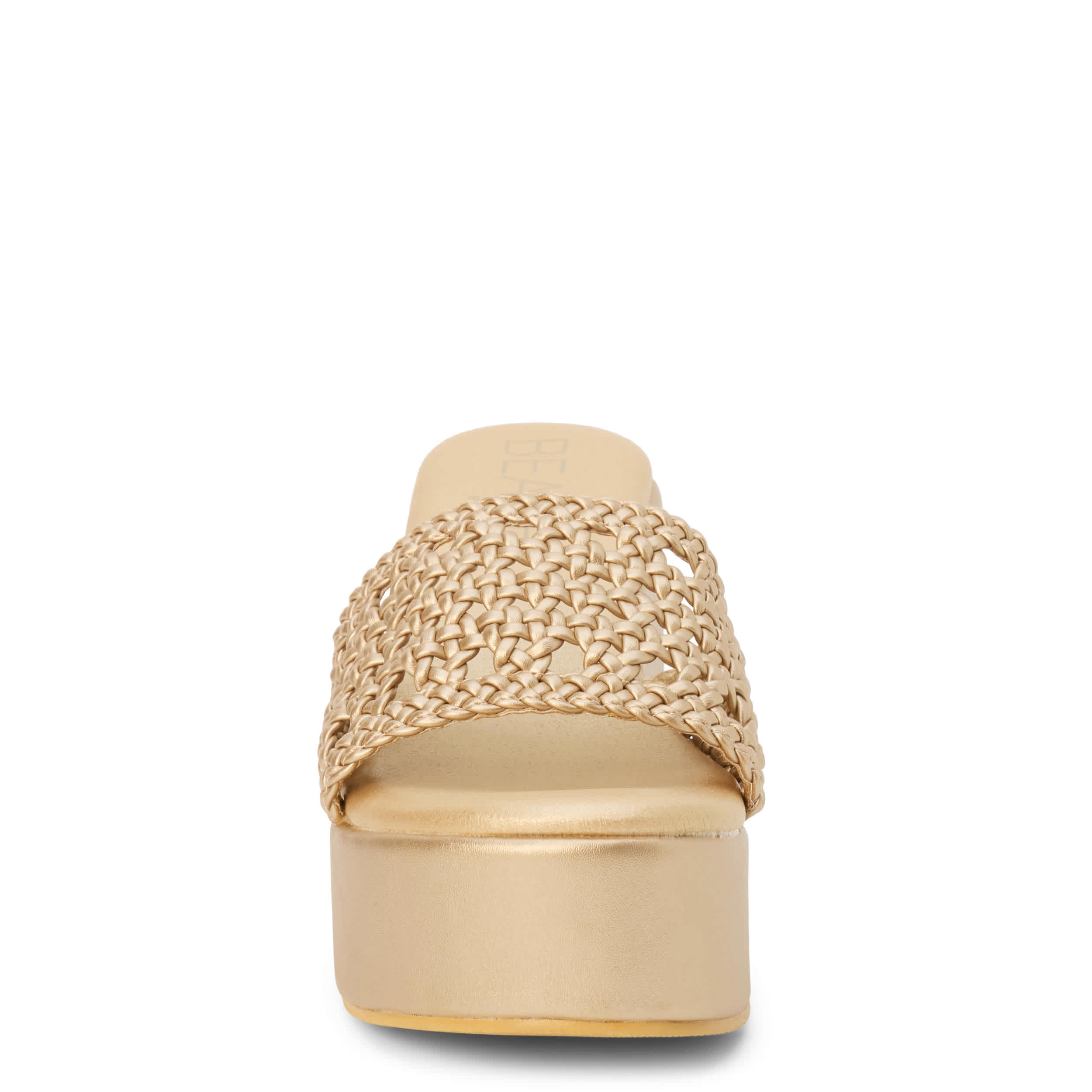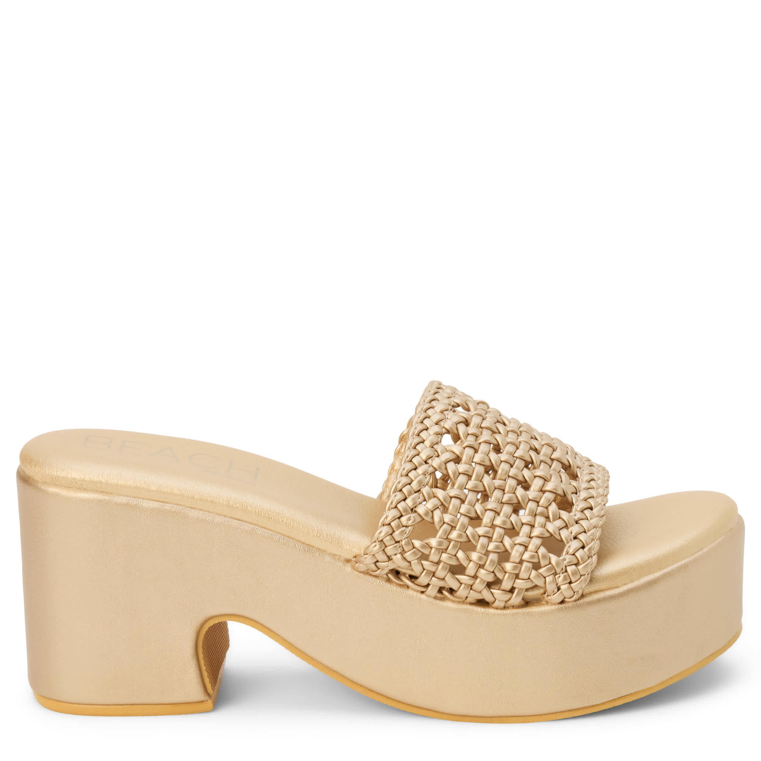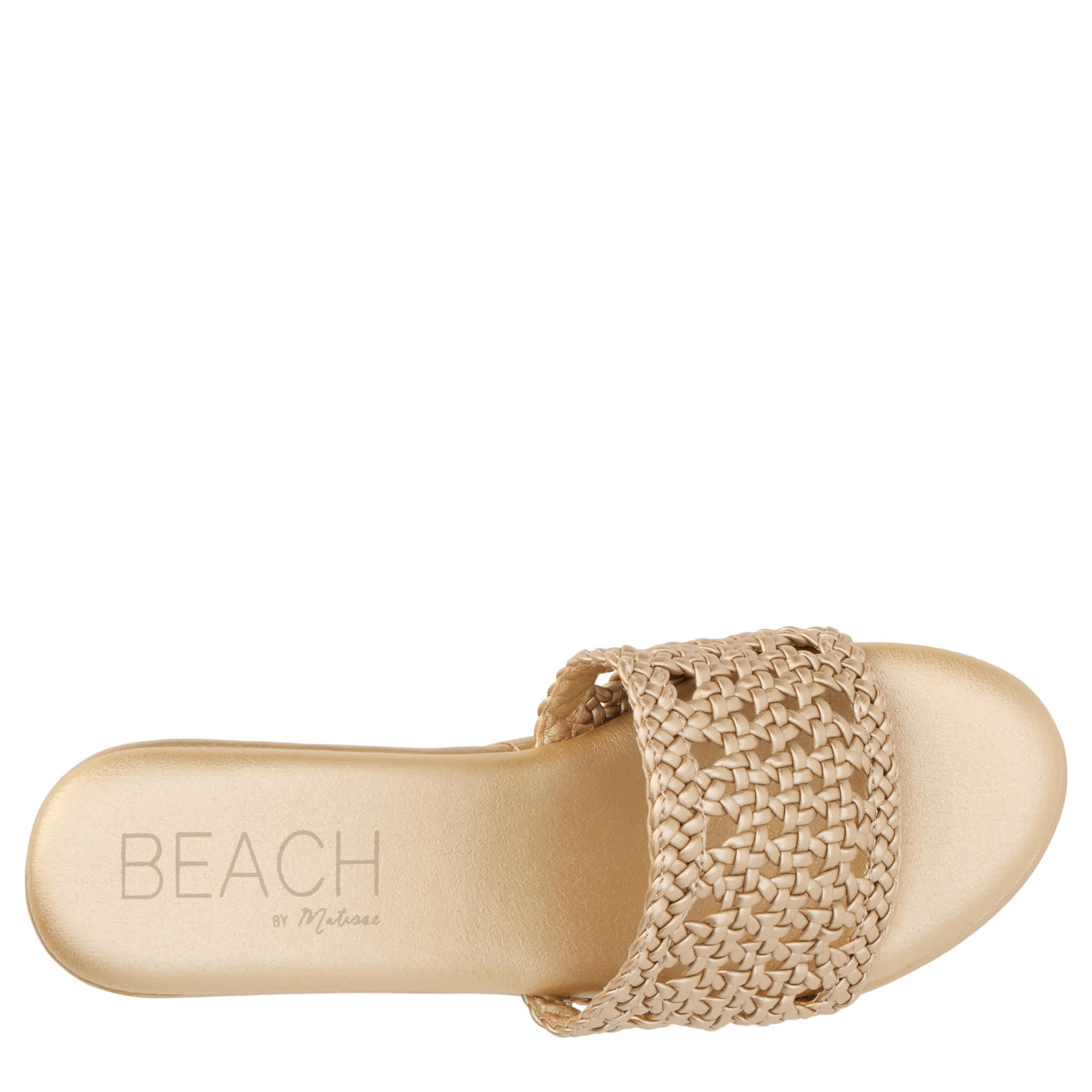 Pack the Cove women's sandal from Beach by Matisse for your next vacay. Featuring a metallic faux leather upper with a woven band design, this sandal can take your look from beach to street in a blink. The footbed cushions every step while the textured outsole adds some traction.