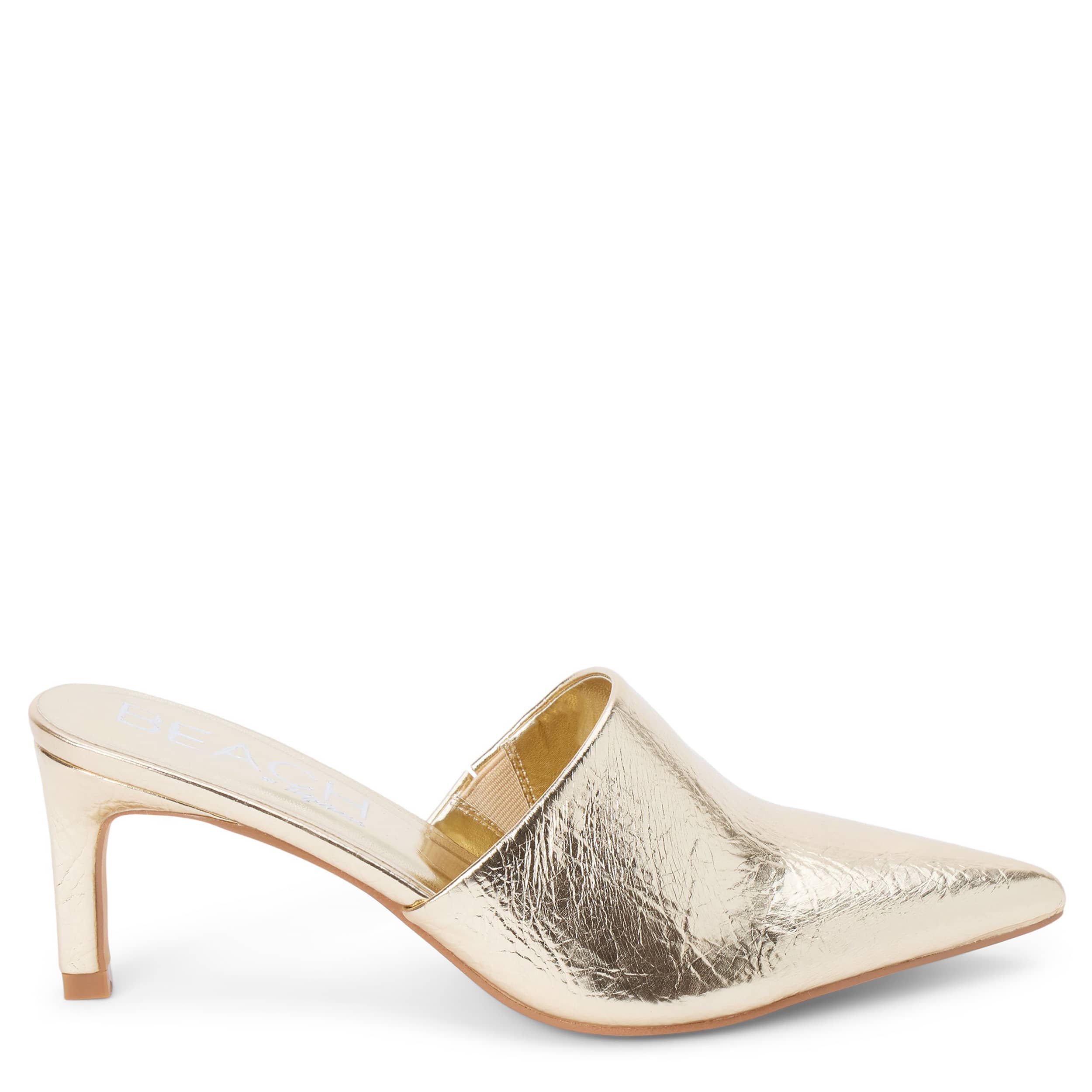 Go from summer to fall in the Garret women's pump from BEACH by Matisse. Featuring a metallic faux leather upper with a textured finish, this mule has a sleek pointed toe and hidden goring for a secure fit. The footbed cushions every step while the heel adds nice lift.