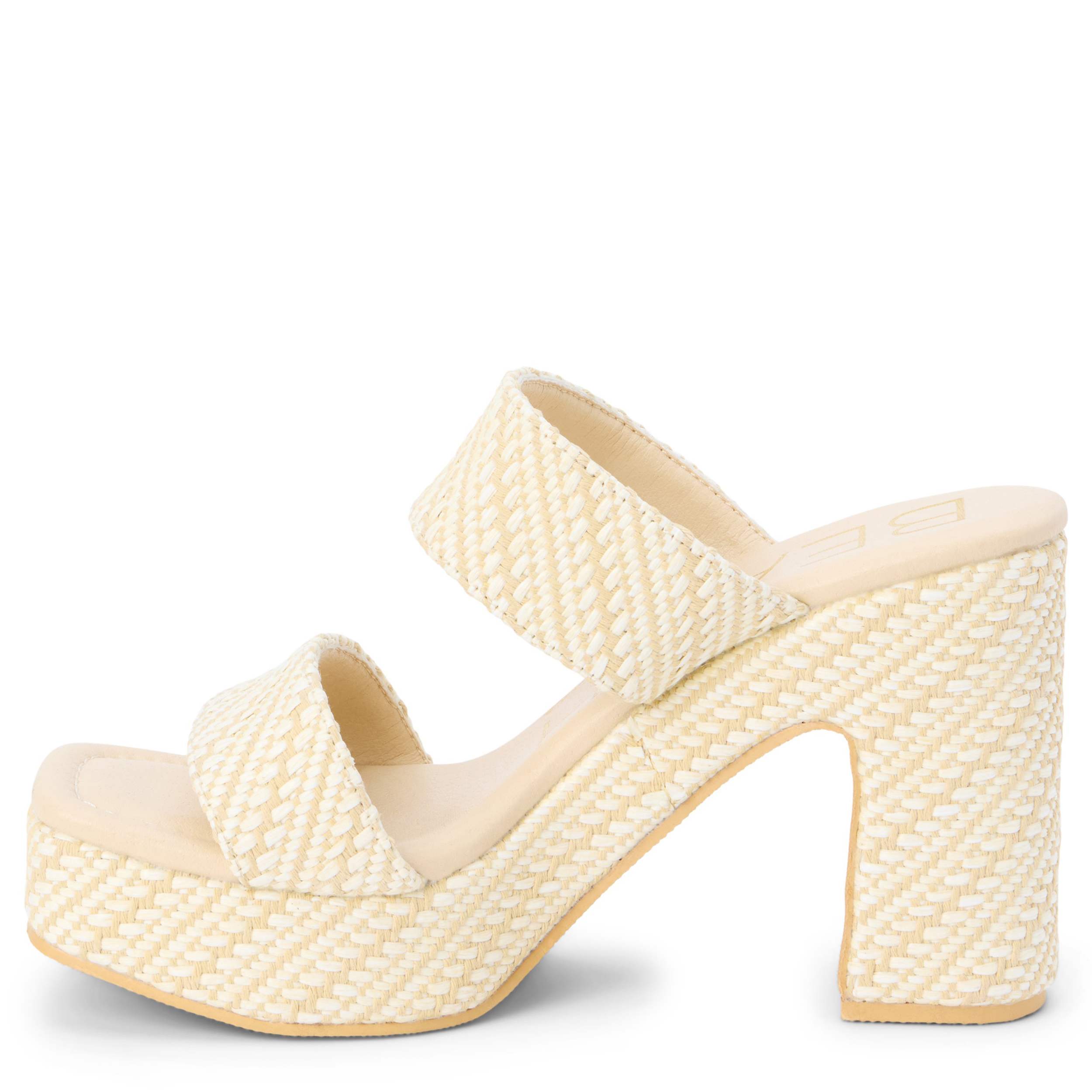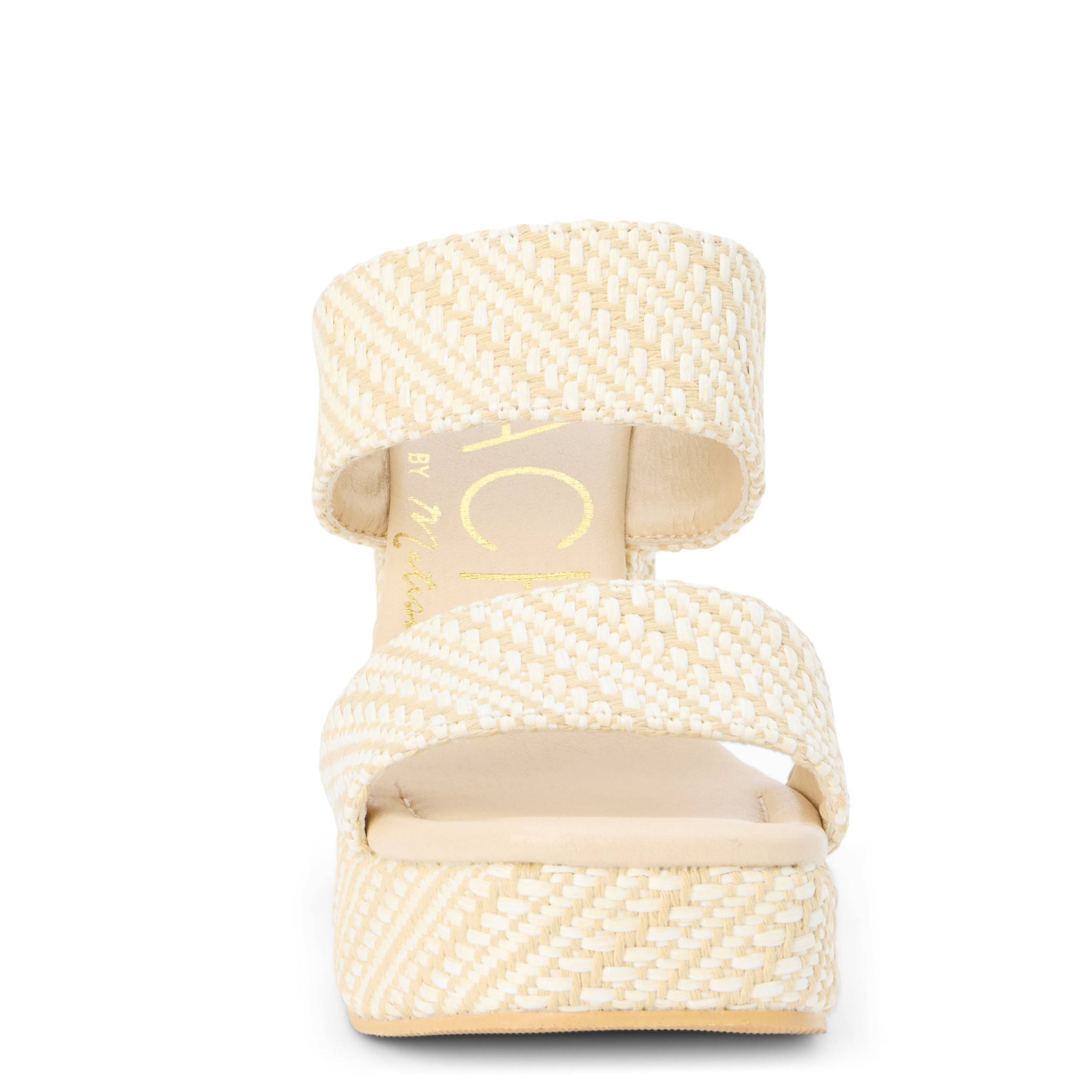 Gleam in the Gem women's sandal from Beach by Matisse. Featuring a raffia upper that adds texture, this sandal has two wide bands with a faux leather lining for a secure fit. The footbed cushions every step while the platform and block heel add nice lift.