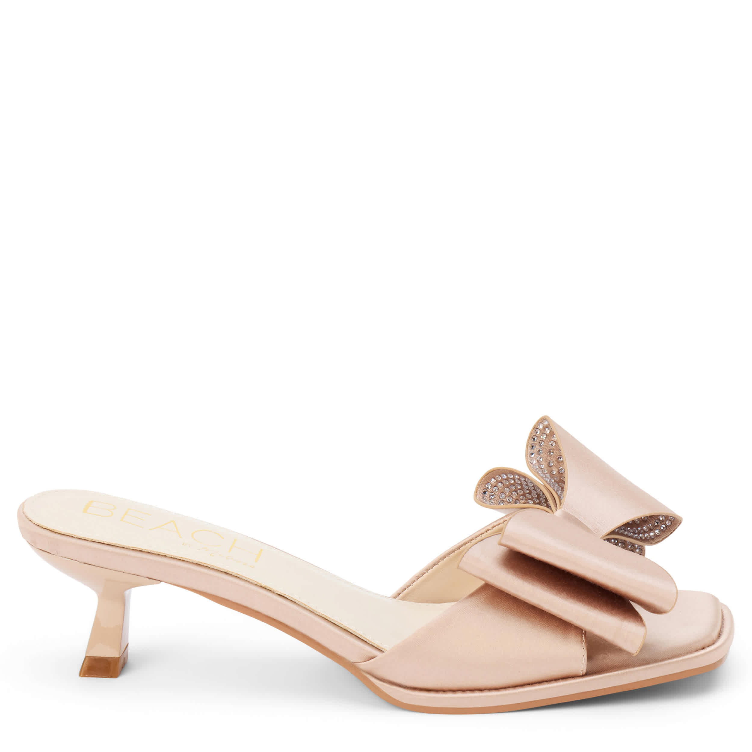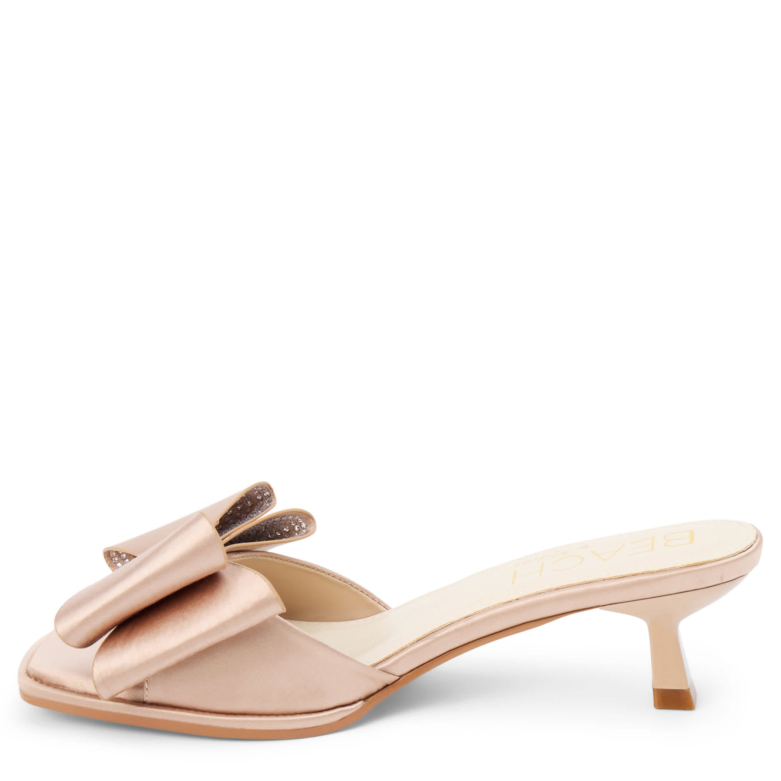 Polished femininity makes for chic style with the Holland sandal from Beach by Matisse. Featuring a satiny fabric upper with a large double bow at the vamp, this square toed slip-on can fit any occasion. The insole soothes, while the kitten heel keeps you lifted.