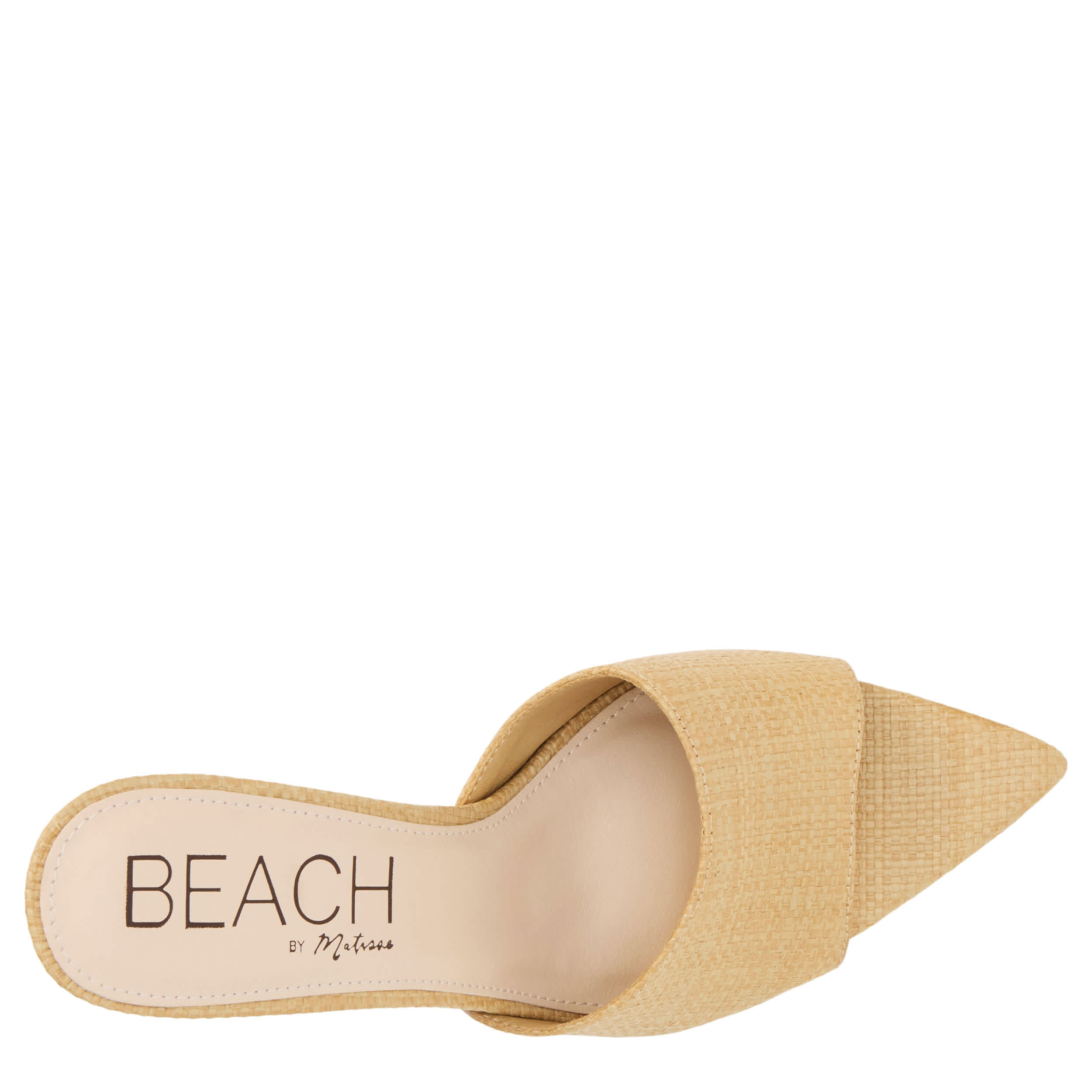 Tall and airy in the Jupiter sandal from Beach by Matisse. Featuring a light raffia upper with a pointed toe, this structured shoe exudes confidence. The insole soothes your foot, while the heel offers nice lift.