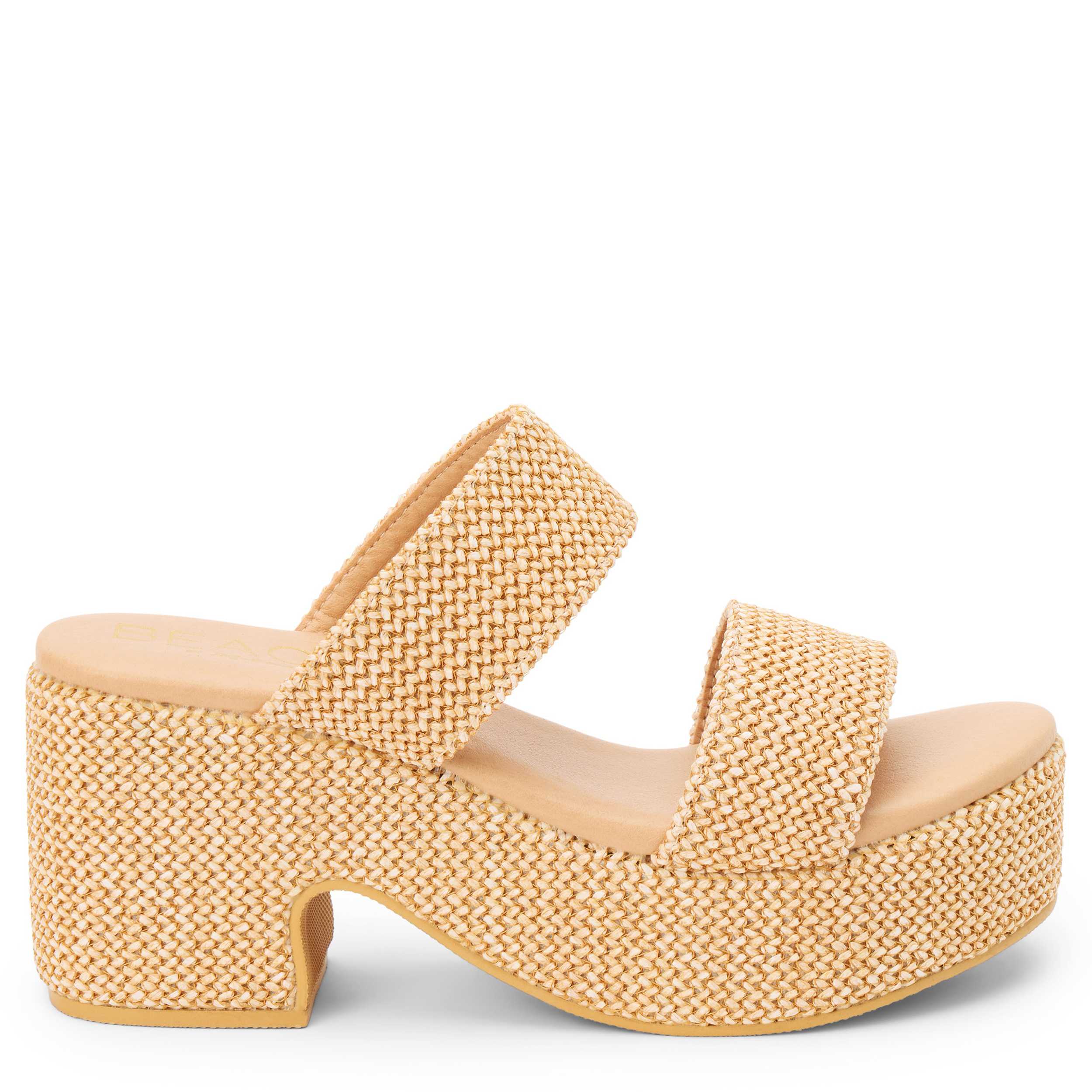 Feel the Cali vibes in the Ocean Ave women's platform sandal from Beach by Matisse. Featuring a raffia upper that adds texture alongside the bold color, this sandal has two wide bands with a faux leather lining for a secure fit. The footbed cushions every step while the platform and block heel add nice lift.