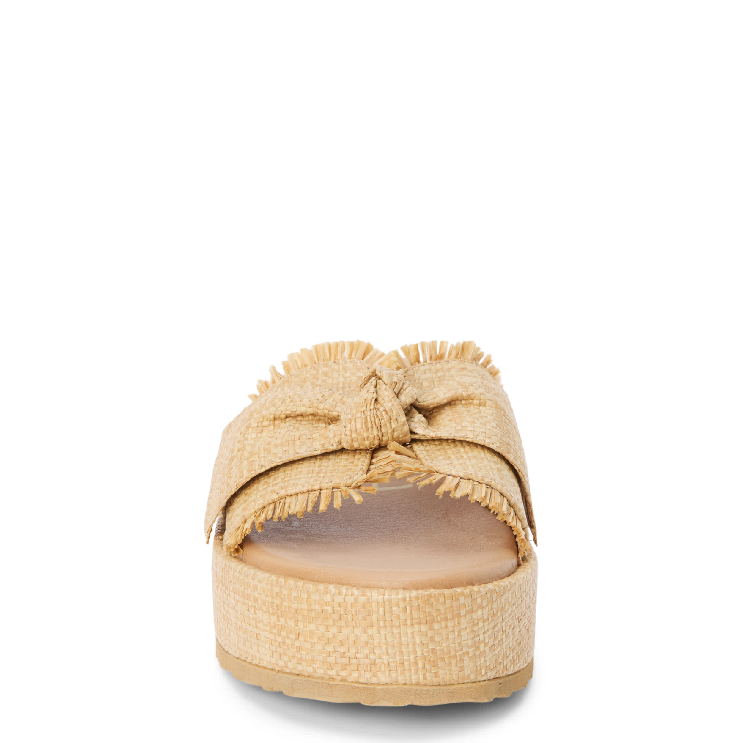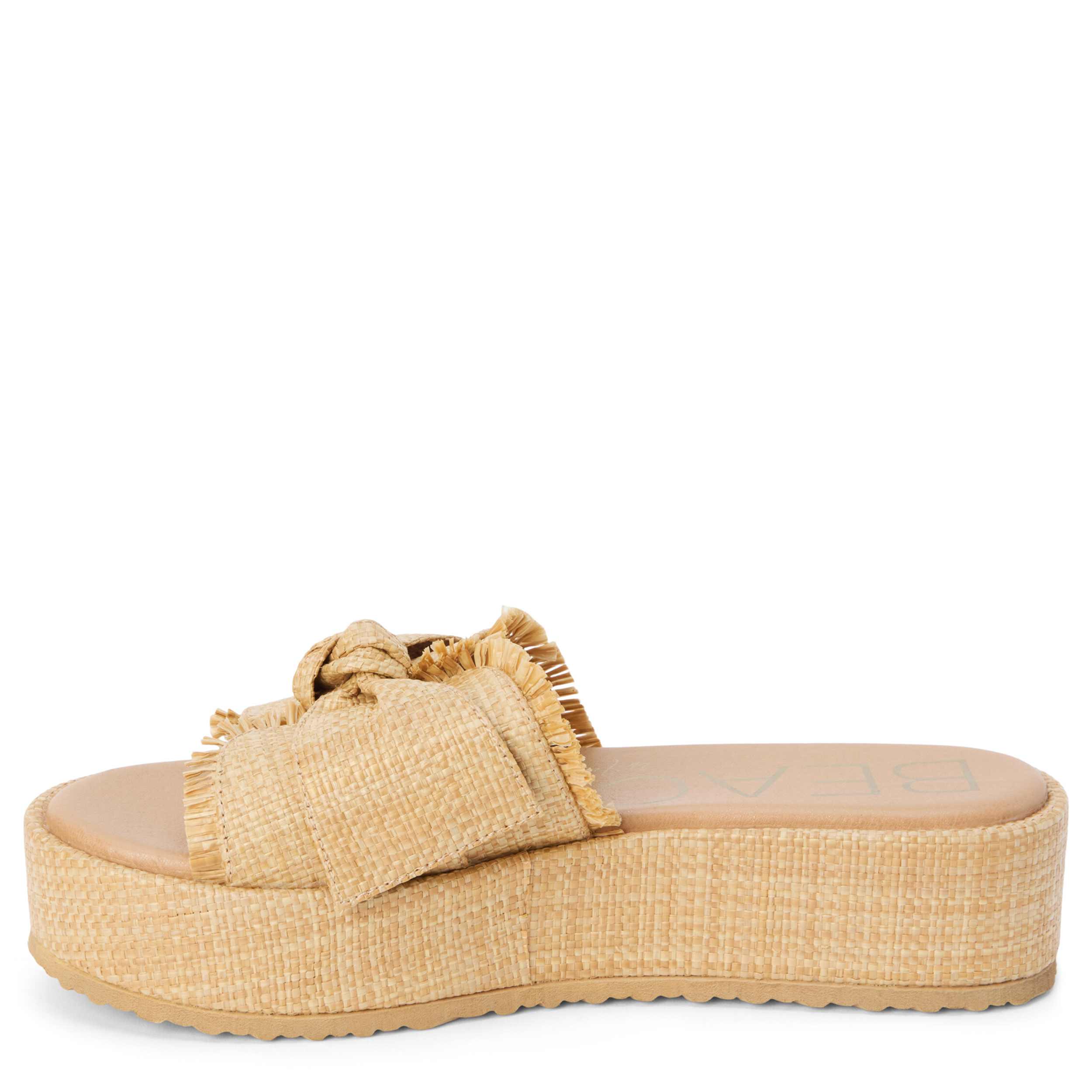 Say hello to sunshine in the Sundra platform slide from Beach by Matisse. Featuring a raffia upper with frayed accents and a knotted detail, this shoe is perfect for vacation. The cushioned footbed offers all-day comfort, while the platform sole offers the perfect lift.