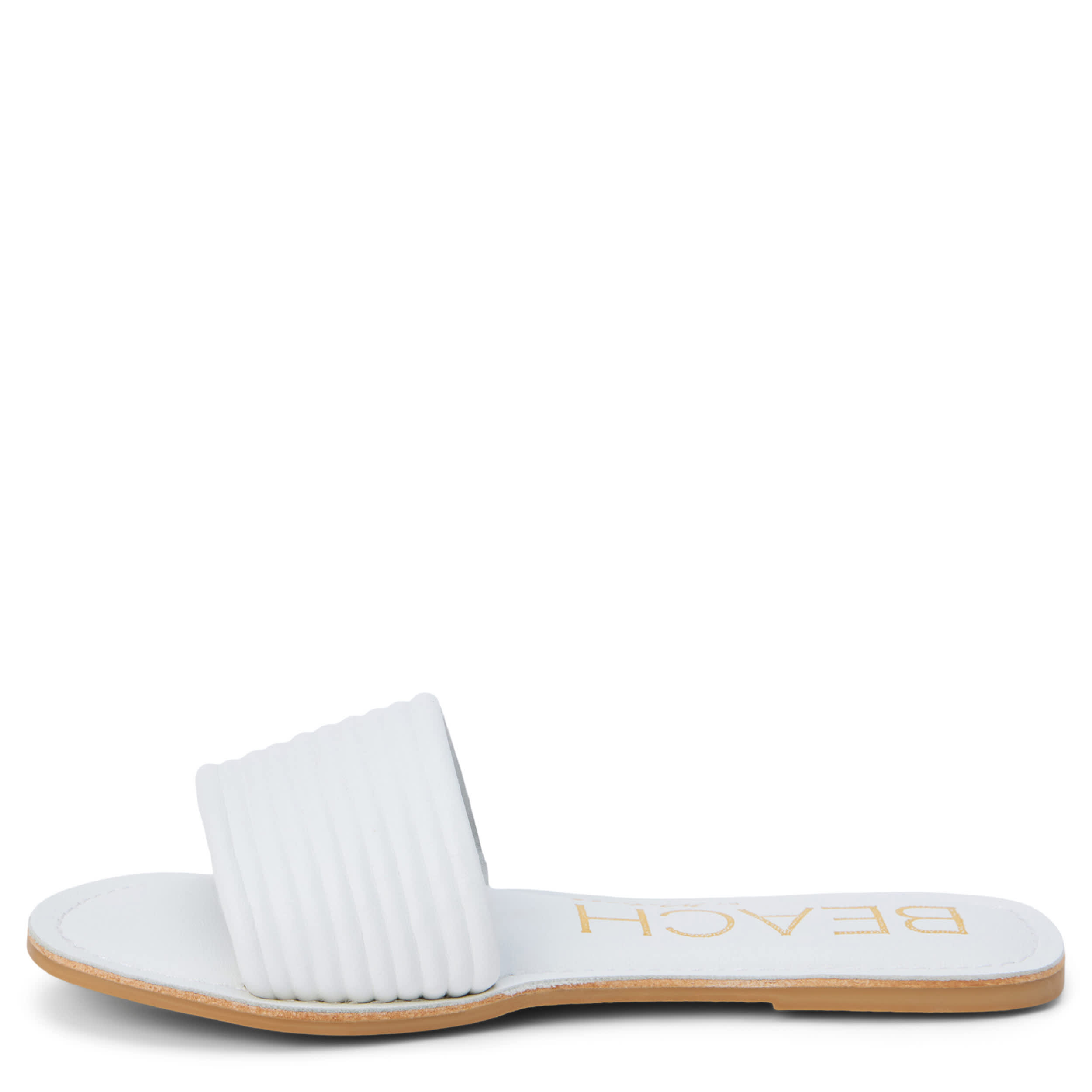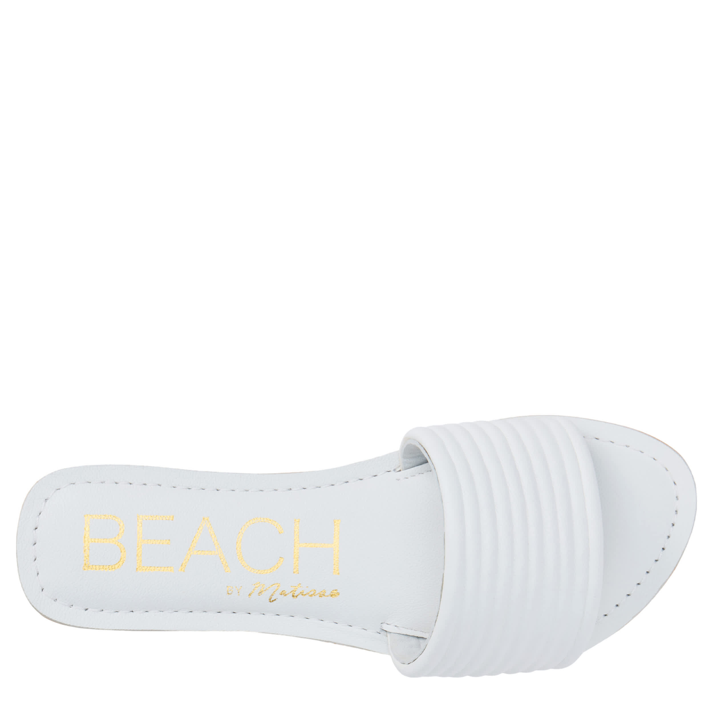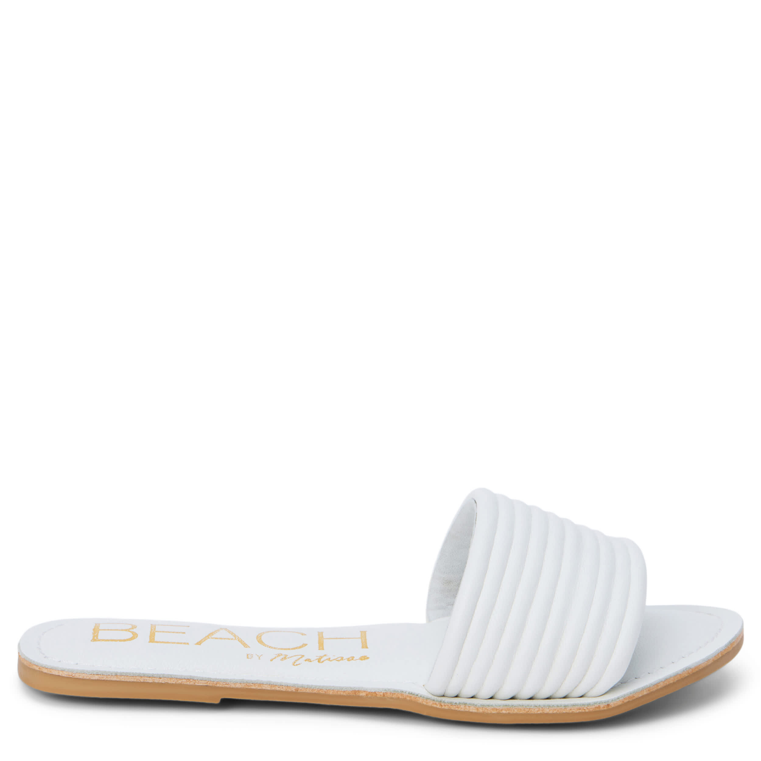 Slip on a versatile style with the Troller flat sandal from Beach by Matisse. This convenient sandal boasts a leather upper in a wavy quilted bandage design. The insole keeps you foot comfy, while the outsole gives traction for all your daily plans.
