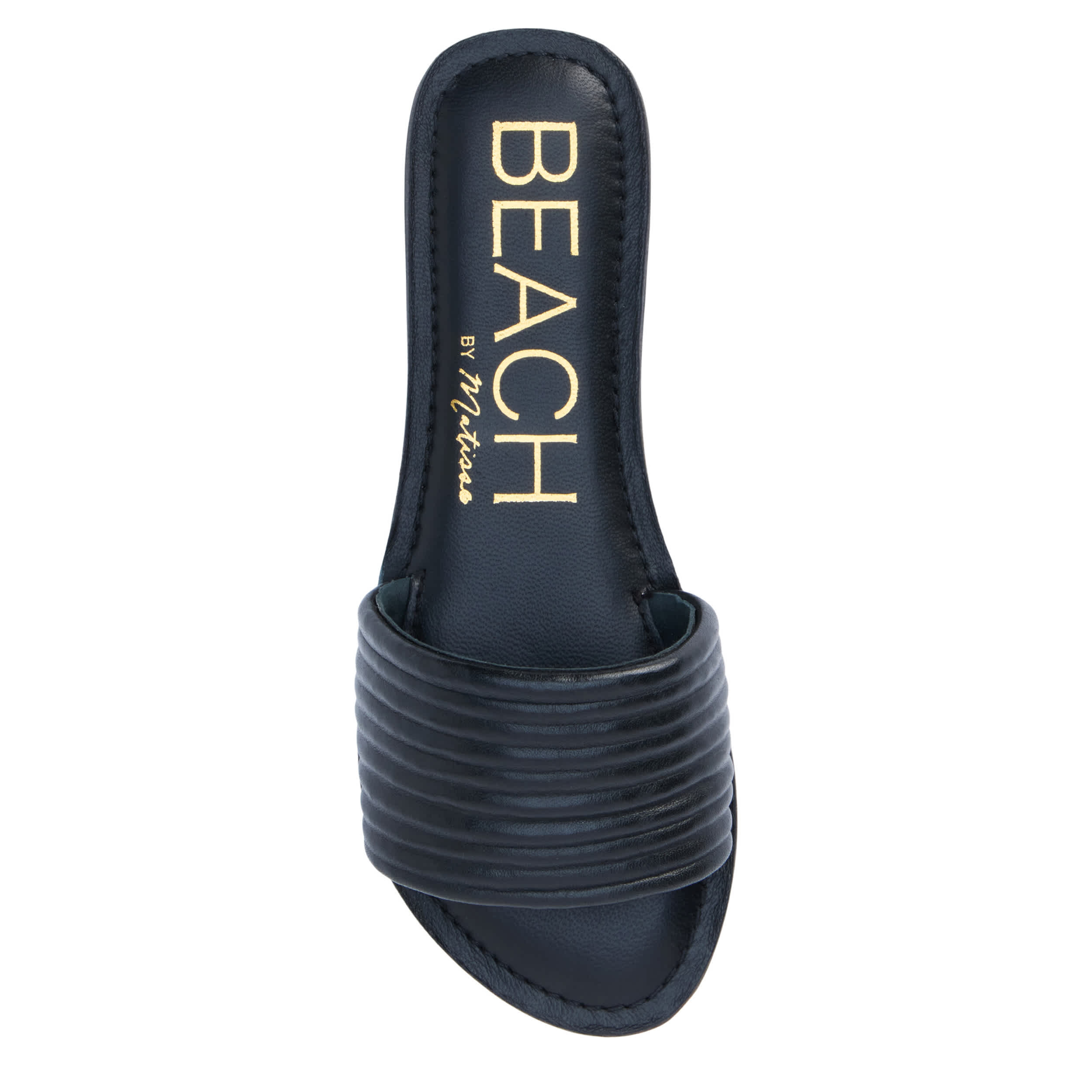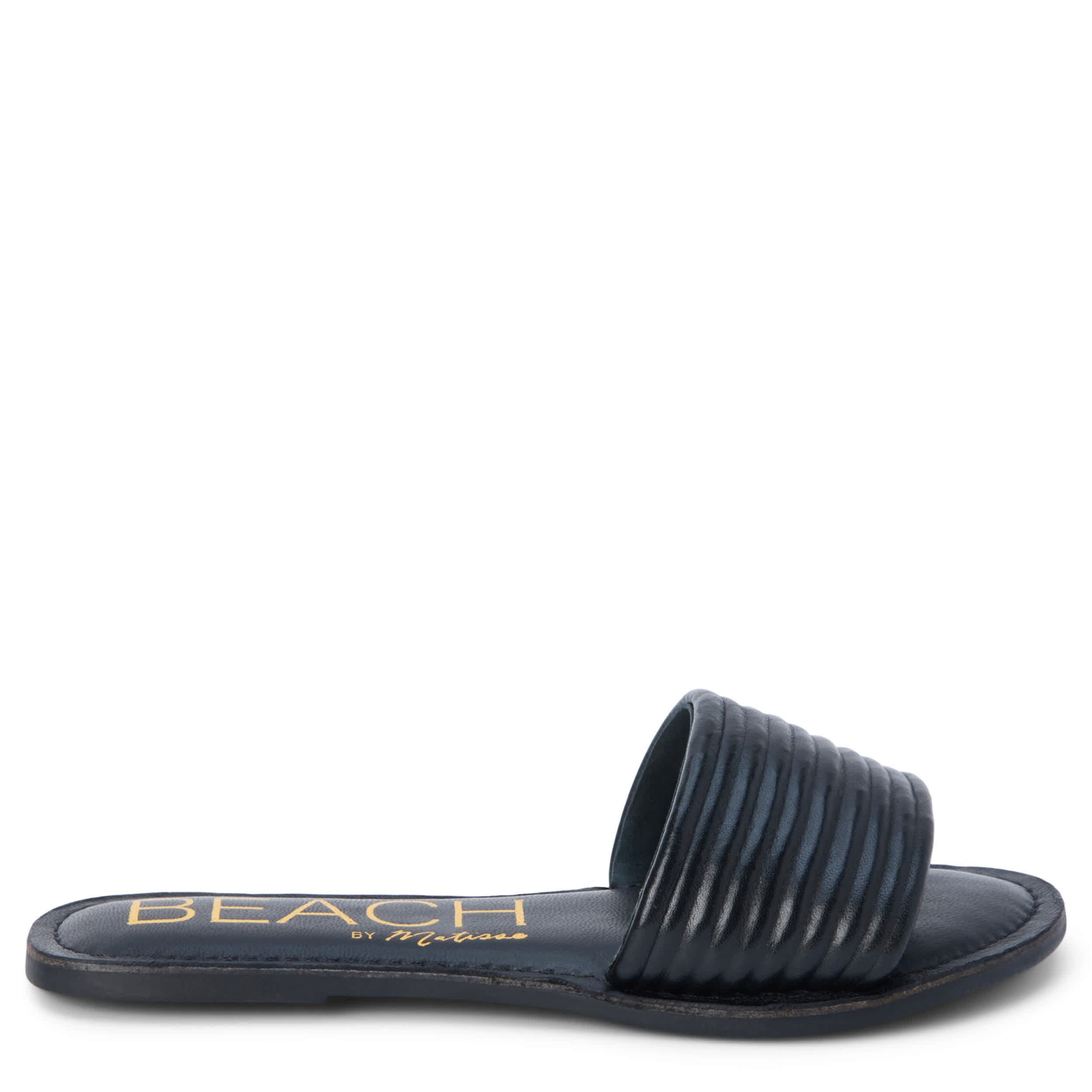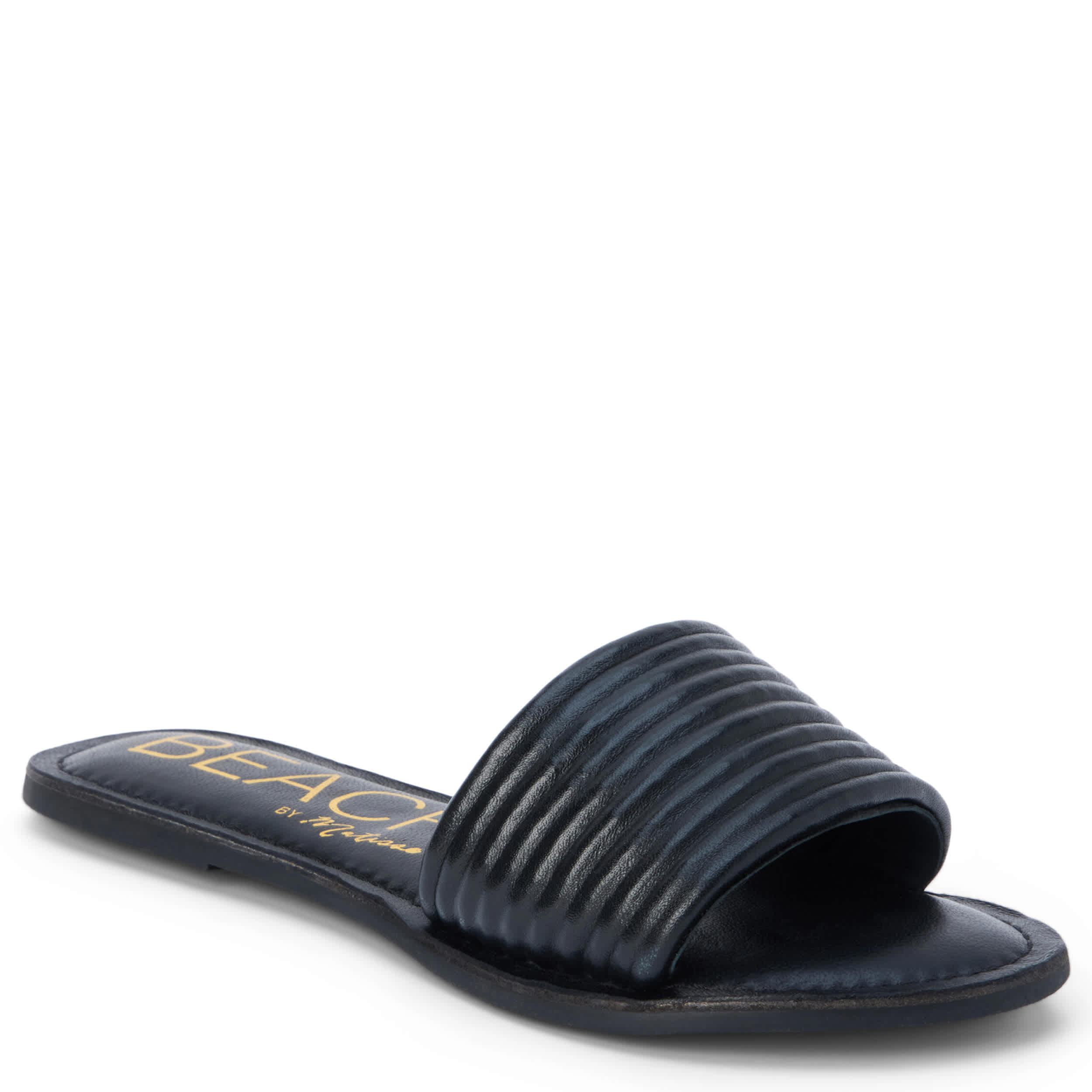 Slip on a versatile style with the Troller flat sandal from Beach by Matisse. This convenient sandal boasts a leather upper in a wavy quilted bandage design. The insole keeps you foot comfy, while the outsole gives traction for all your daily plans.