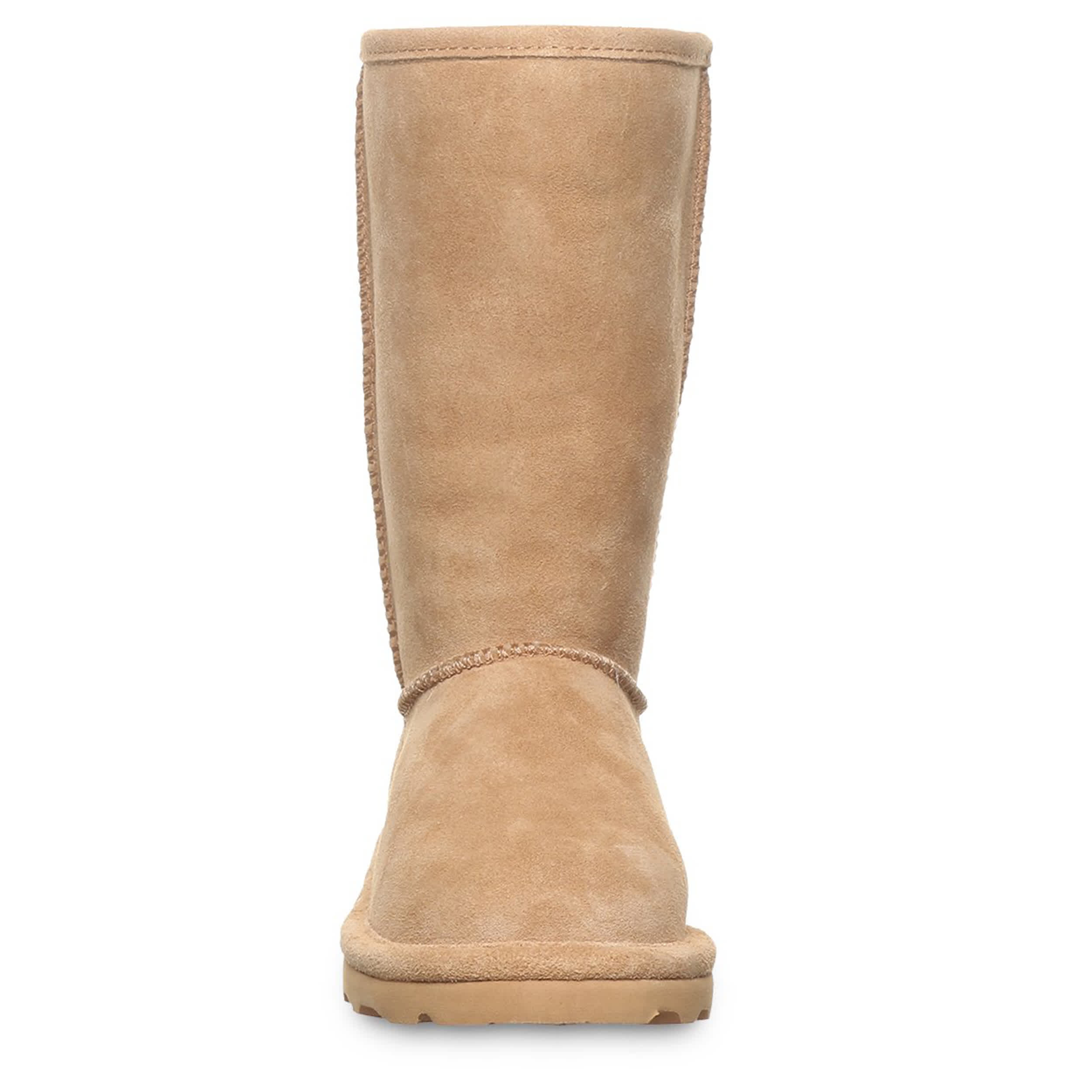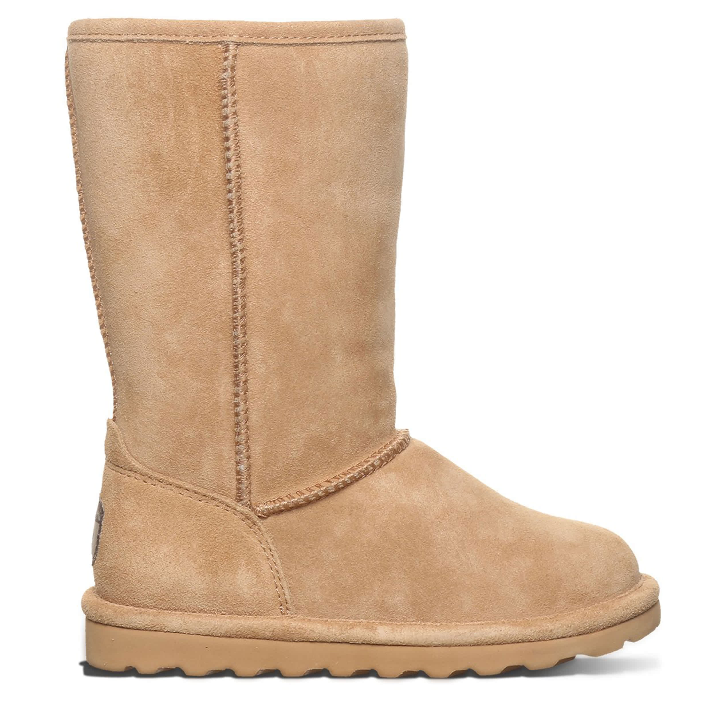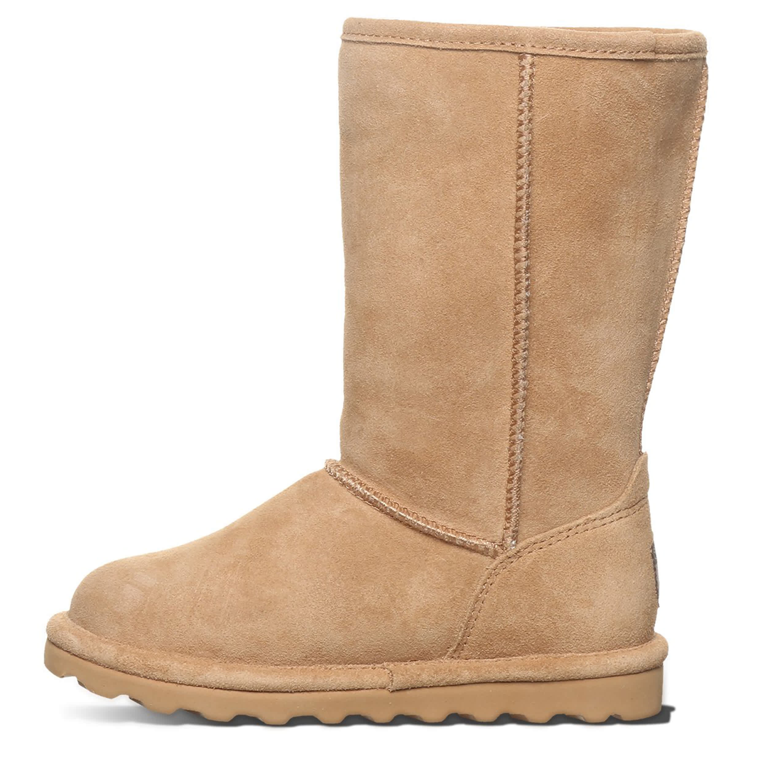 Help her stay warm and look amazing at the same time with this Elle Tall Youth girls' fur boot from Bearpaw. The suede upper has a classic, clean style that pairs with any casual outfit. The wool lining will keep her foot cozy while she braves the cold weather in style.
