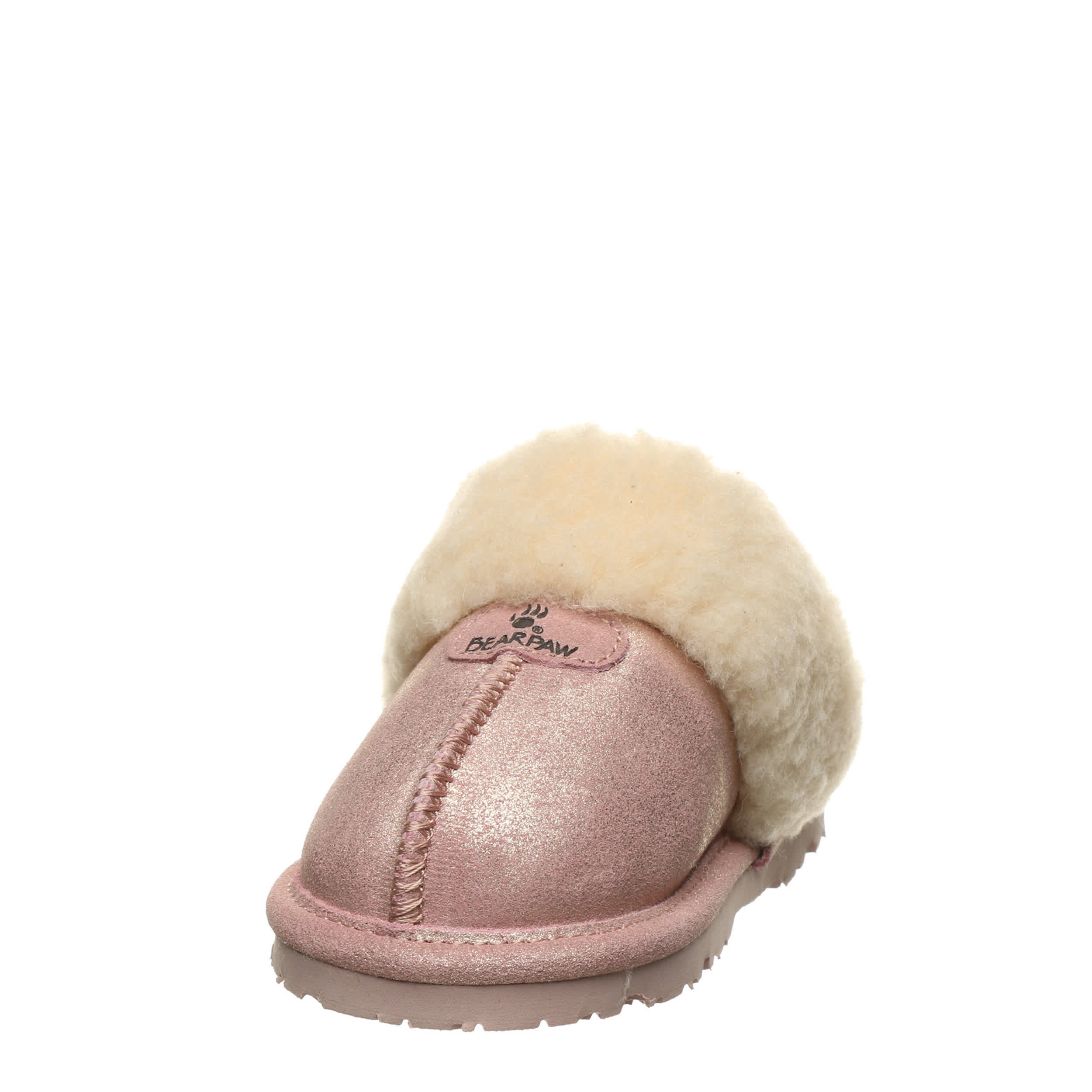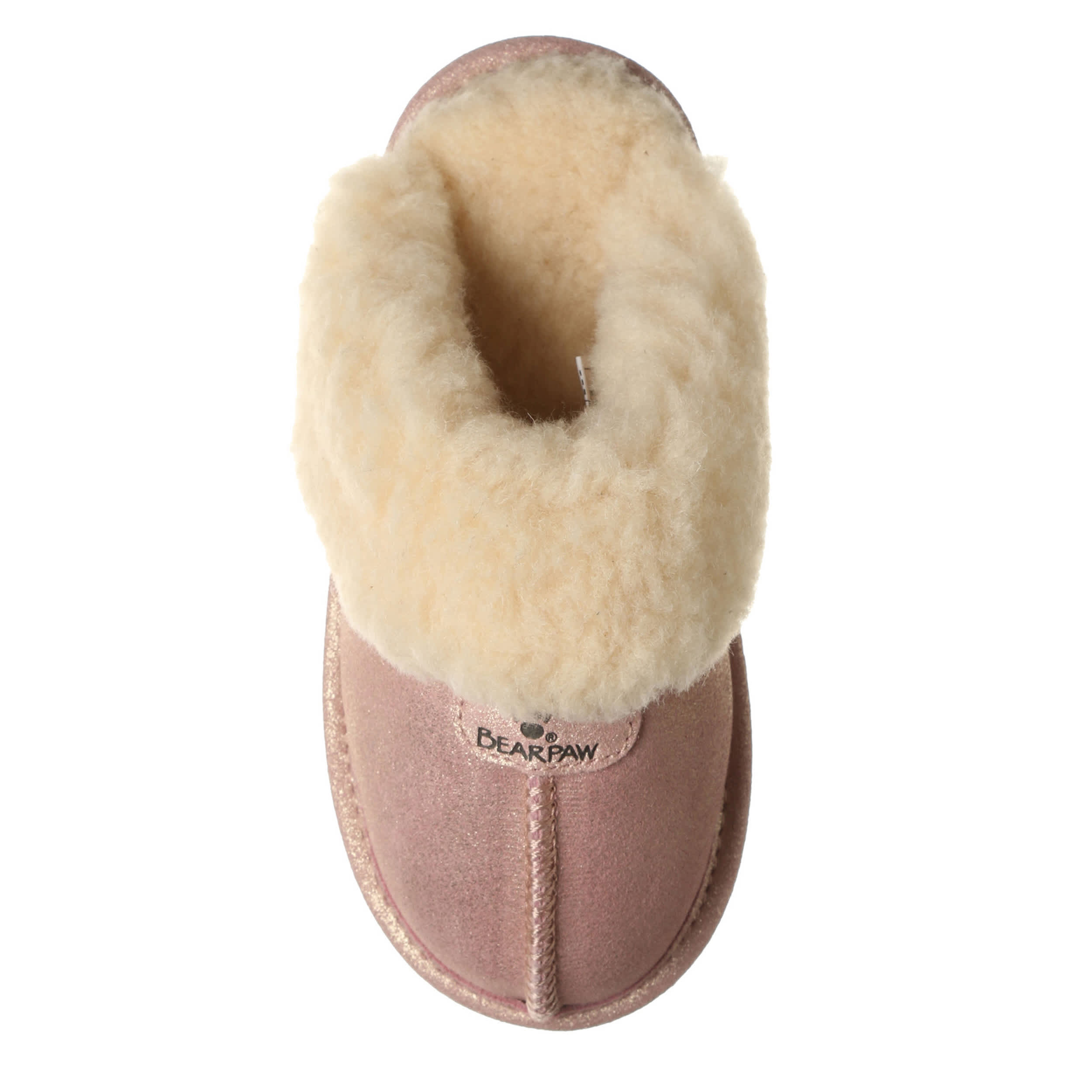 She'll instantly feel the softness of the Loki II youth girls' slipper from Bearpaw. The sheepskin lining regulates body temperature to keep feet warm while surrounding them in plushness. Its durable outsole is made from foam-like EVA to cushion each step, whether it's in cozy quarters or outside wintry weather.