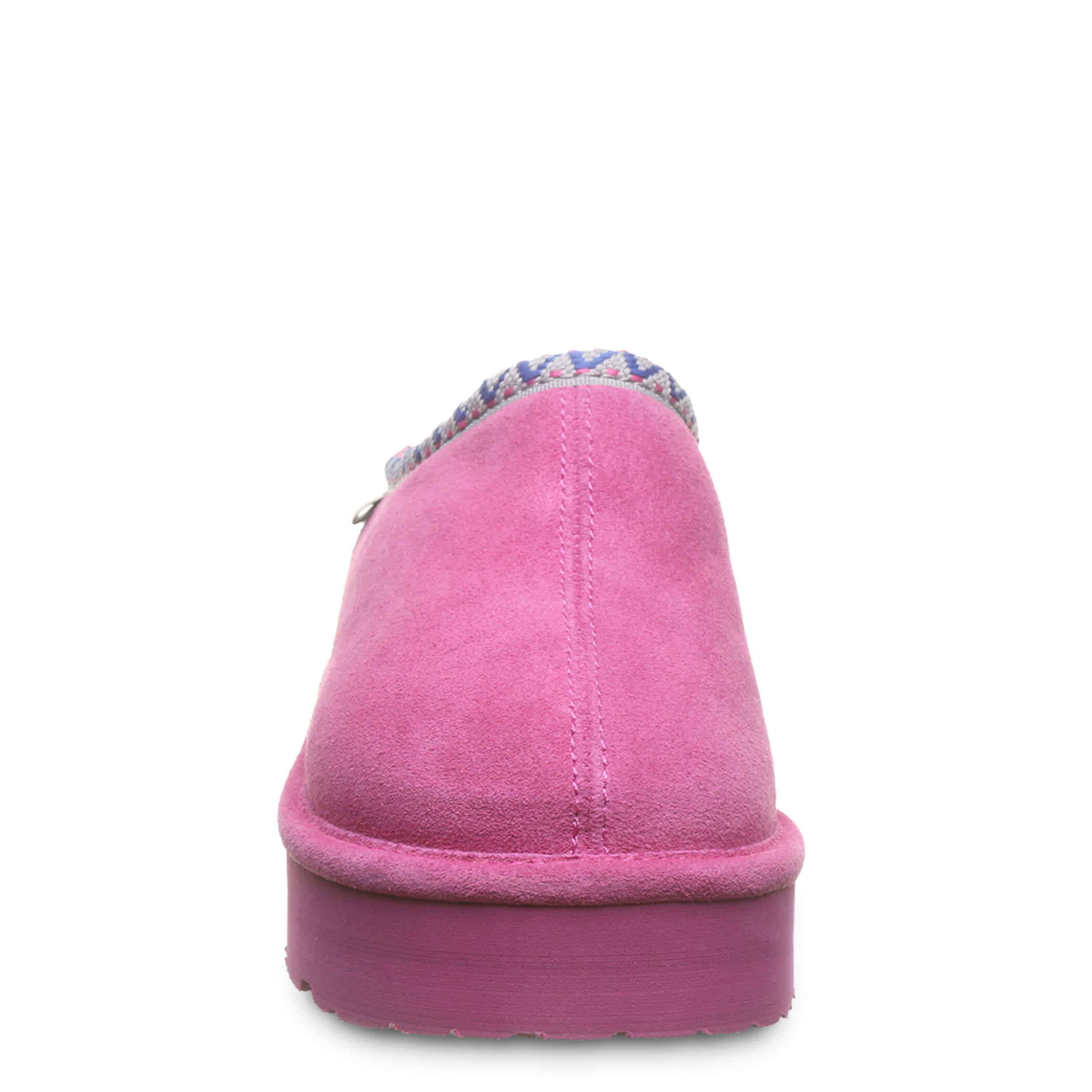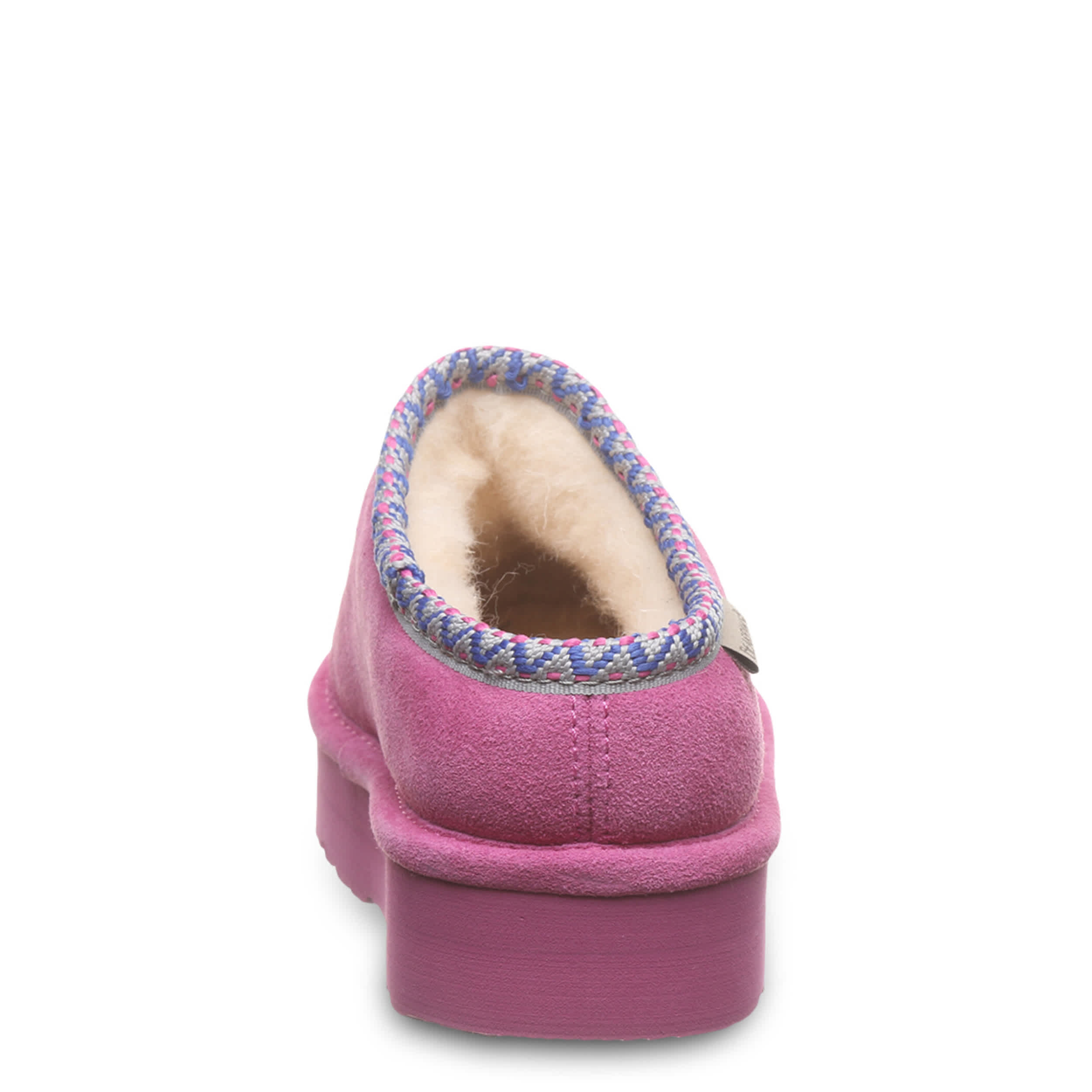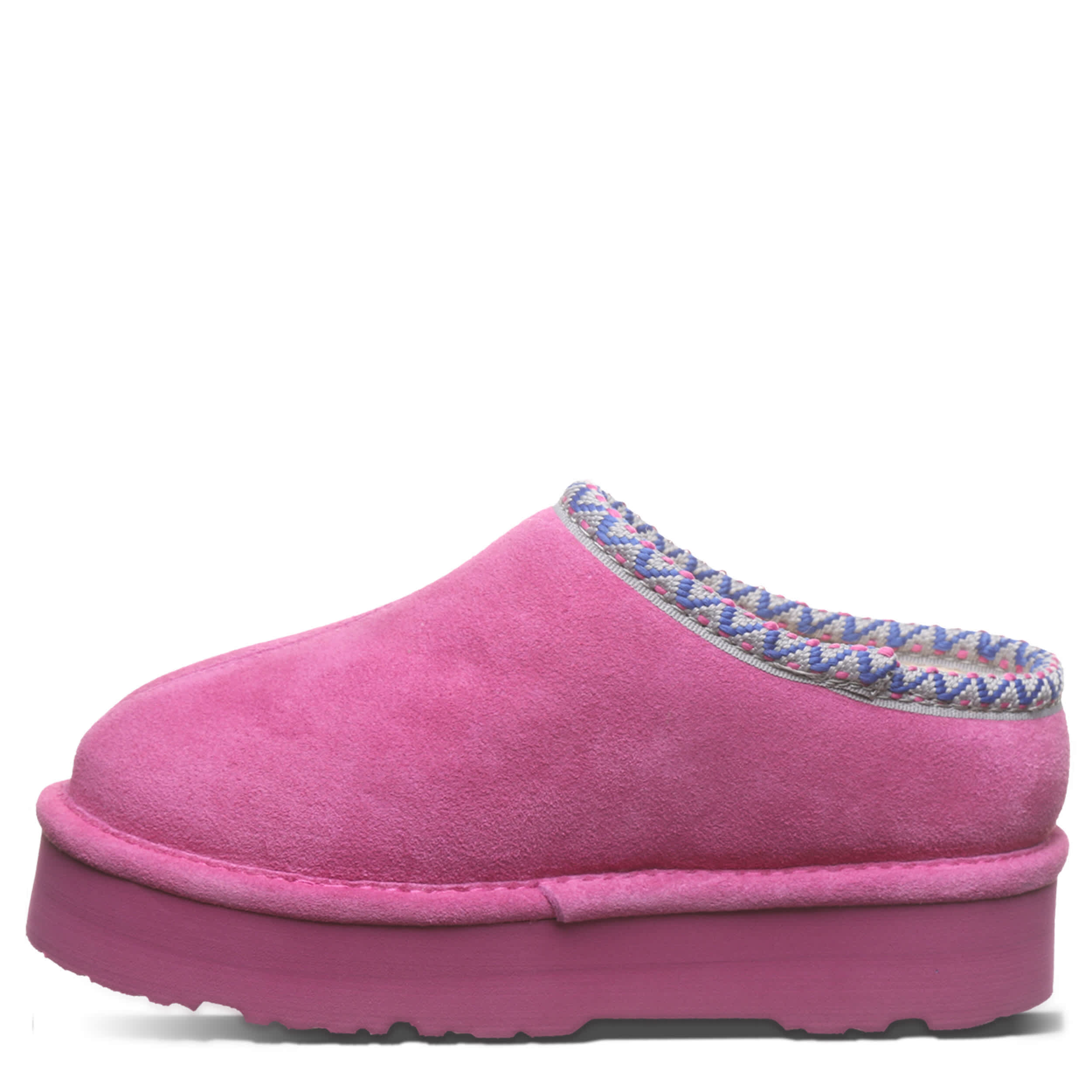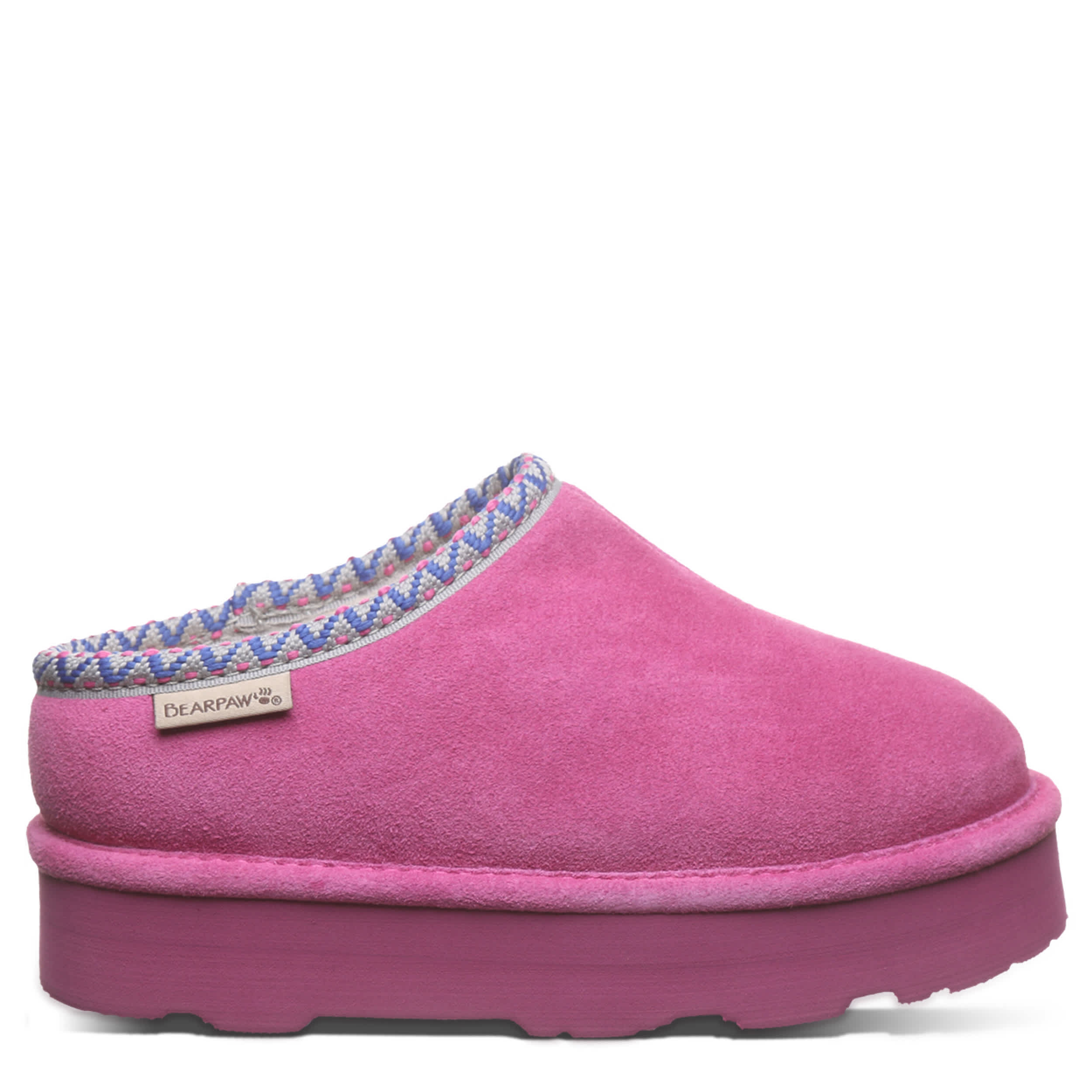 Wherever she needs to go, the Martis Youth platform slipper from Bearpaw won't disappoint. With a suede upper treated with BearCoatâ„¢ Rain and Stain Repellent featuring a warm wool blend lining, this slipper cradles her foot. The removable wool blend footbed comforts, while platform rubber outsole adds height.