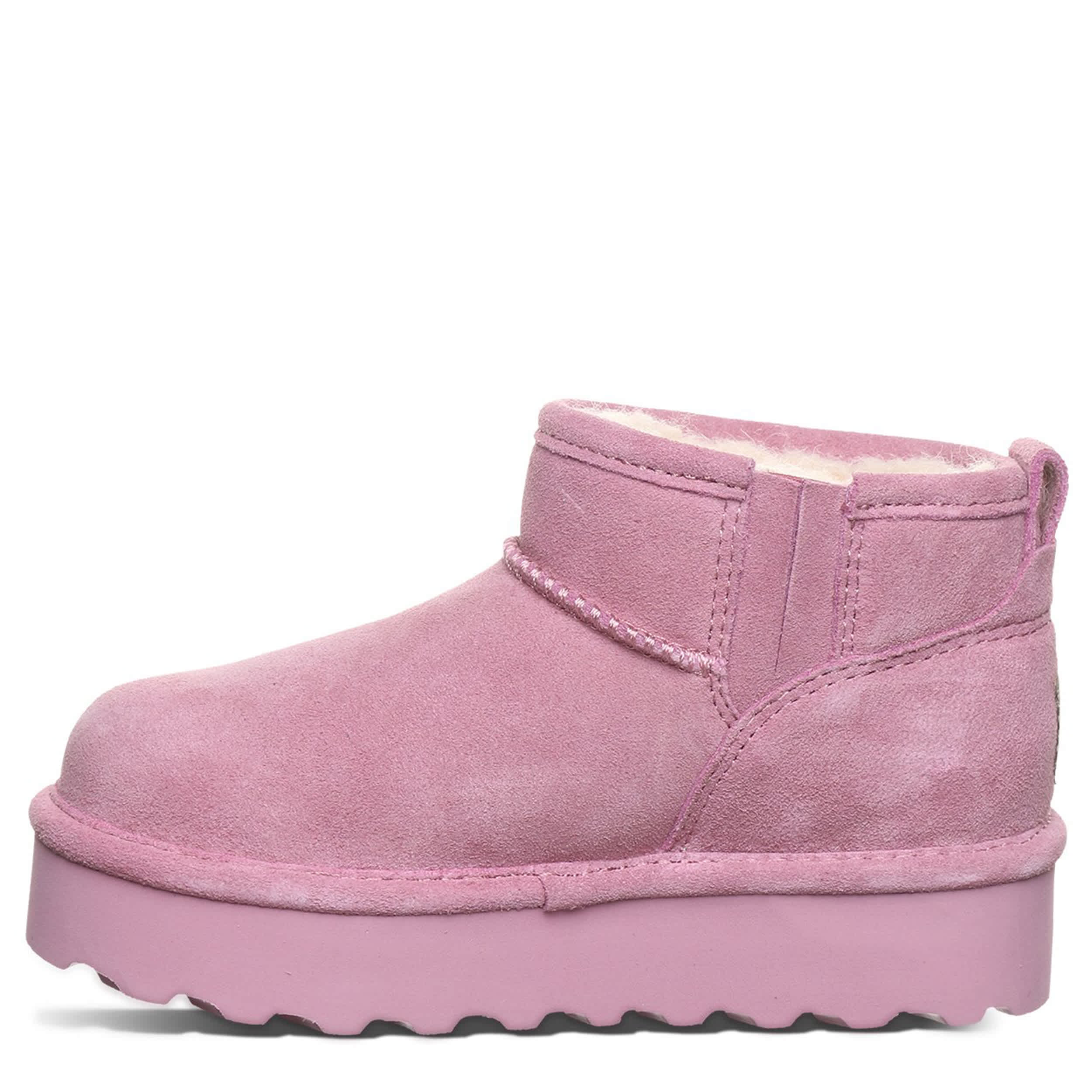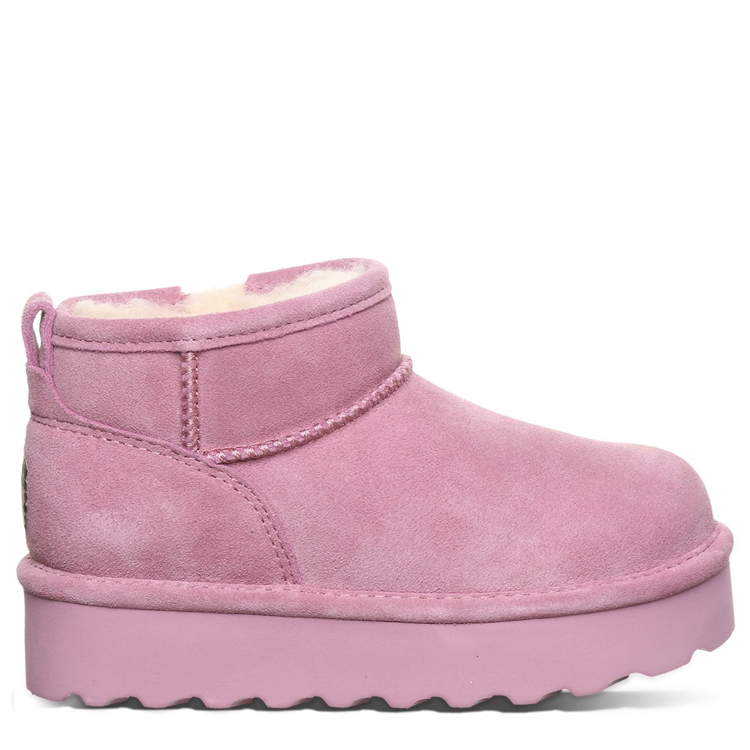 Have fun in the Retro Shorty Youth fur boot by Bearpaw. With a faux suede upper featuring BearCoatâ„¢ Rain and Stain Repellent to protect against the elements, this pull-on bootie is still perfect for cold days out and about. The lining & footbed offer warm cushioning while the platform outsole adds some lift to your unbothered steps.