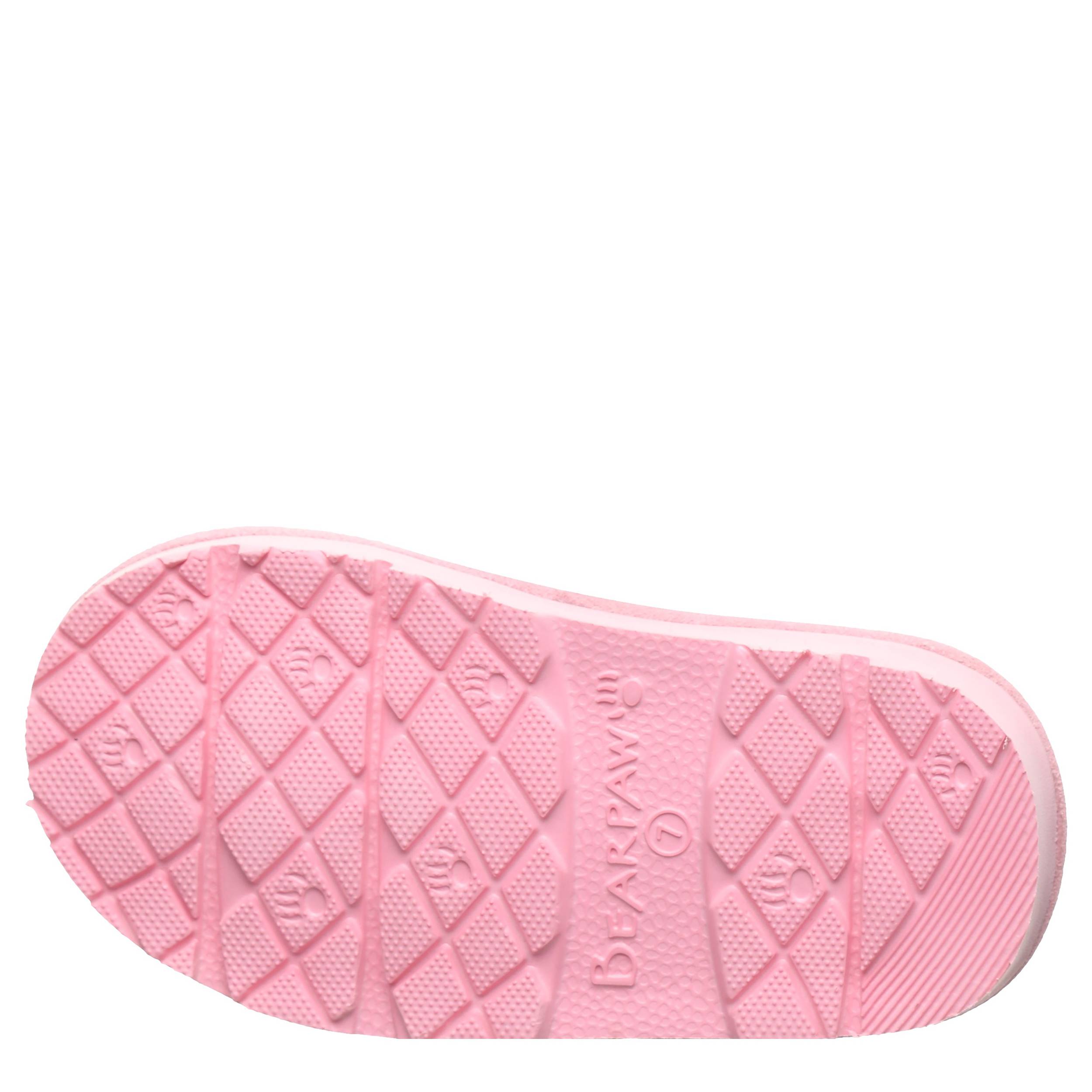 She'll instantly feel the softness of the Loki infant girls' slipper from Bearpaw. The sheepskin lining regulates body temperature to keep little feet warm while surrounding them in plushness. Its durable outsole is made from foam-like EVA to cushion each step, whether it's in cozy quarters or outside wintry weather.