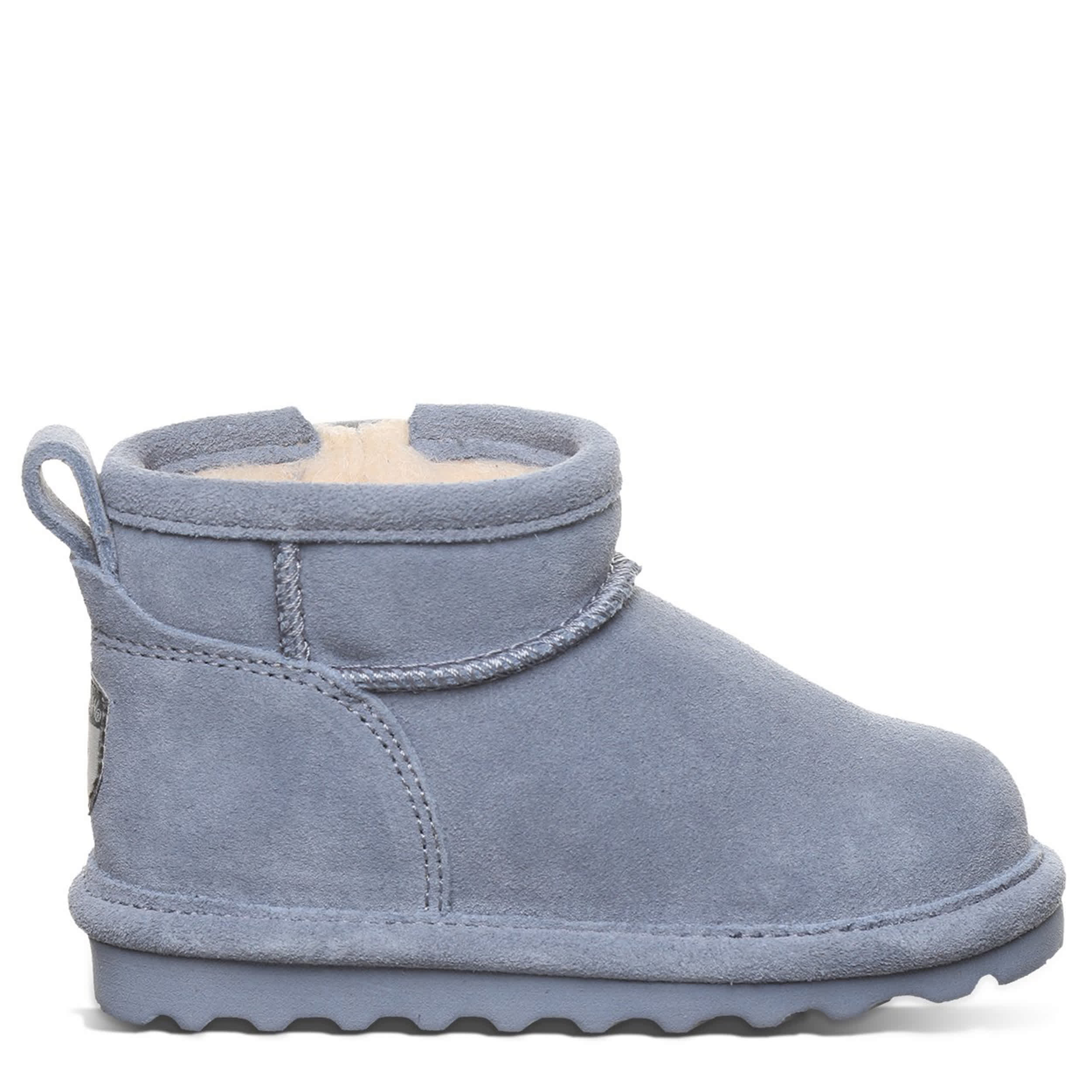 Get warmth up to her ankles in the Shorty infant girls' fur boot by Bearpaw. With a suede upper featuring BearCoat® Rain and Stain repellent to protect against the elements, this pull-on bootie is perfect for cold days out and about. The lining & footbed offer warm cushioning while the outsole adds some traction to her little unbothered steps.