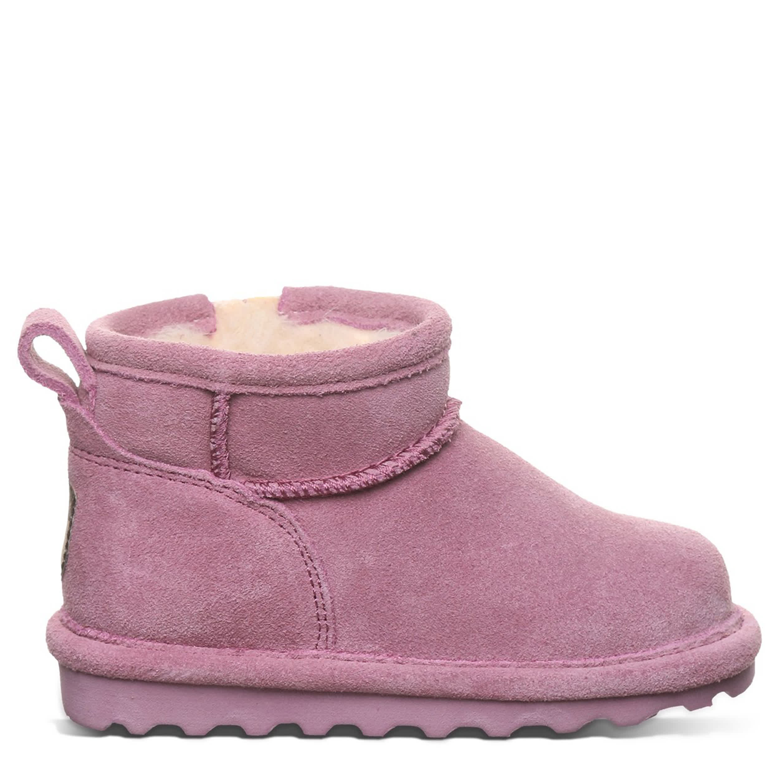 Get warmth up to her ankles in the Shorty infant girls' fur boot by Bearpaw. With a suede upper featuring BearCoat® Rain and Stain repellent to protect against the elements, this pull-on bootie is perfect for cold days out and about. The lining & footbed offer warm cushioning while the outsole adds some traction to her little unbothered steps.