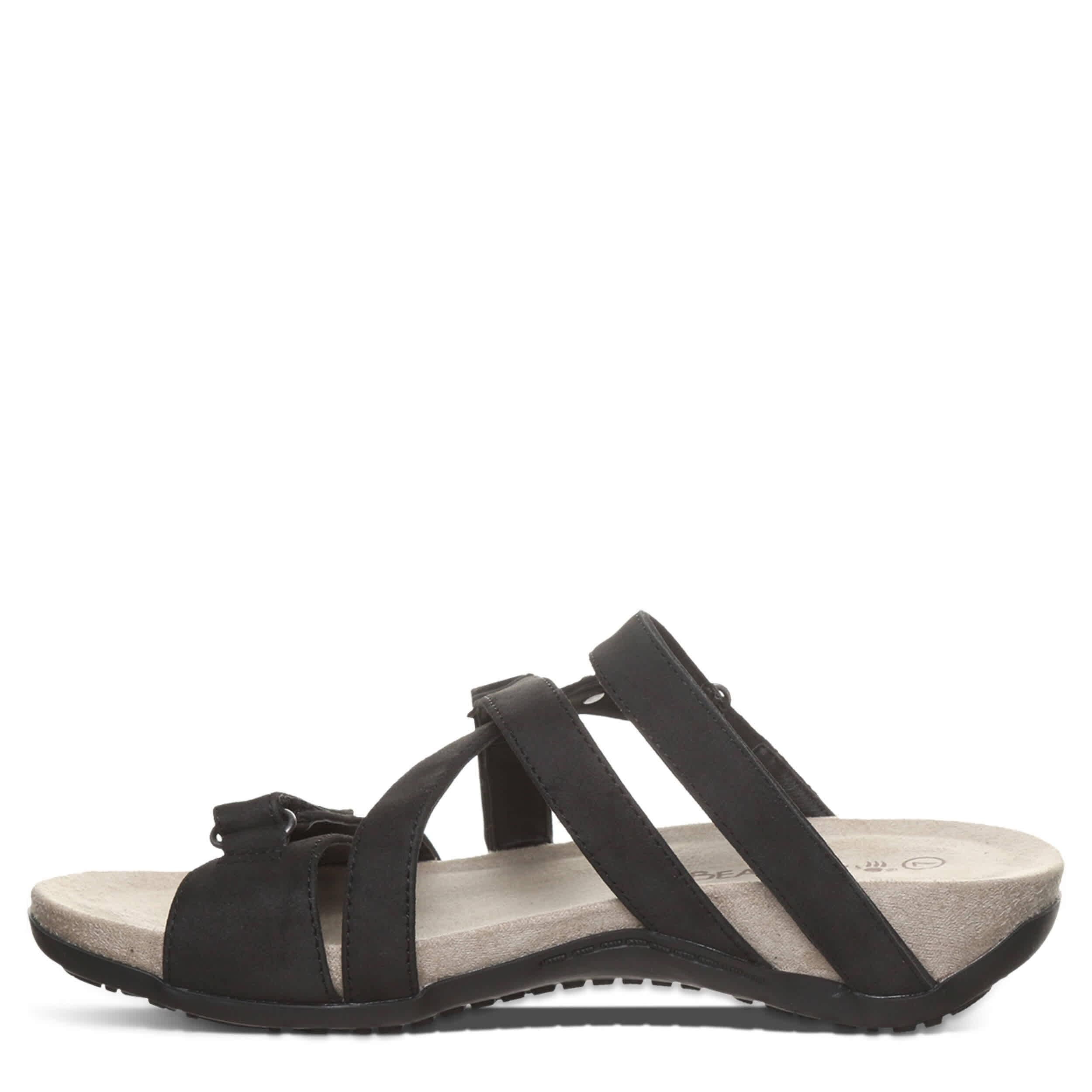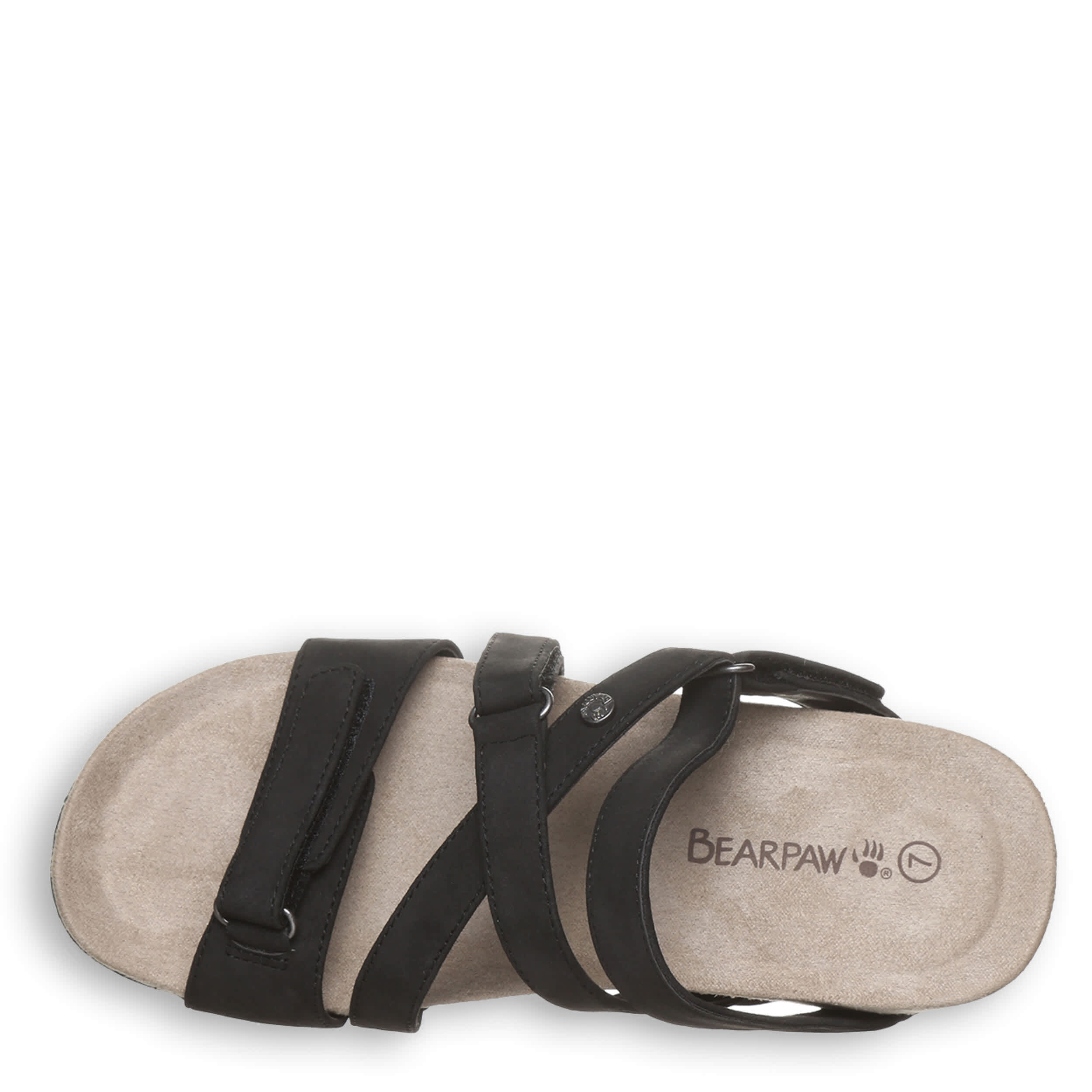 Float or slide, either way you're happy, in the Acacia women's slide sandal from Bearpaw. Featuring a microsuede upper with a faux leather lining, this strappy slide are sure to become an everyday favorite. The EVA footbed cushions every step, while the lightweight outsole offers a durable base.