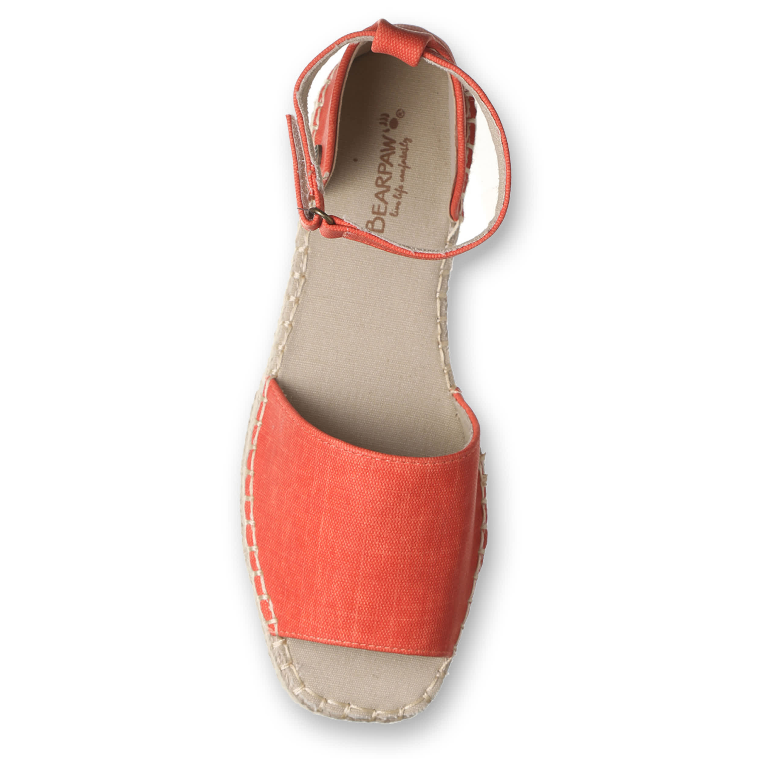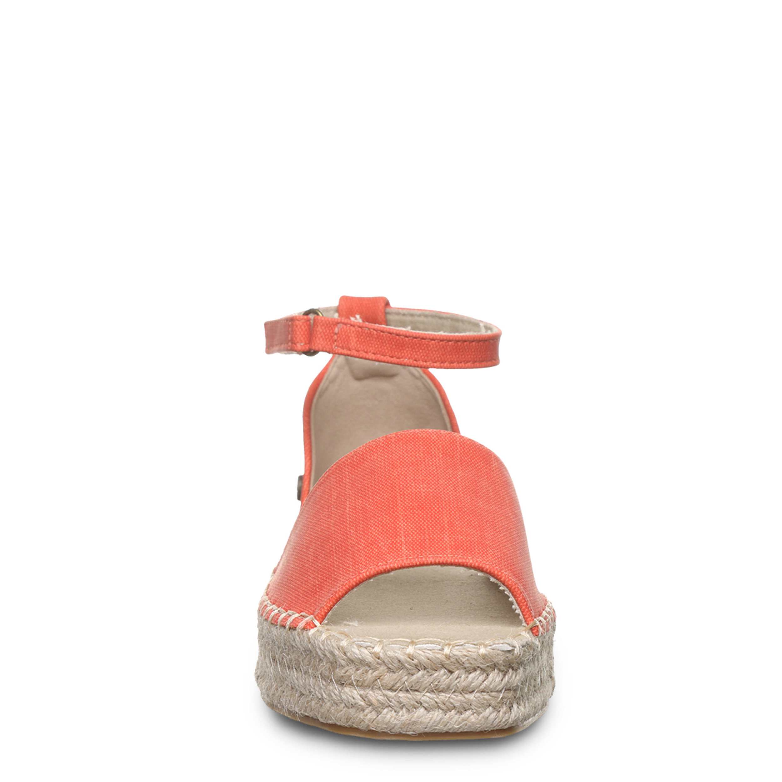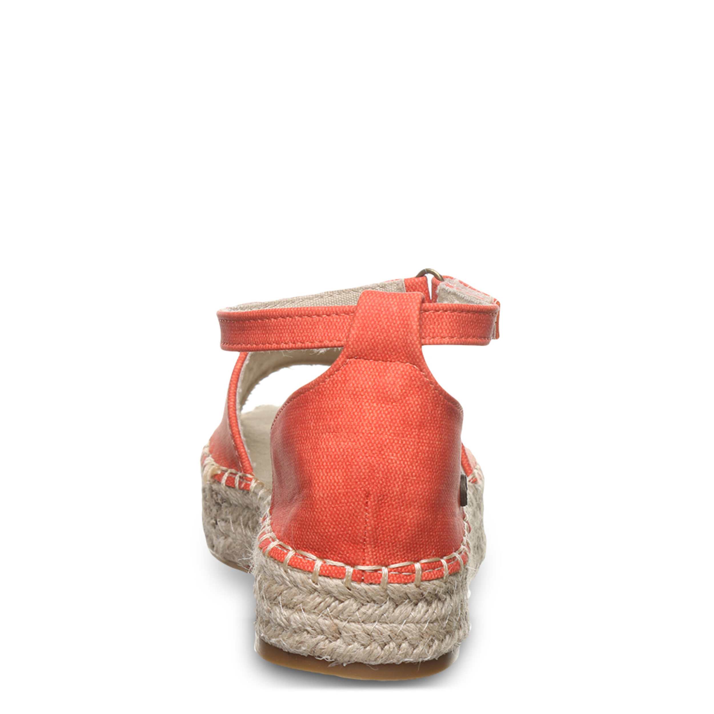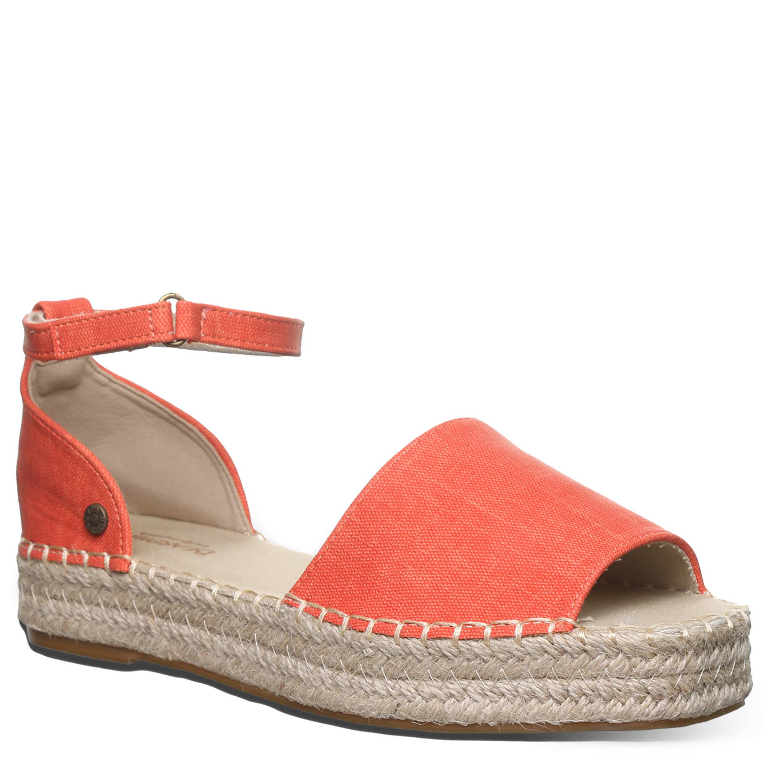 Effortless style is the luxury of the Bearpaw Affogato women's sandal. Featuring a faux leather upper featuring a light canvas lining, this shoe has a jute-wrapped EVA midsole for that espadrille look. The cushioned footbed comforts every step, while the molded outsole adds support and 1¼" of lift.
