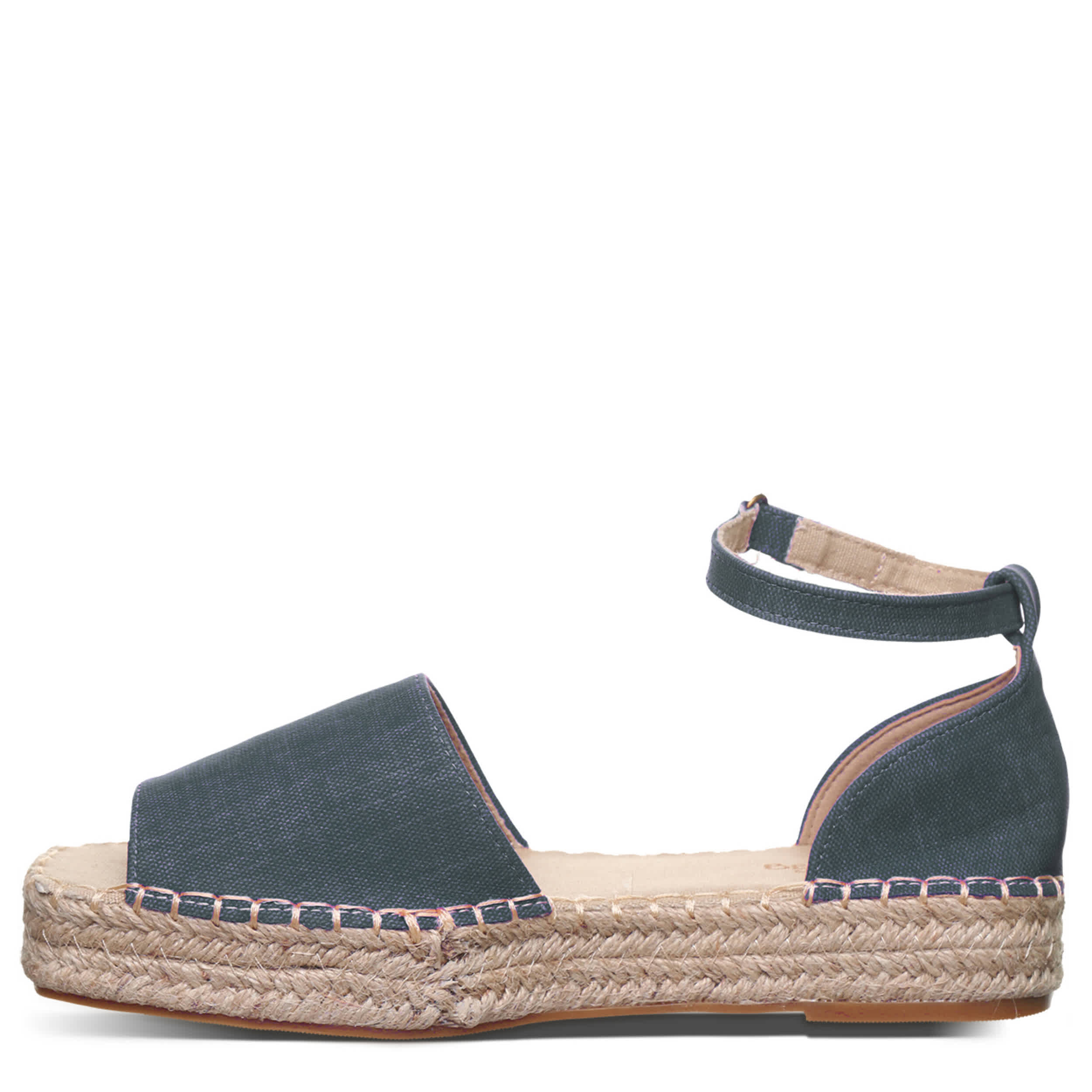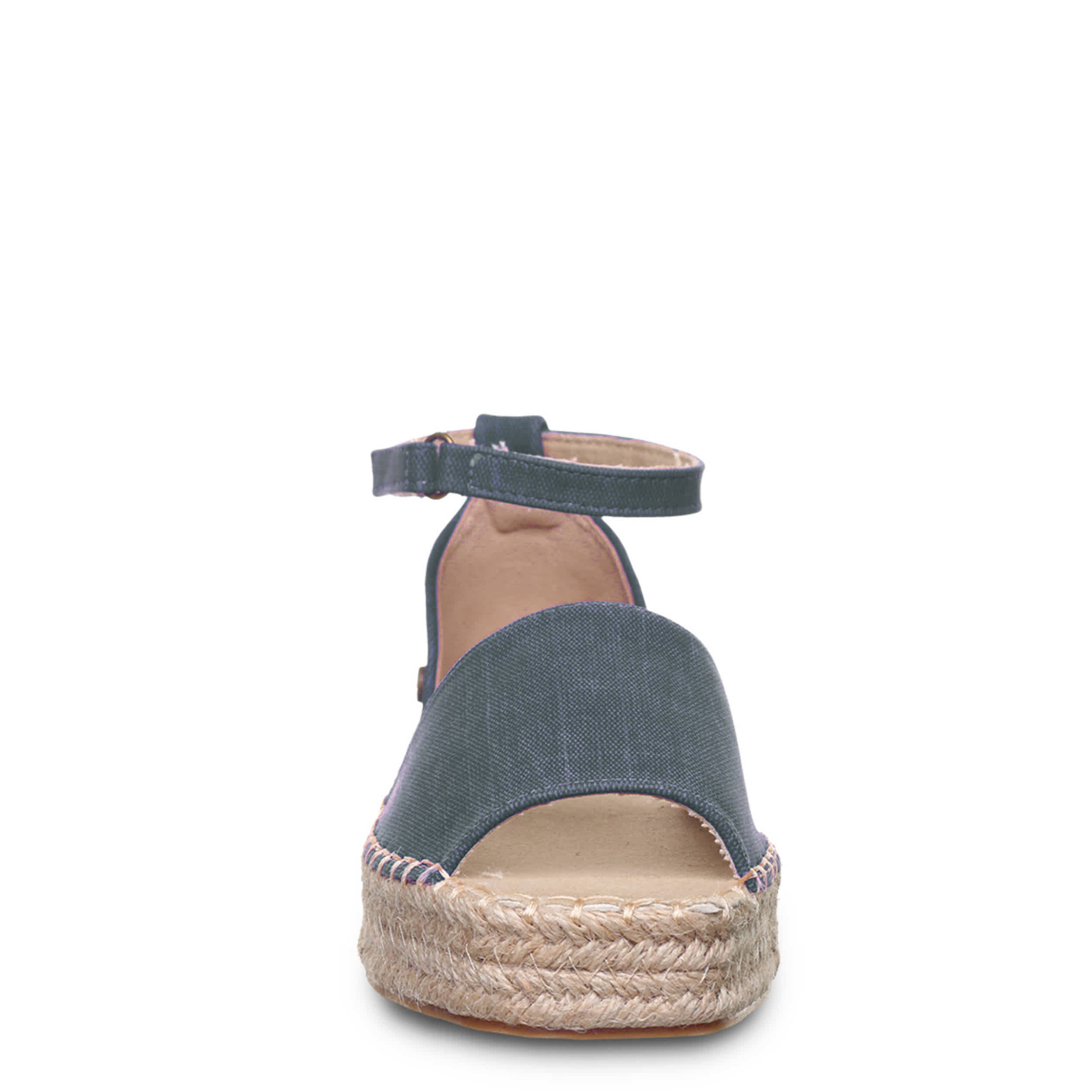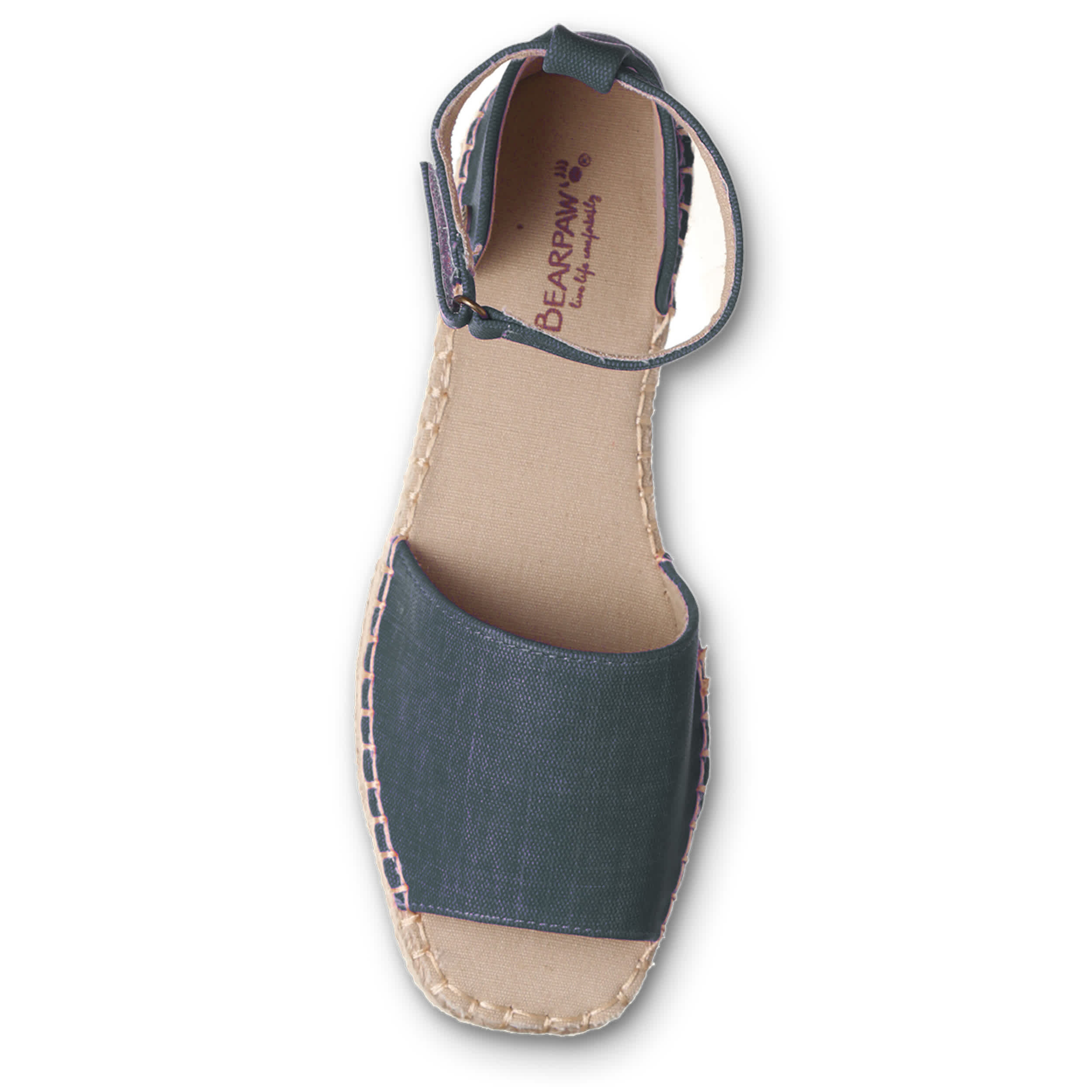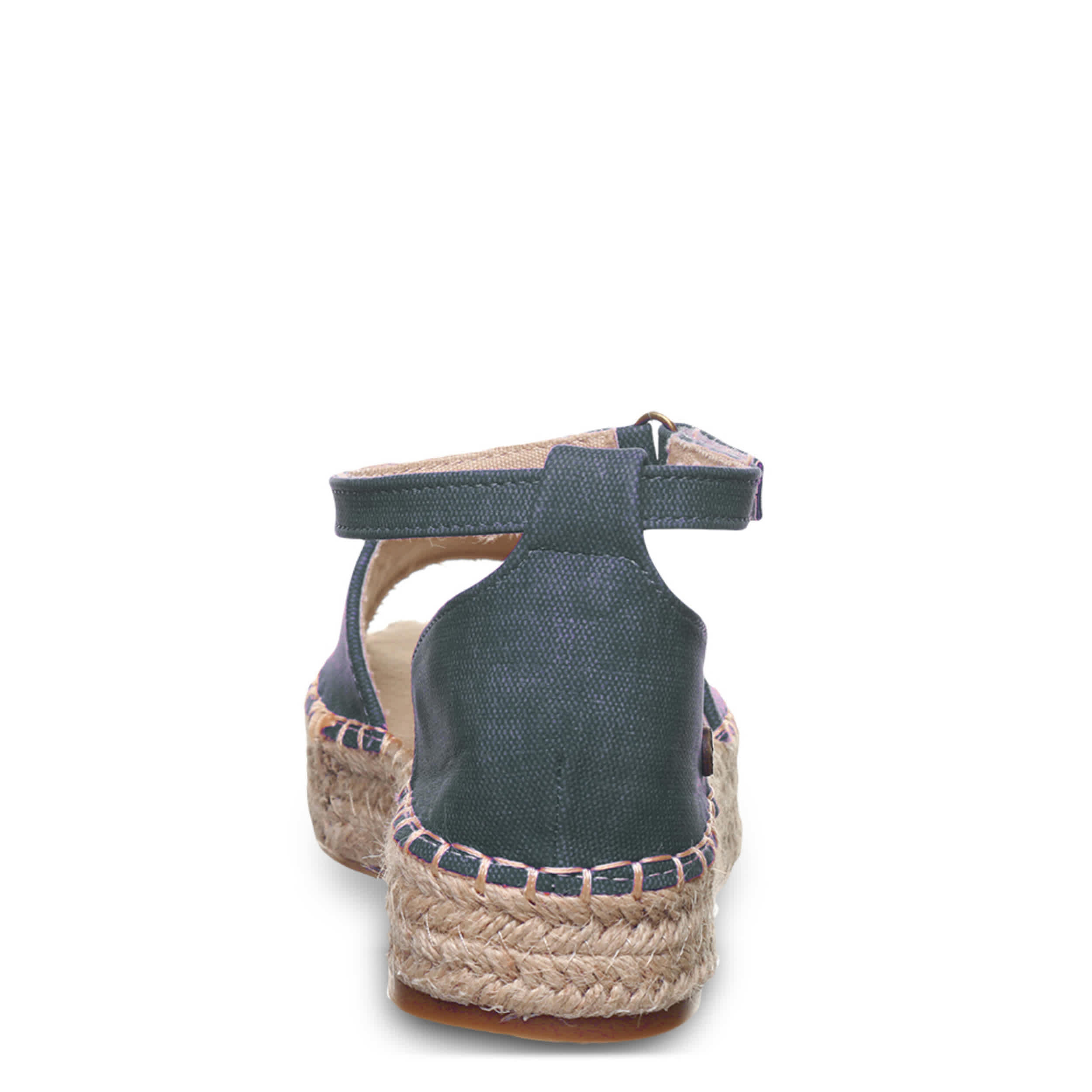 Effortless style is the luxury of the Bearpaw Affogato women's sandal. Featuring a faux leather upper featuring a light canvas lining, this shoe has a jute-wrapped EVA midsole for that espadrille look. The cushioned footbed comforts every step, while the molded outsole adds support and 1¼" of lift.