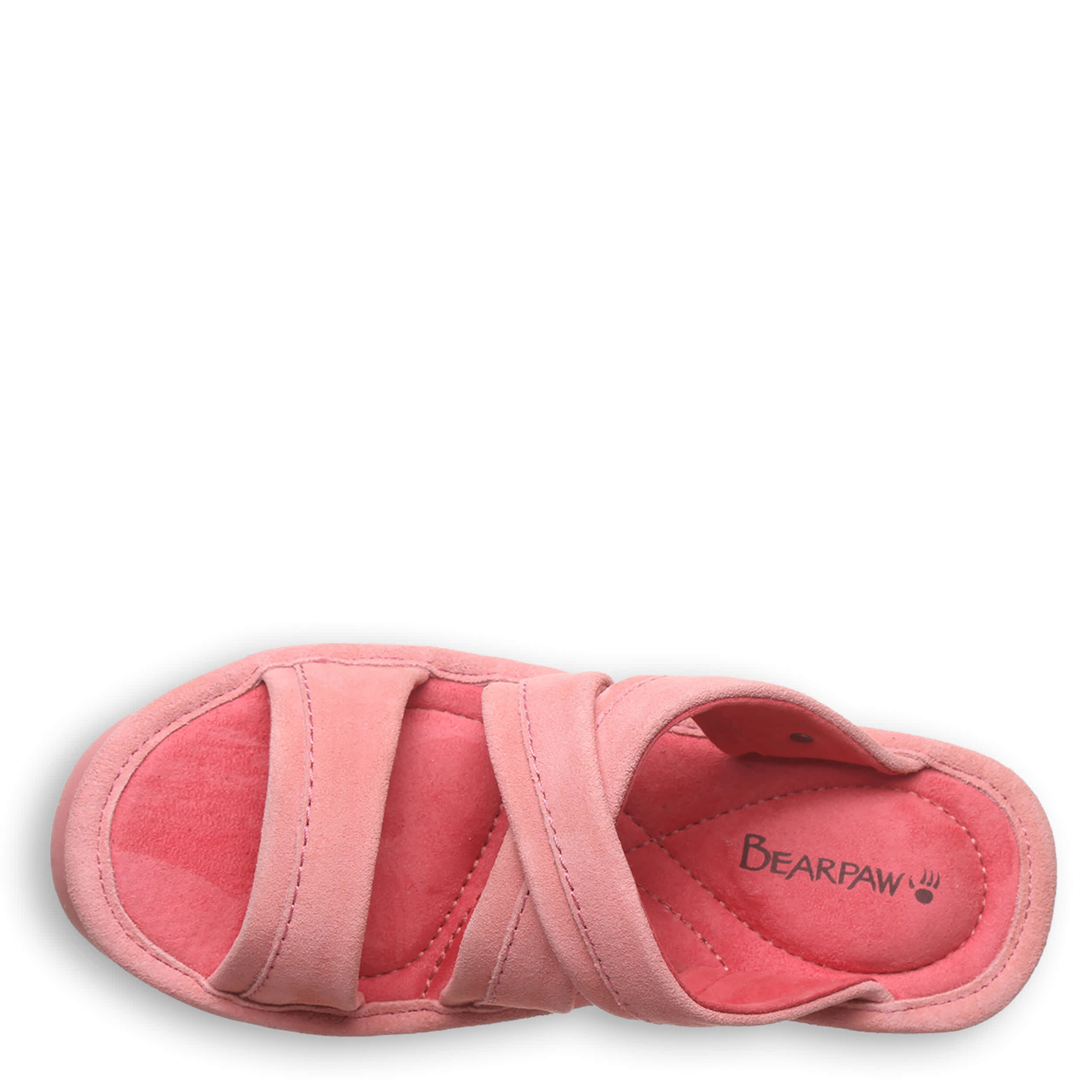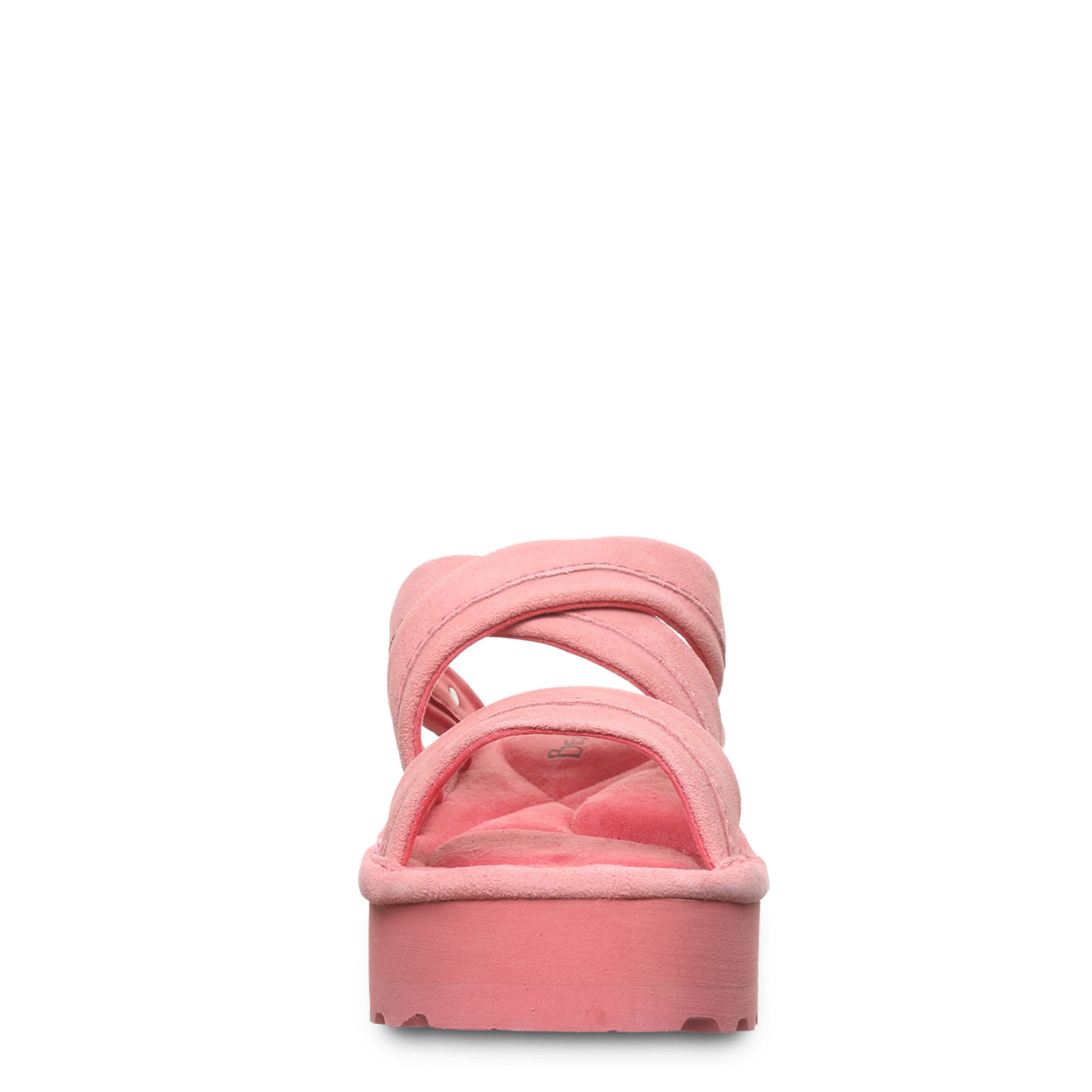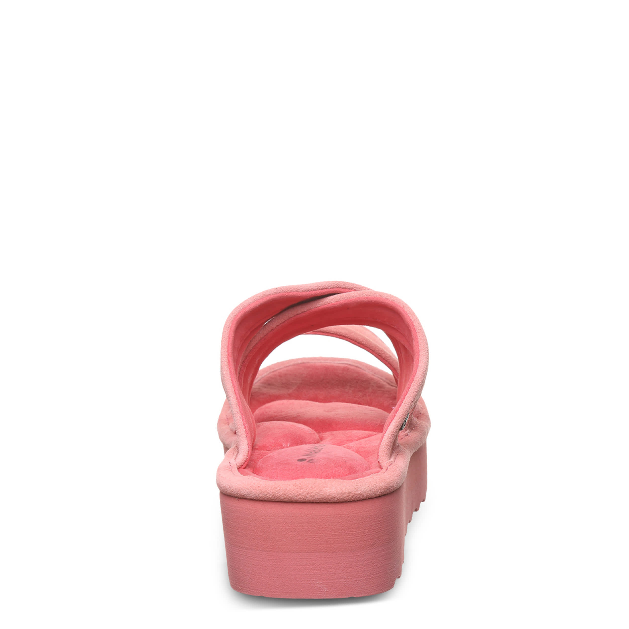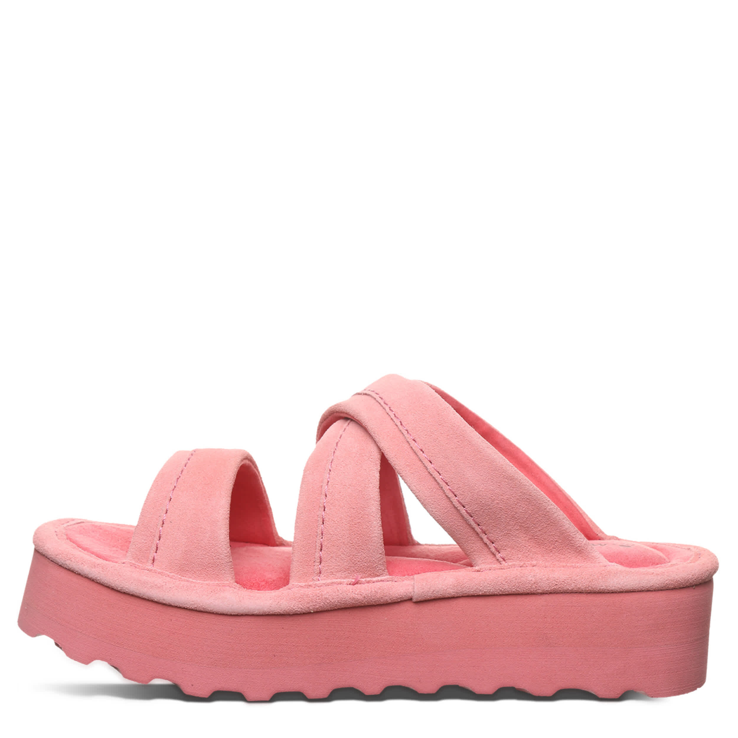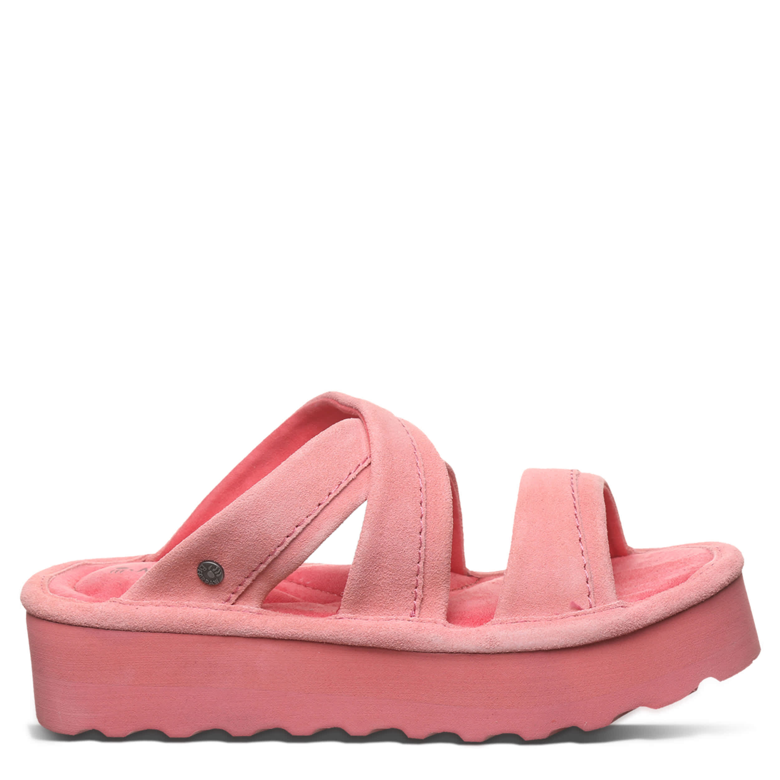 Take your style higher in the Altitude women's slide sandal from Bearpaw. Featuring a suede upper with a faux leather lining, this flatform slide gives you that great slip-in feel. The quilted footbed cushions while the midsole & outsole offer just enough lift.