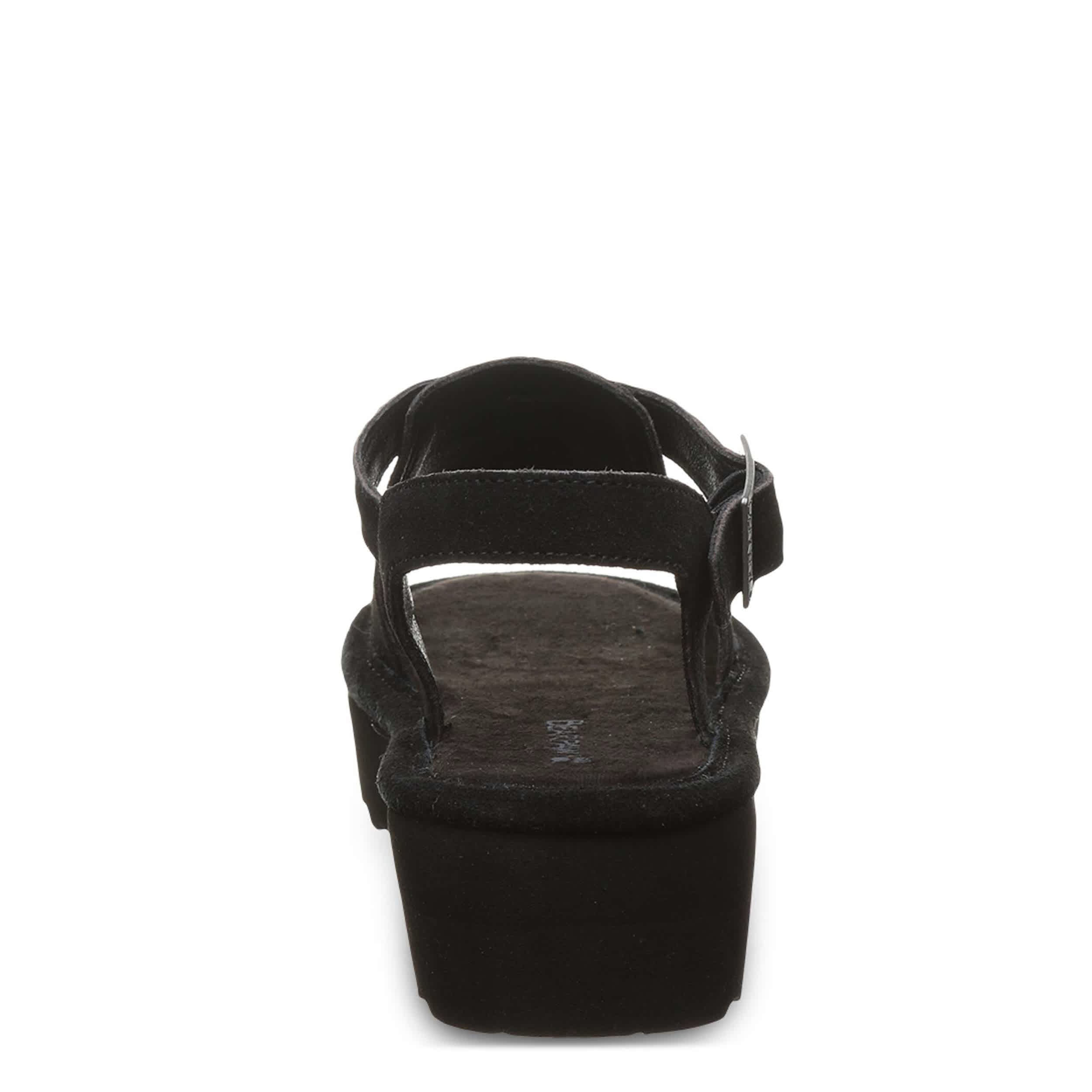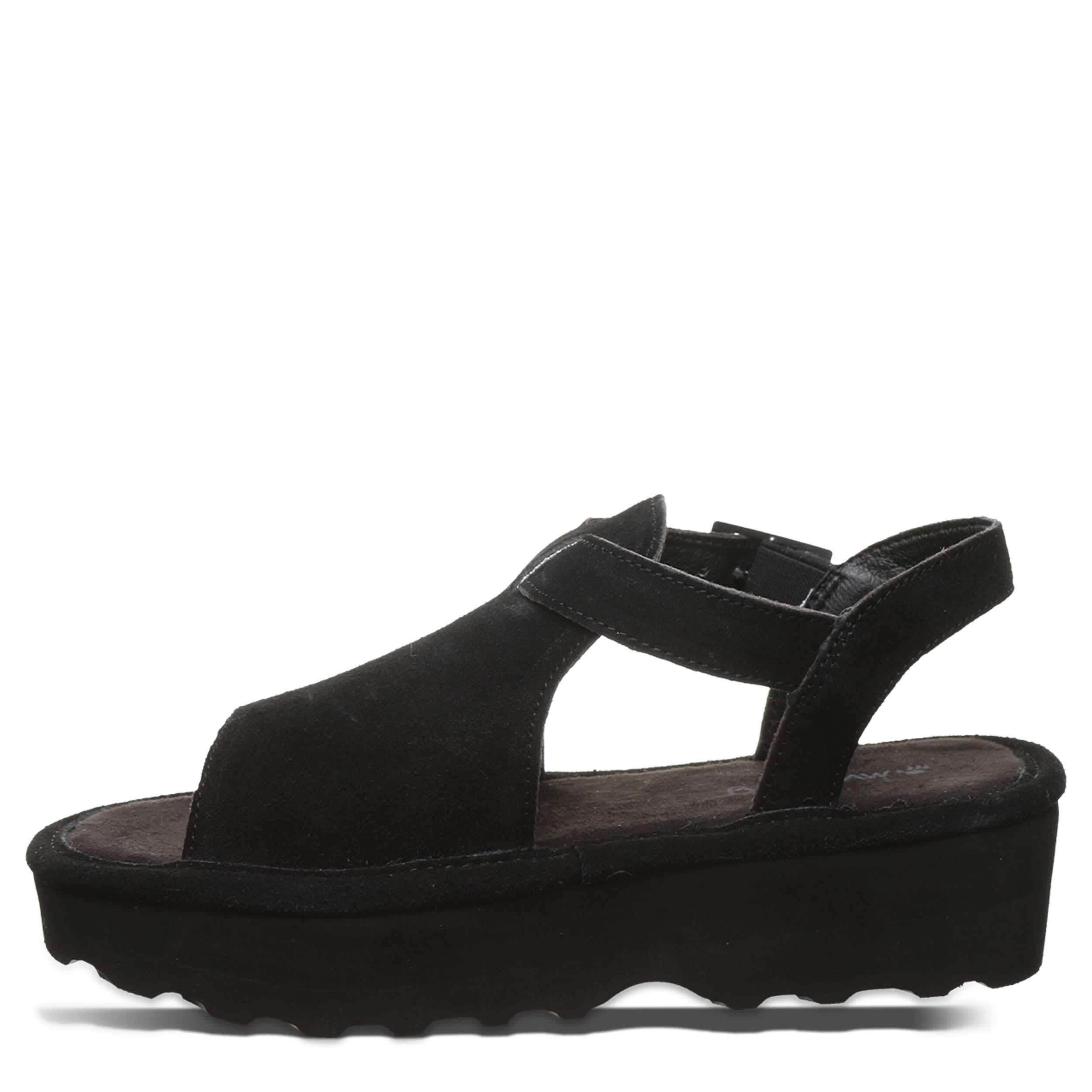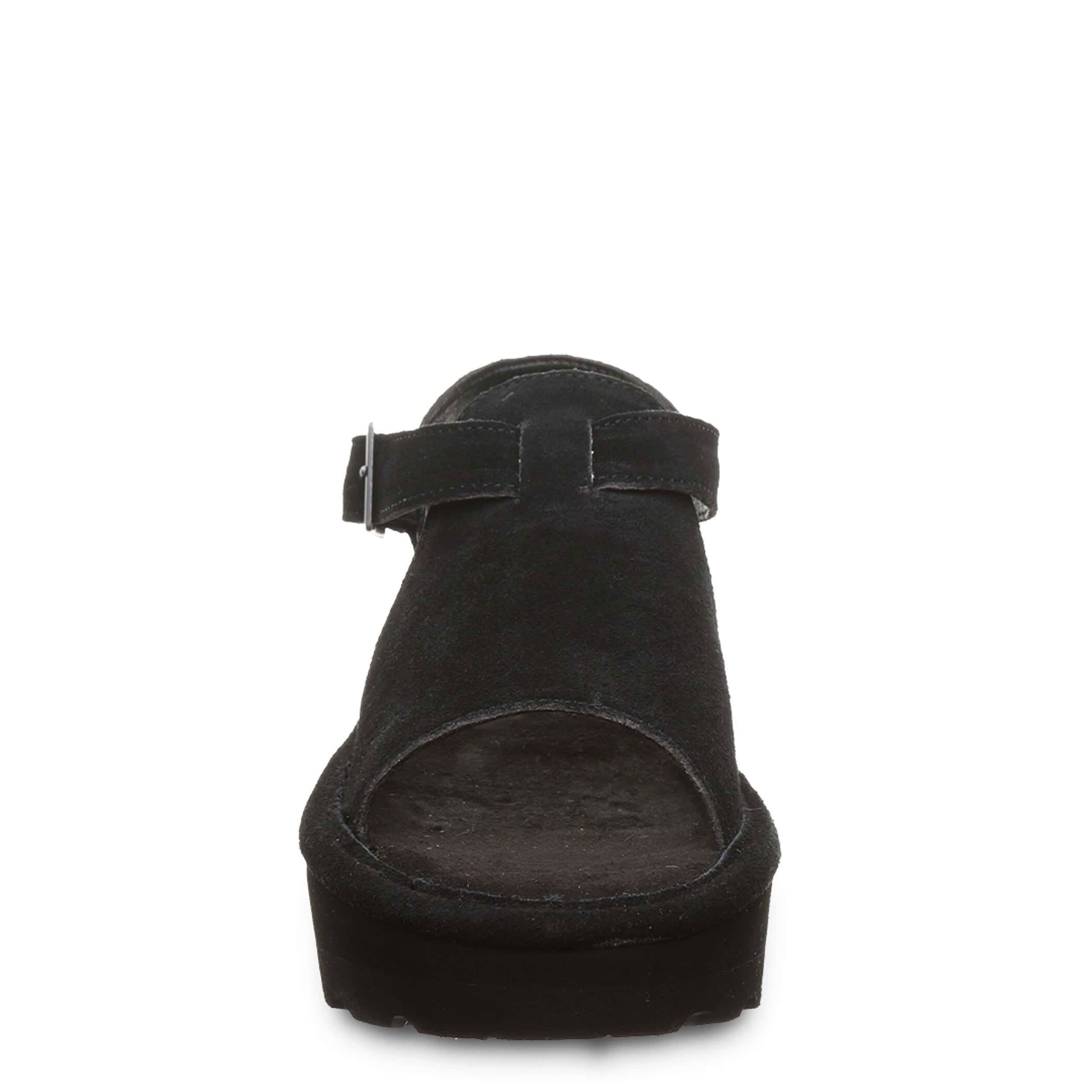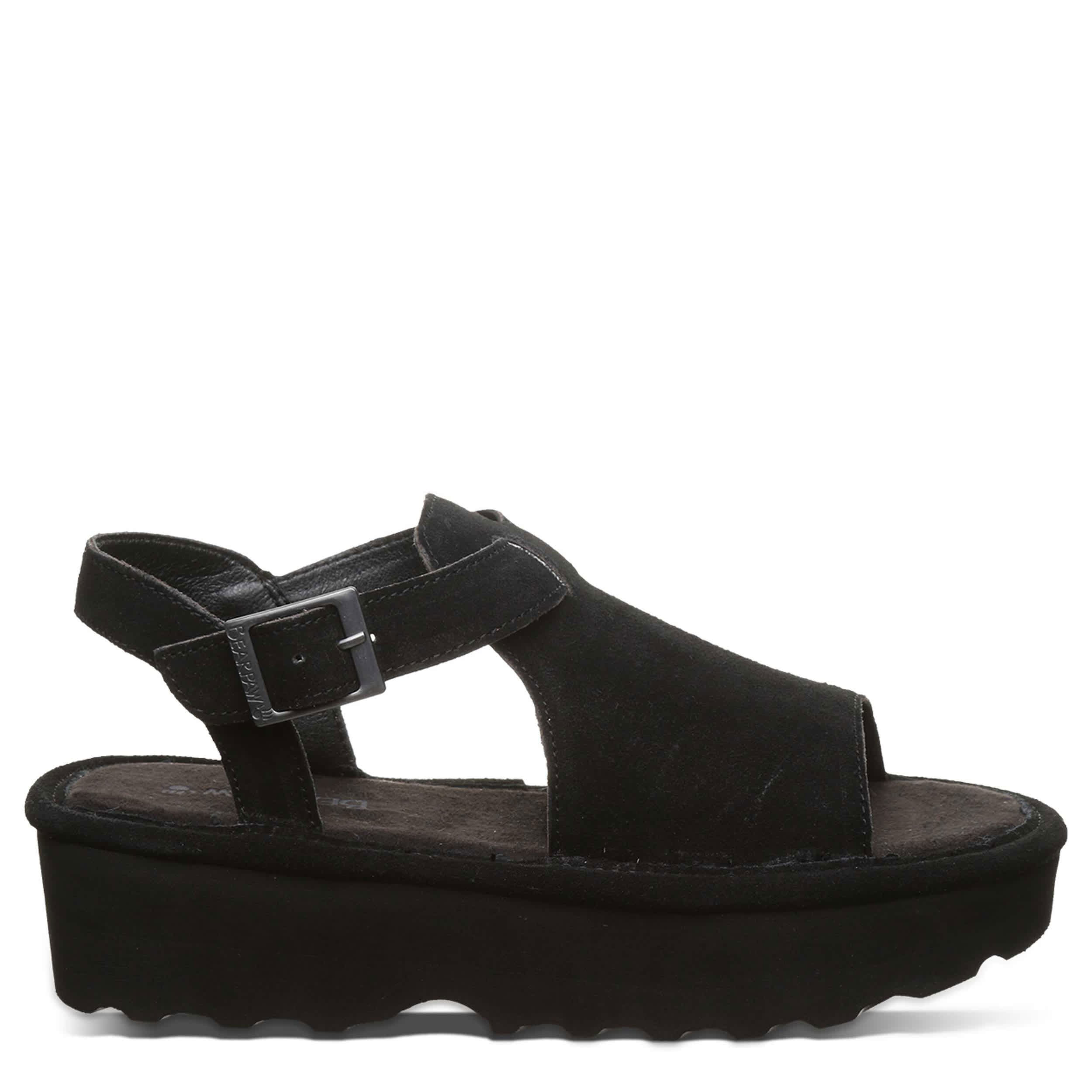Buckle in for summer fun in the Ascend women's sandal from Bearpaw. Featuring a suede upper with a microsuede insole, this flatform sandal gives you that great slip-in feel. The quilted footbed cushions while the midsole & outsole offer just enough lift.